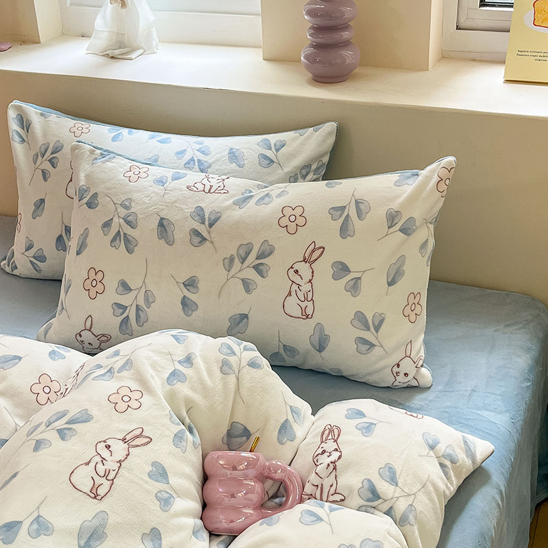 雅居纺家纺 2024新款高克重印花牛奶绒单枕套 乖乖兔