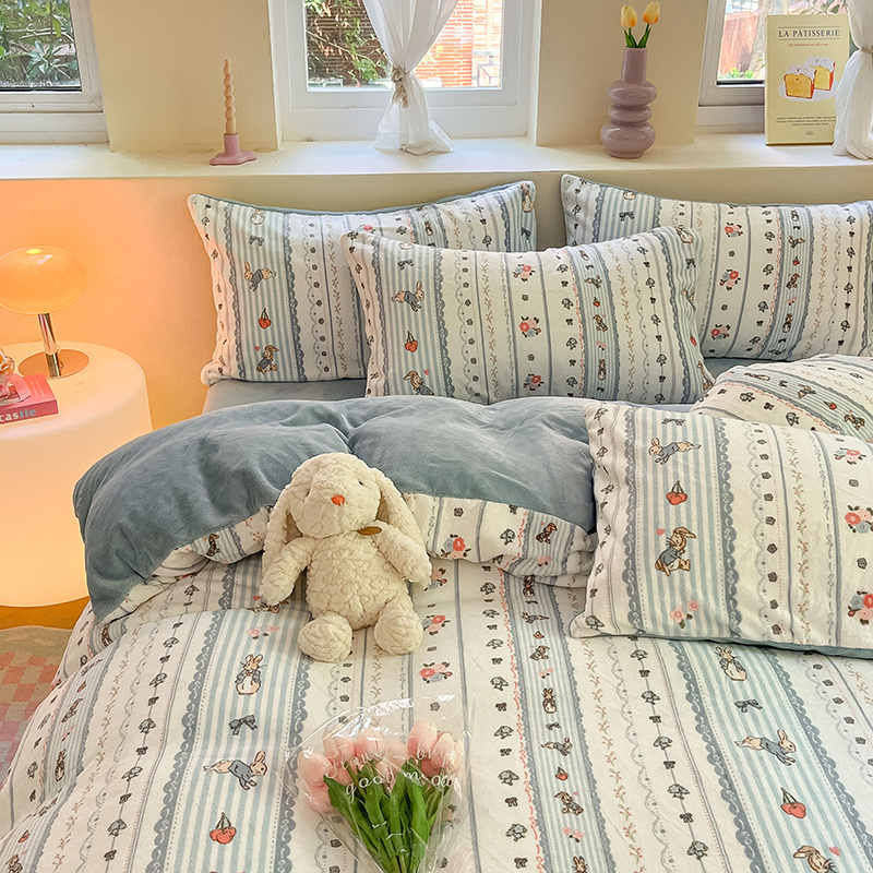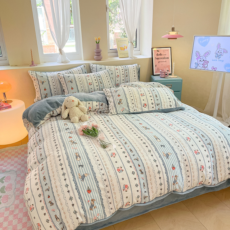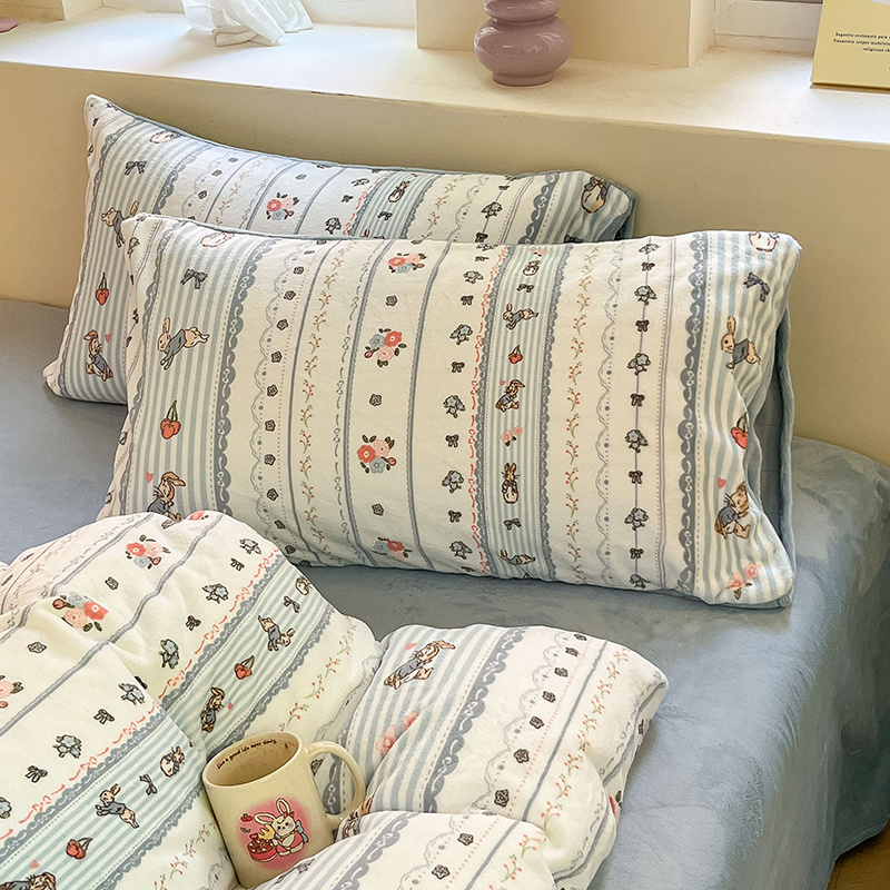 雅居纺家纺 2024新款高克重印花牛奶绒单被套 蓝色小兔