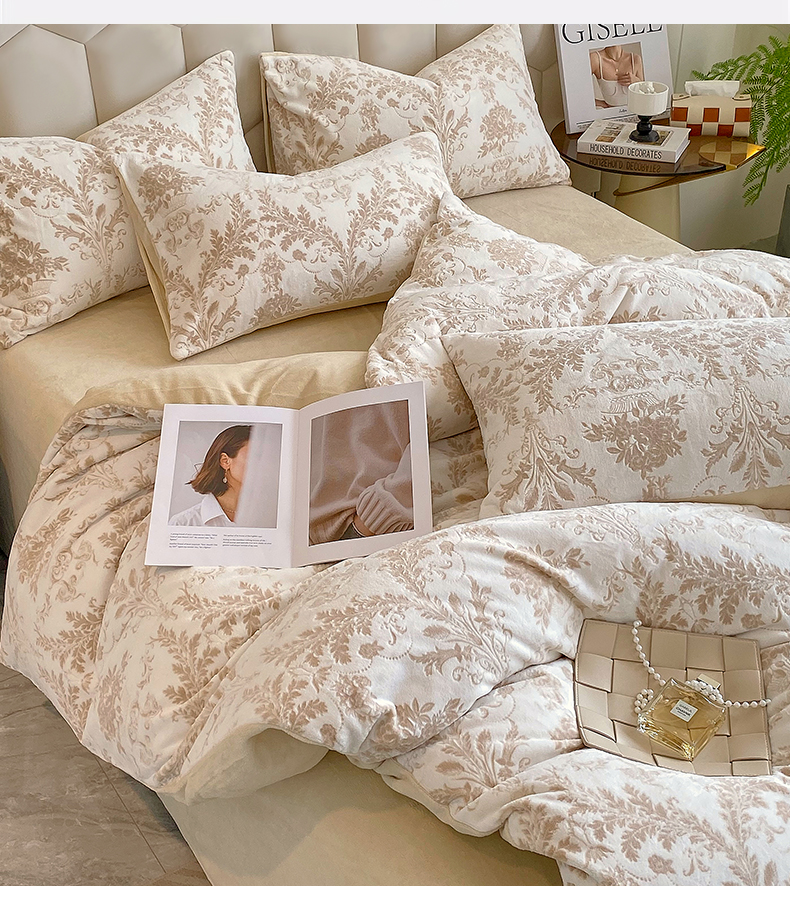 佰亿莱 2024新款雕花牛奶绒四件套 金色花卉