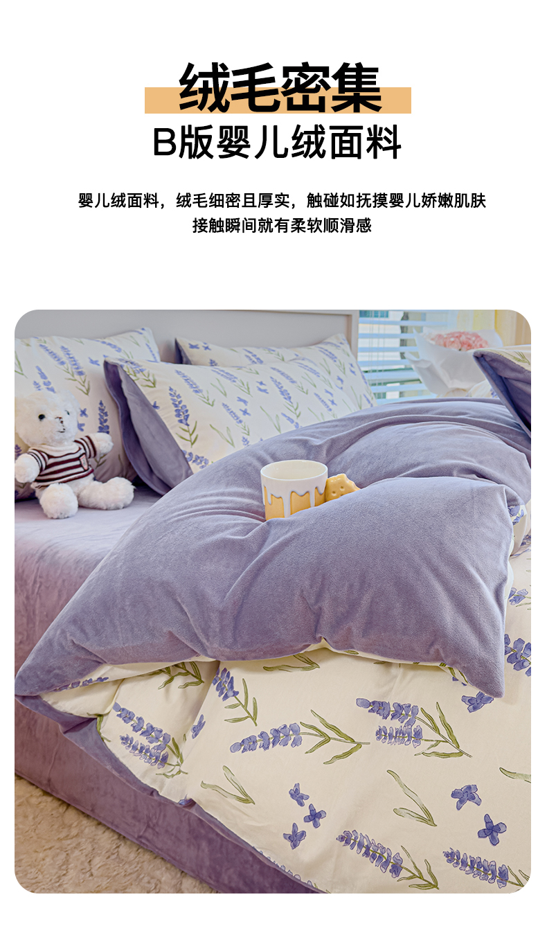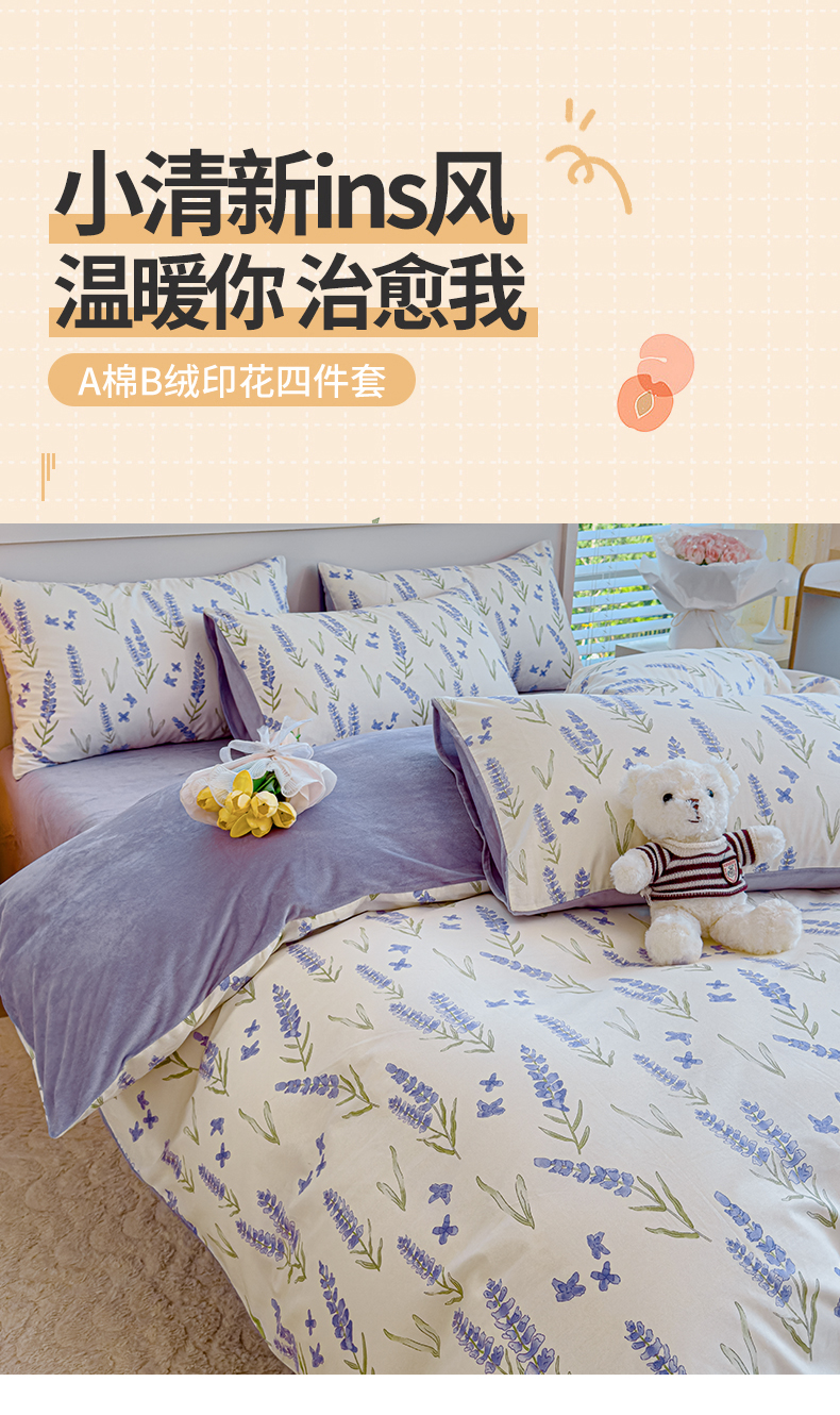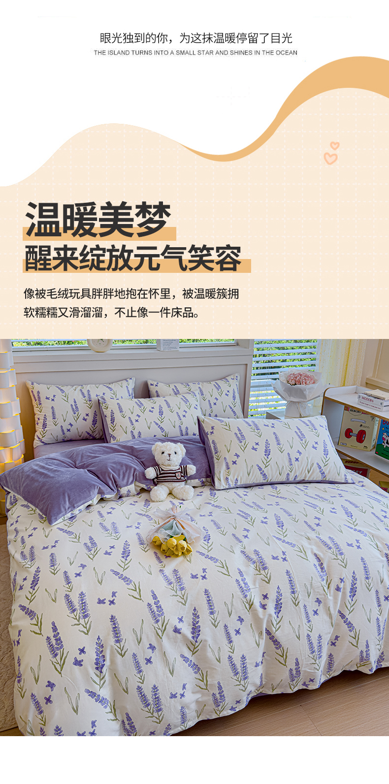 当前位置: 91家纺网 > 商品网购 > 床品套件 > 四件套 > 其它四件套 > 清雅福 2024新款小清新ins棉加绒印花四件套系列-棉绒风格一 棉绒紫瑶