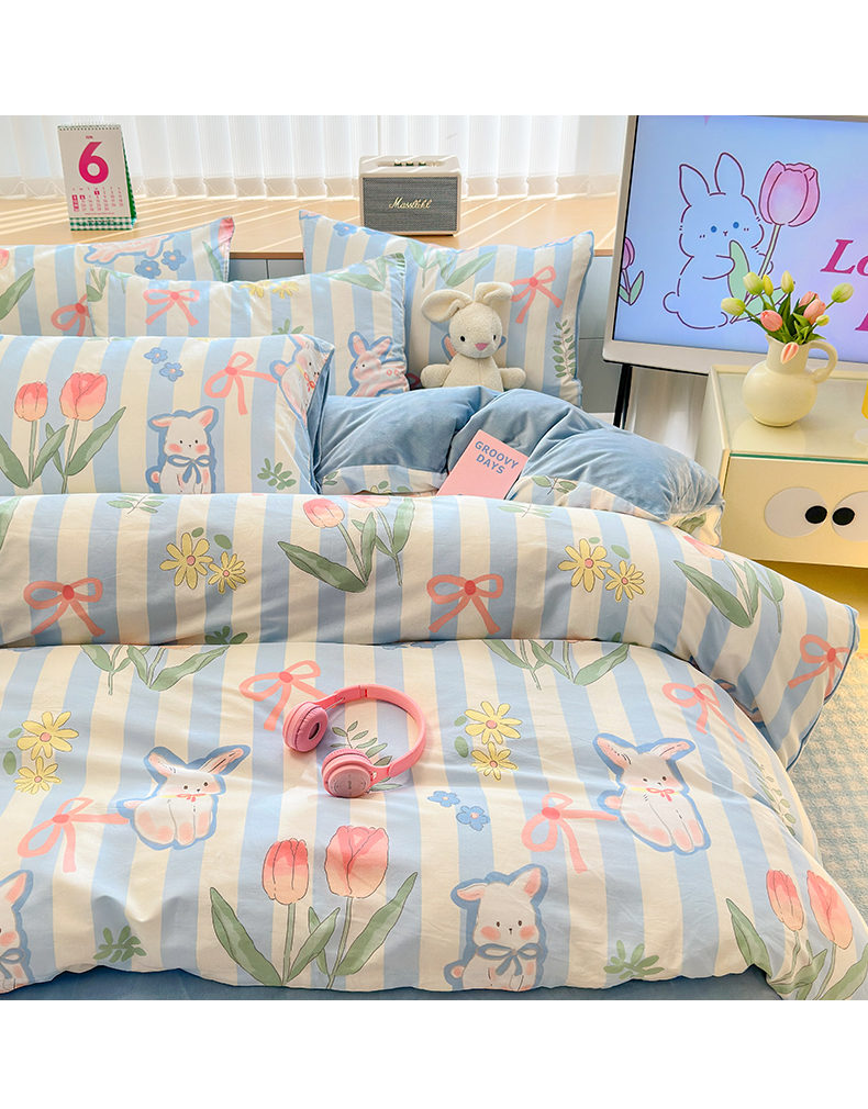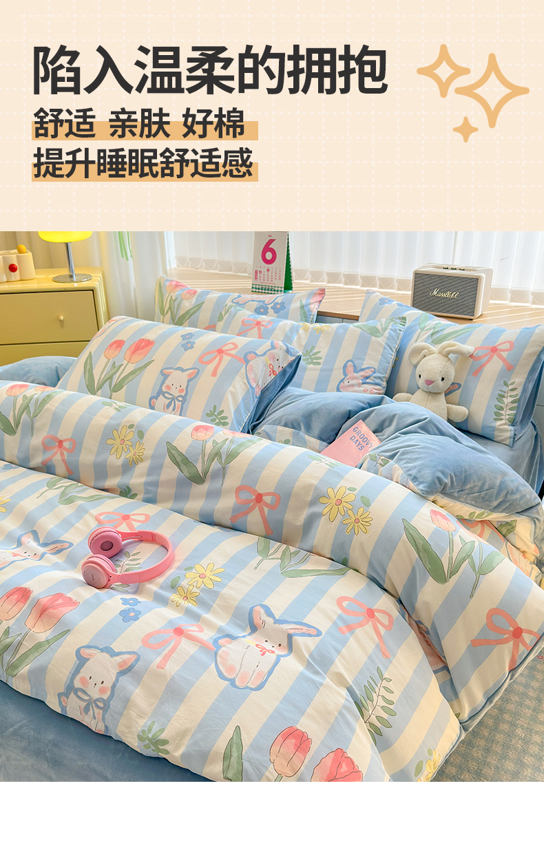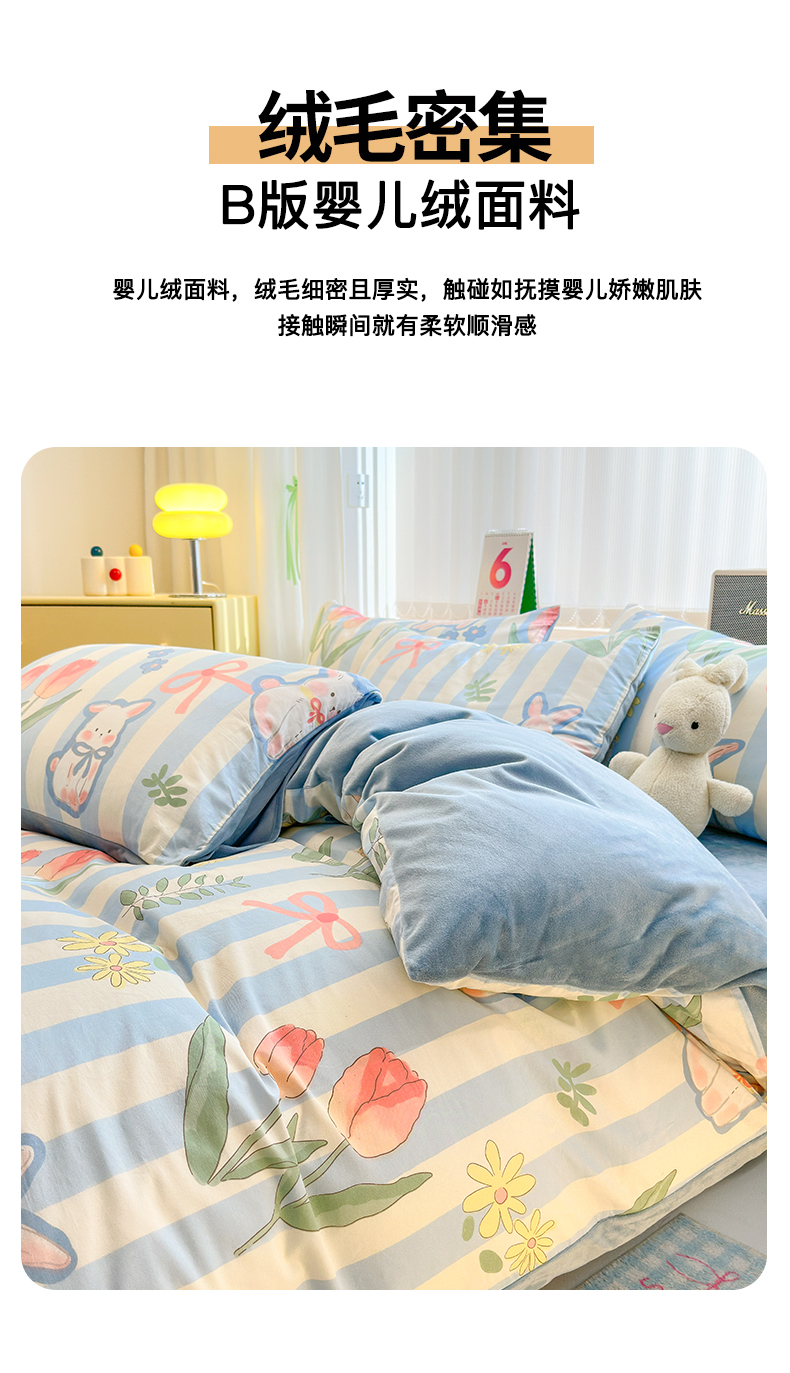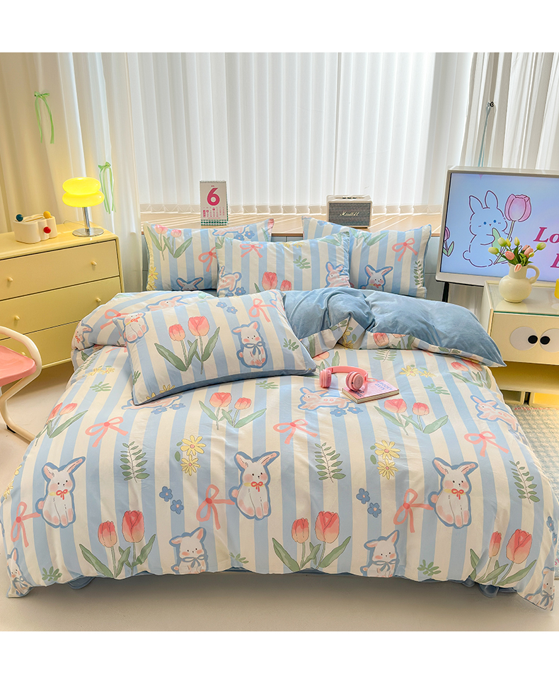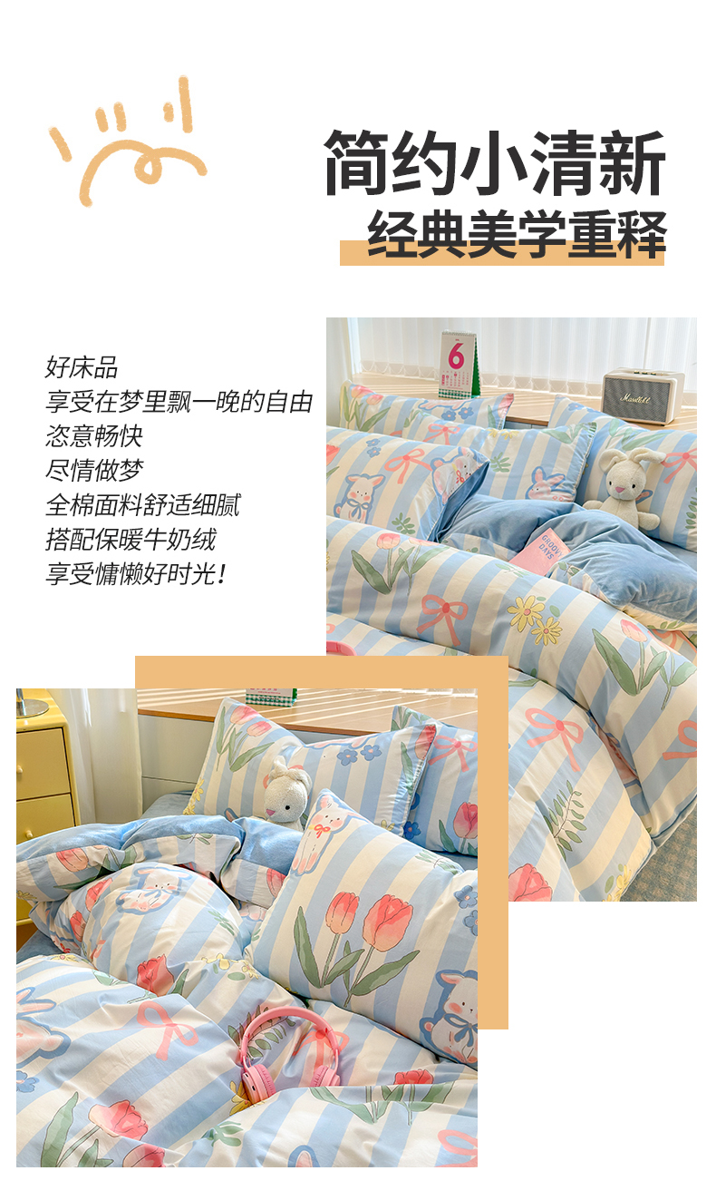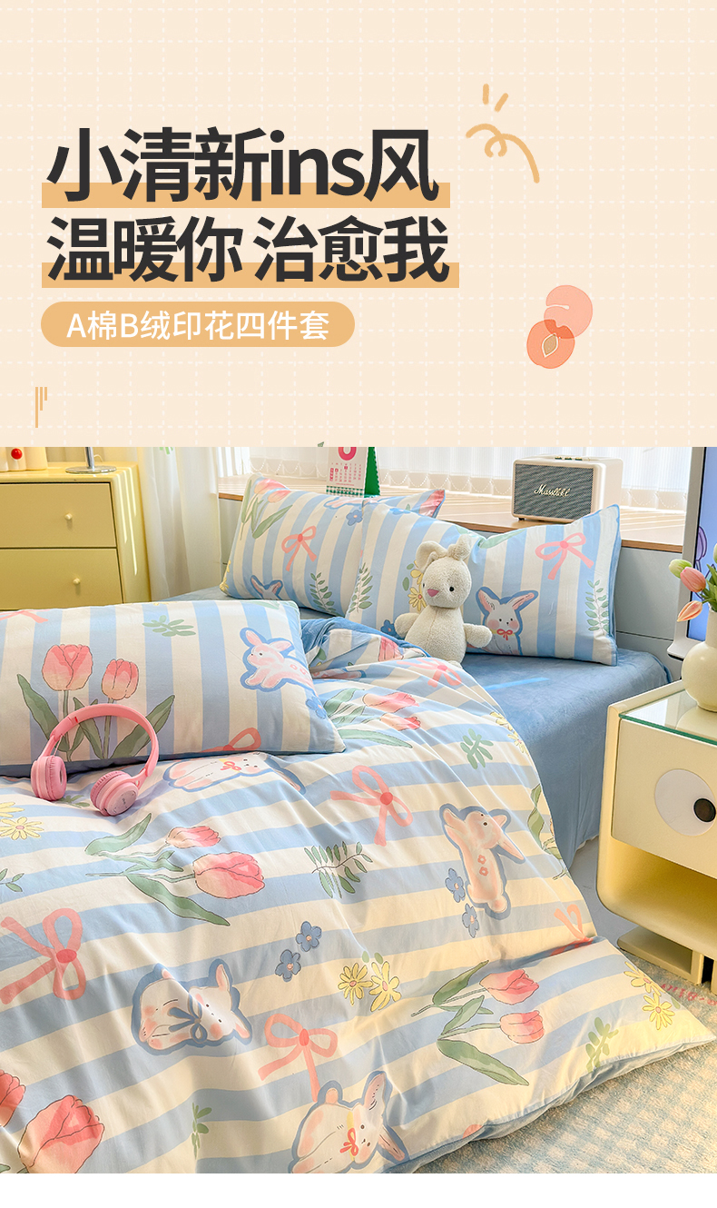 当前位置: 91家纺网 > 商品网购 > 床品套件 > 四件套 > 其它四件套 > 清雅福 2024新款小清新ins棉加绒印花四件套系列-棉绒风格二 大白兔