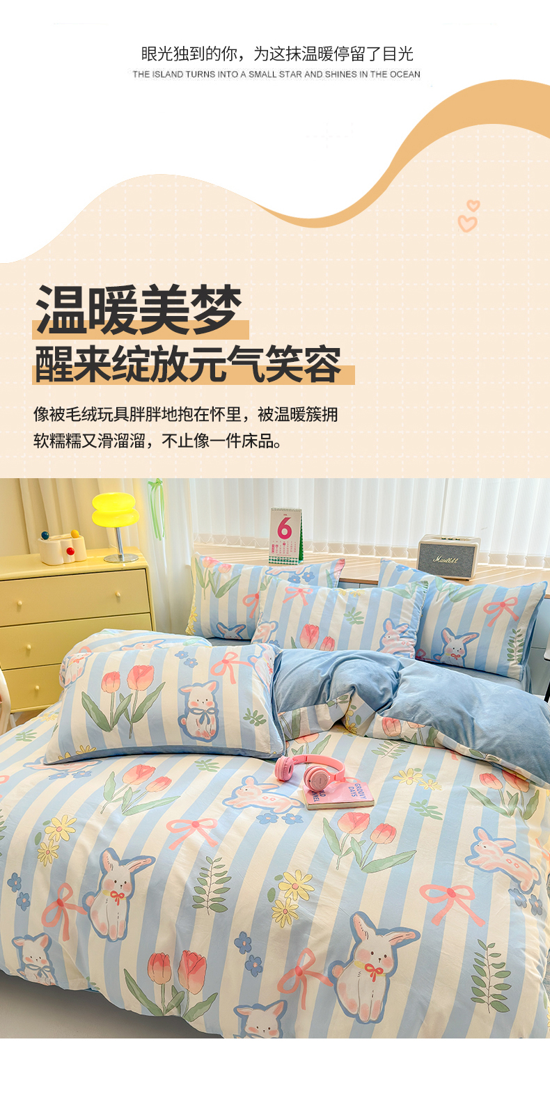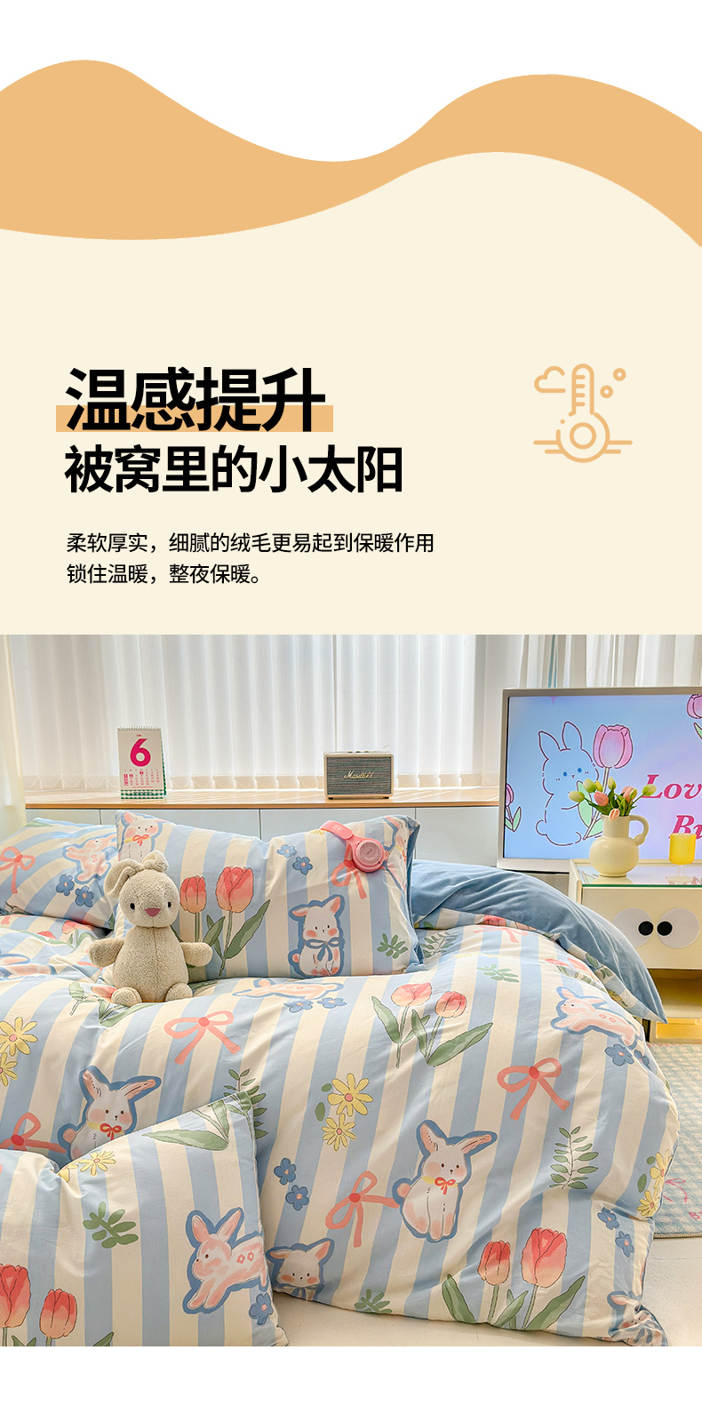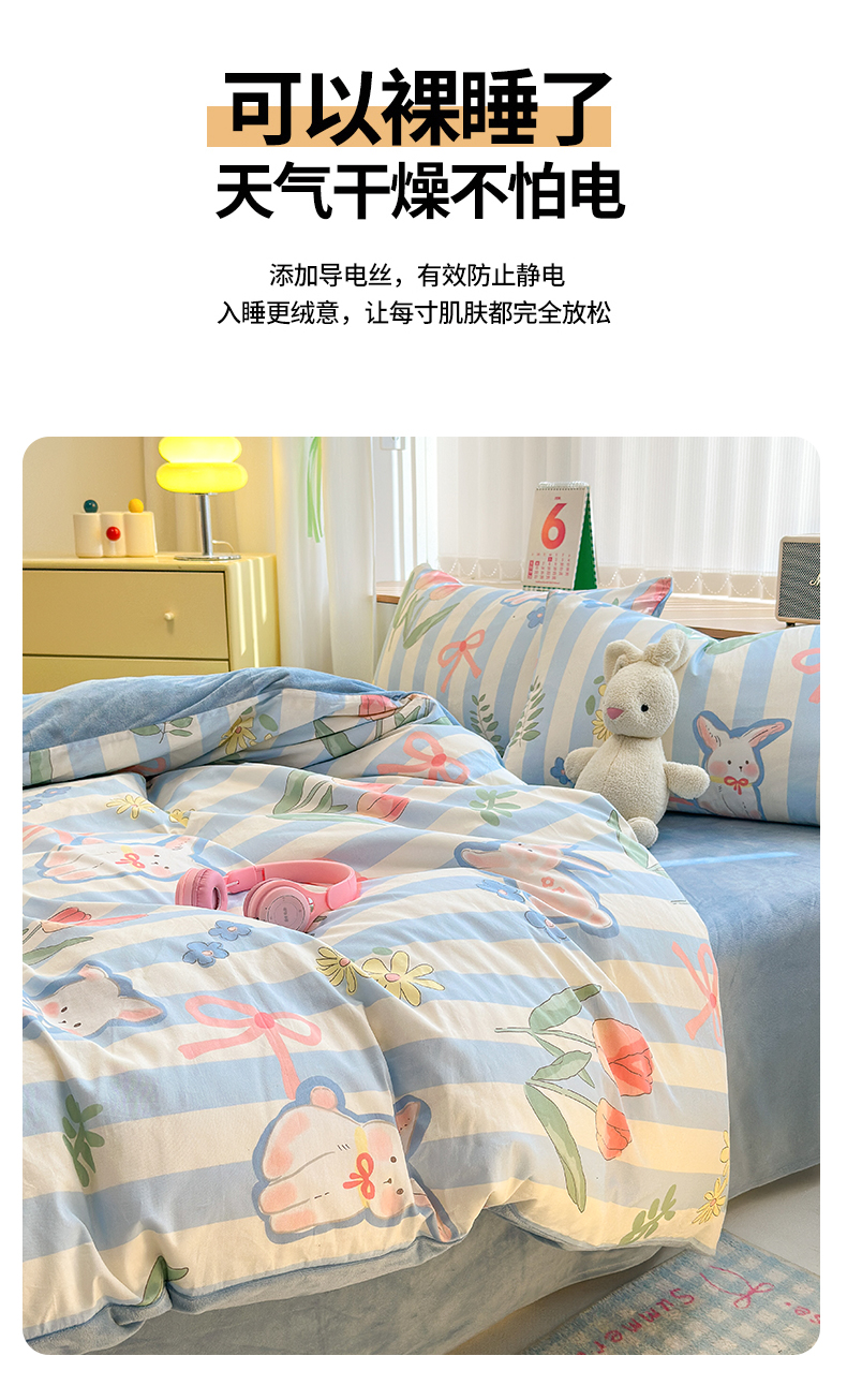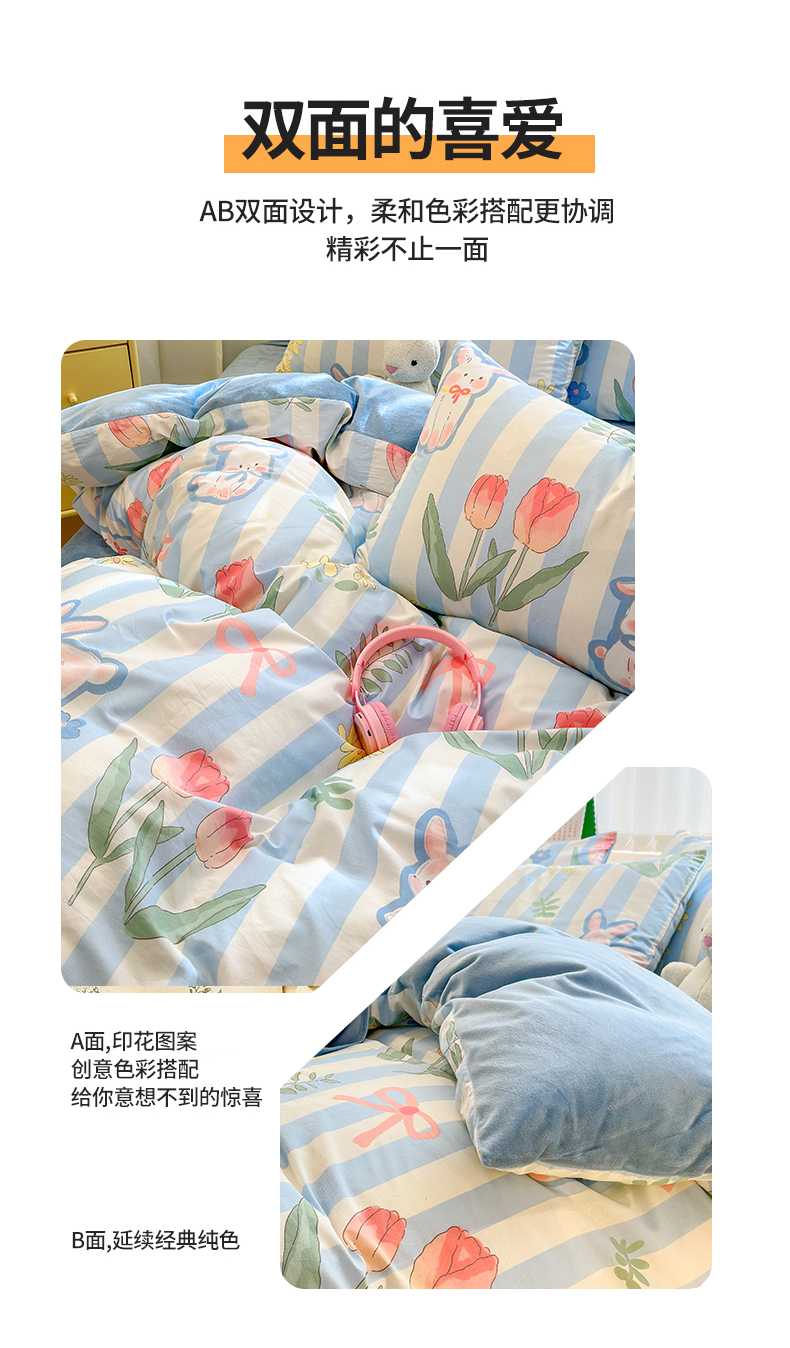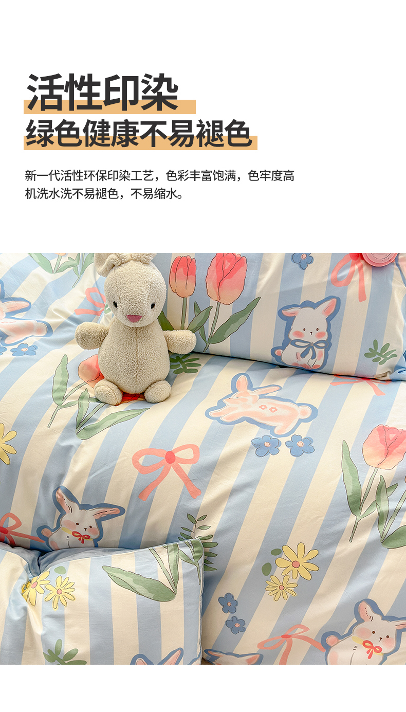当前位置: 91家纺网 > 商品网购 > 床品套件 > 四件套 > 其它四件套 > 清雅福 2024新款小清新ins棉加绒印花四件套系列-棉绒风格二 大白兔