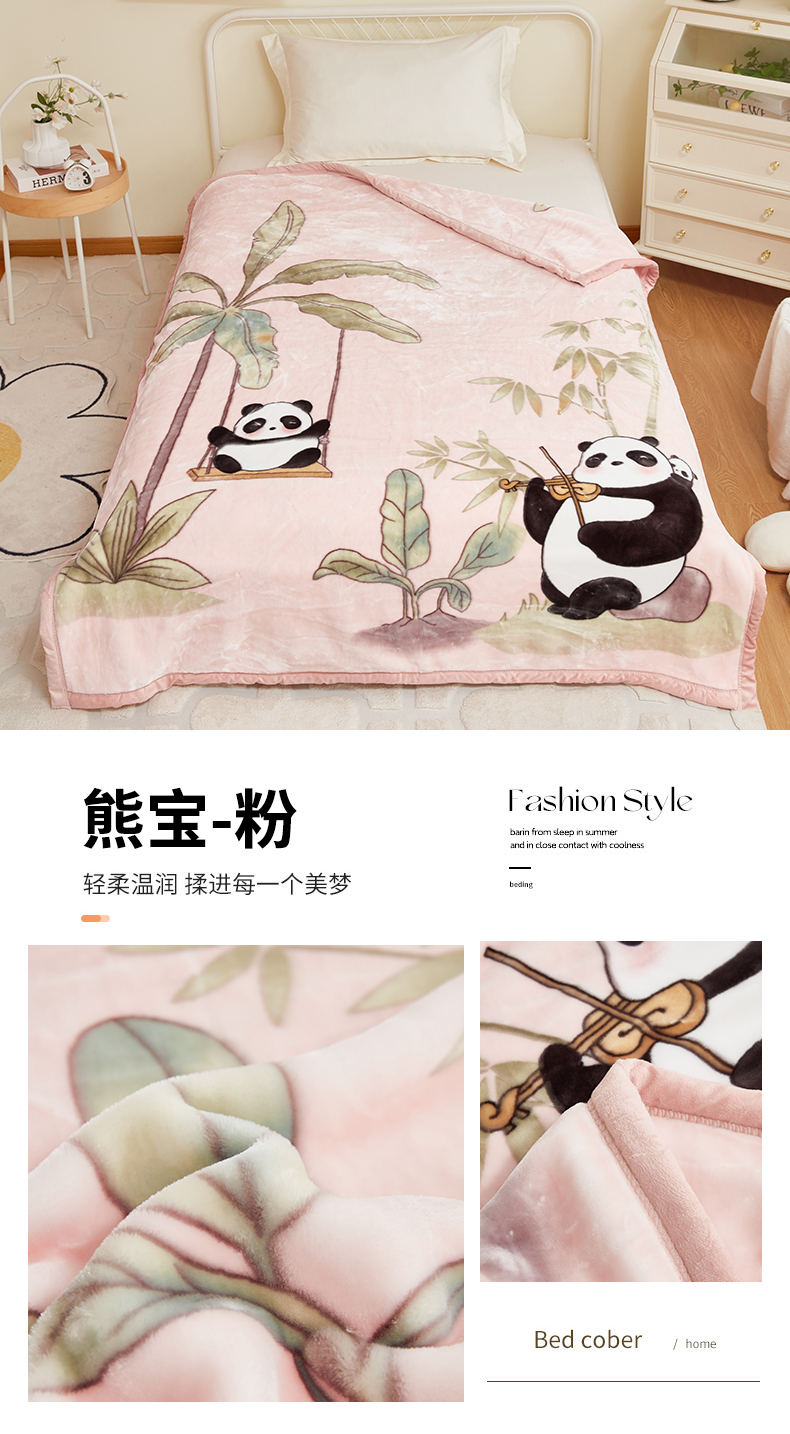(总)凯轩毛毯网销专供 2025新款仿羊绒贴布绣毛毯毯子,欢乐熊猫-粉,欢乐熊猫-灰,欢乐熊猫-咖,欢乐熊猫-蓝,欢乐熊猫-绿,欢乐熊猫-米白