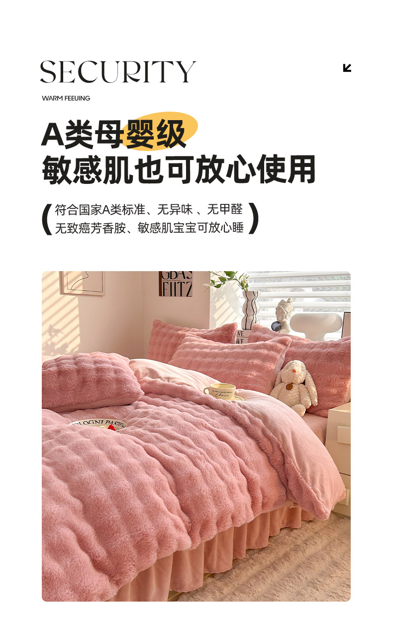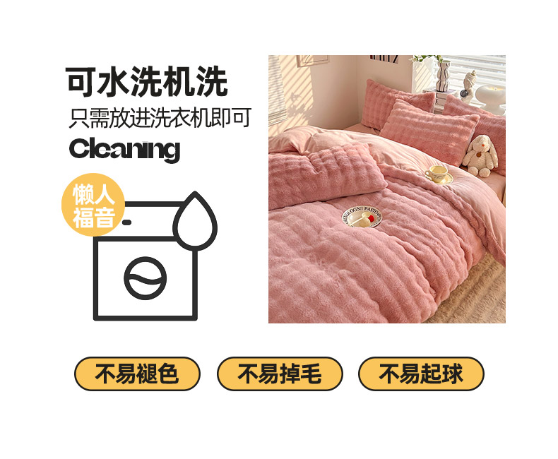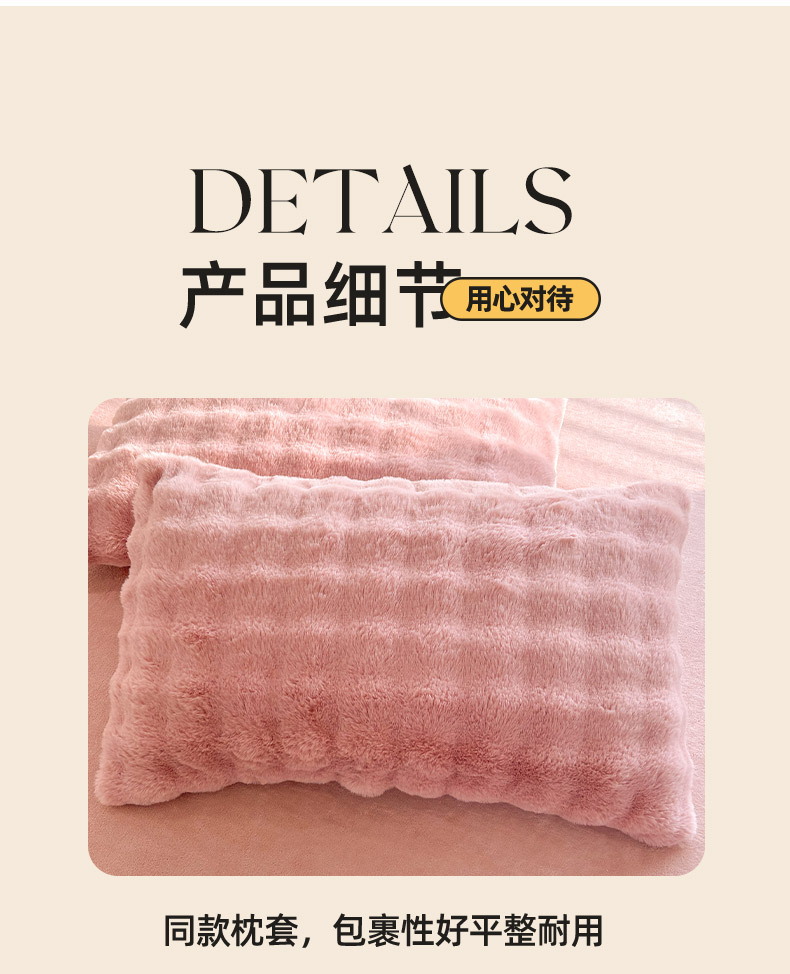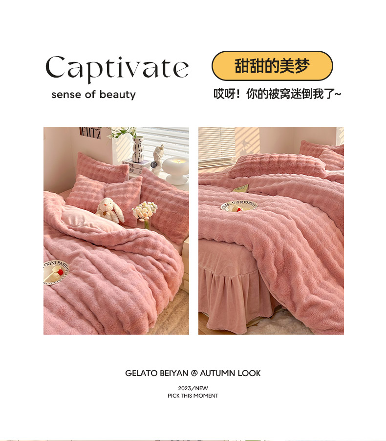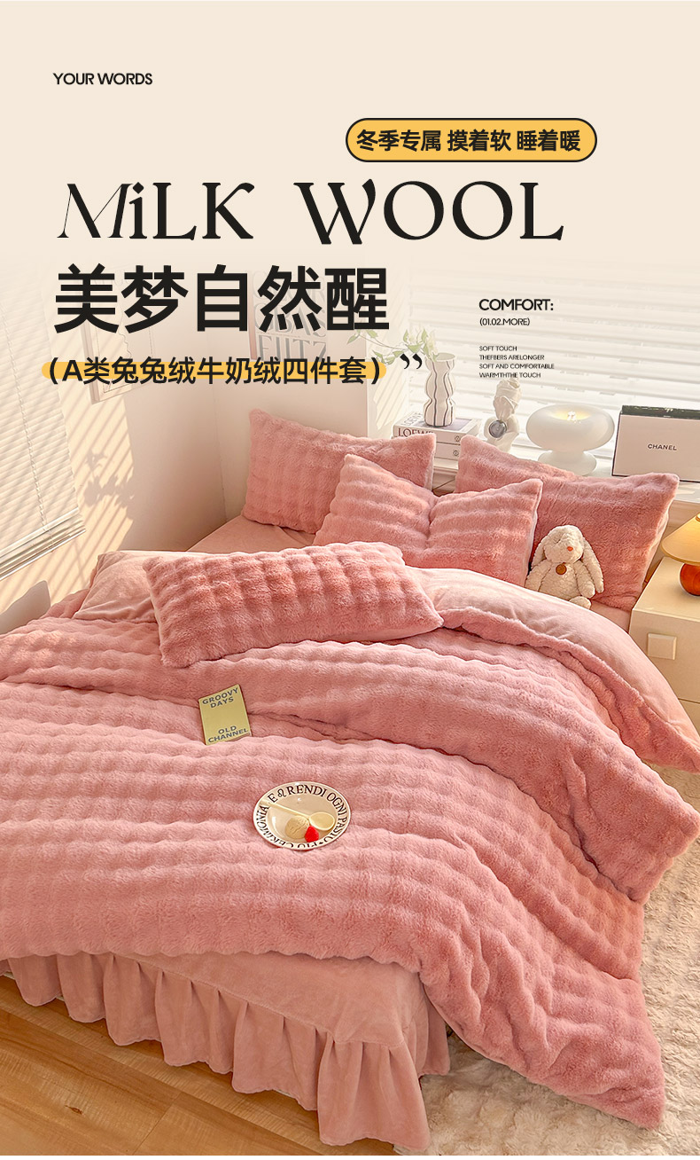 商品名称:欧冠家纺 2024秋冬新款纯色泡泡绒和七彩泡泡床裙款四件套 泡泡-甜心粉