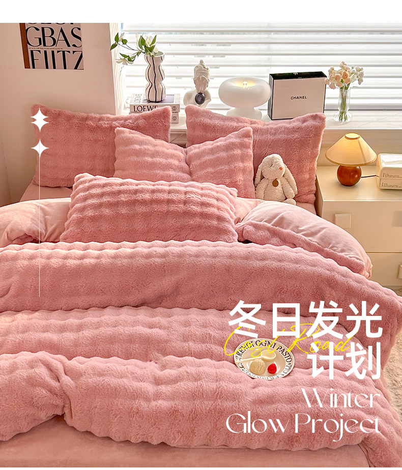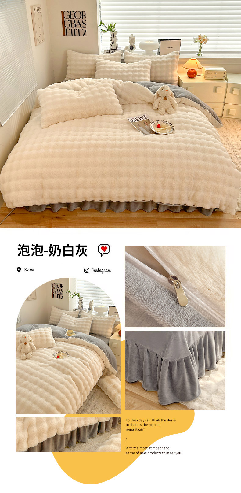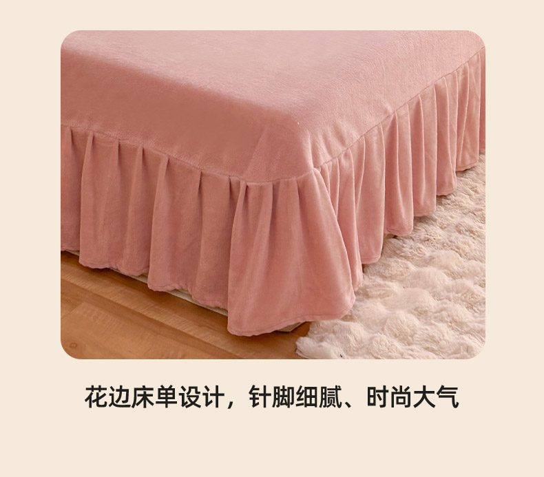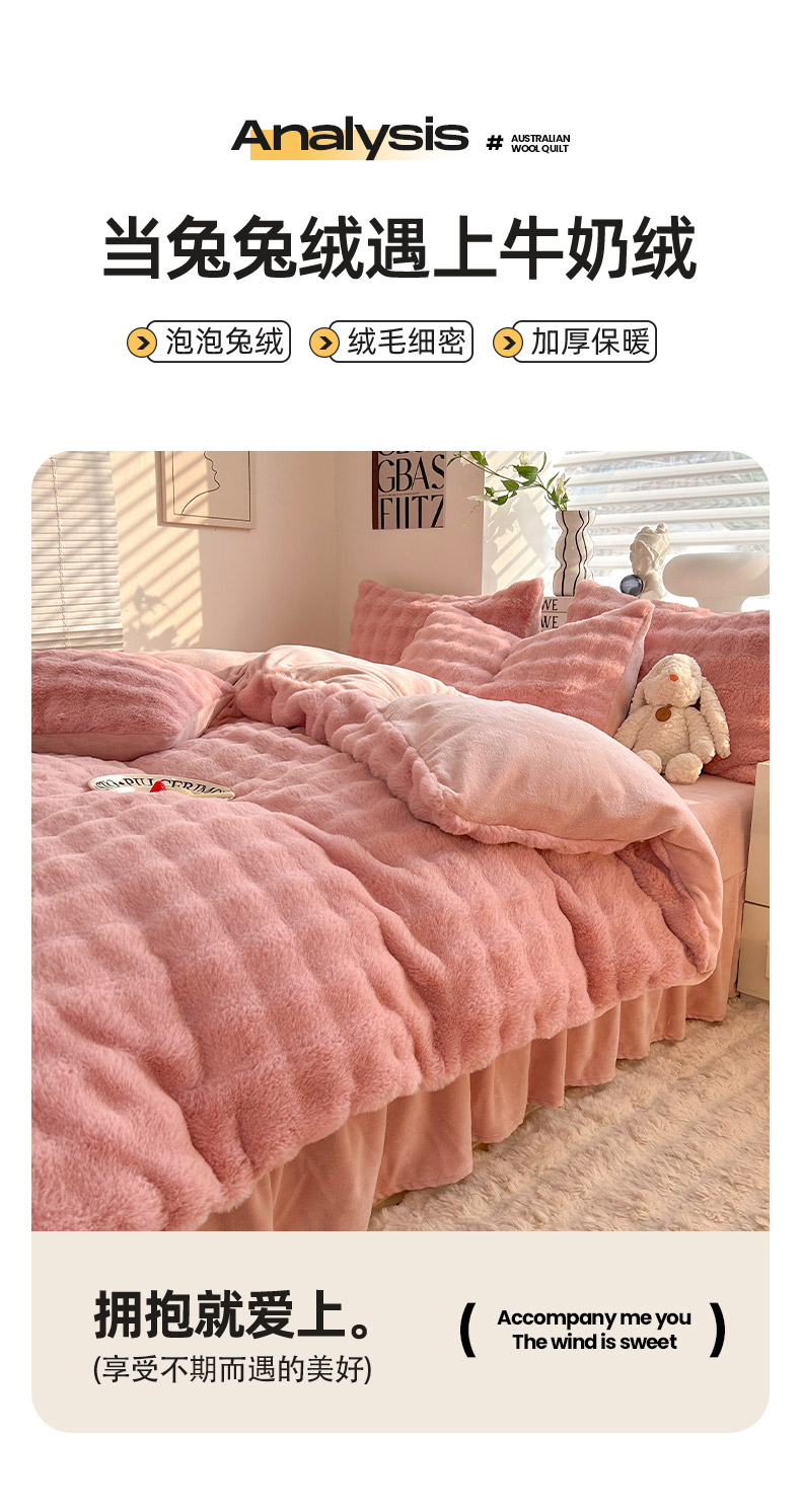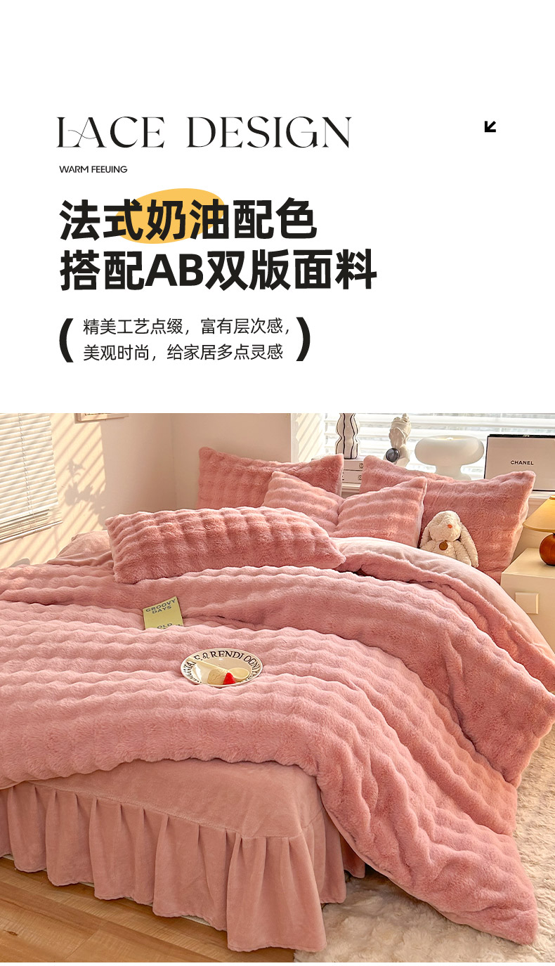 欧冠家纺 2024秋冬新款纯色泡泡绒和七彩泡泡床裙款四件套 泡泡-甜心粉
