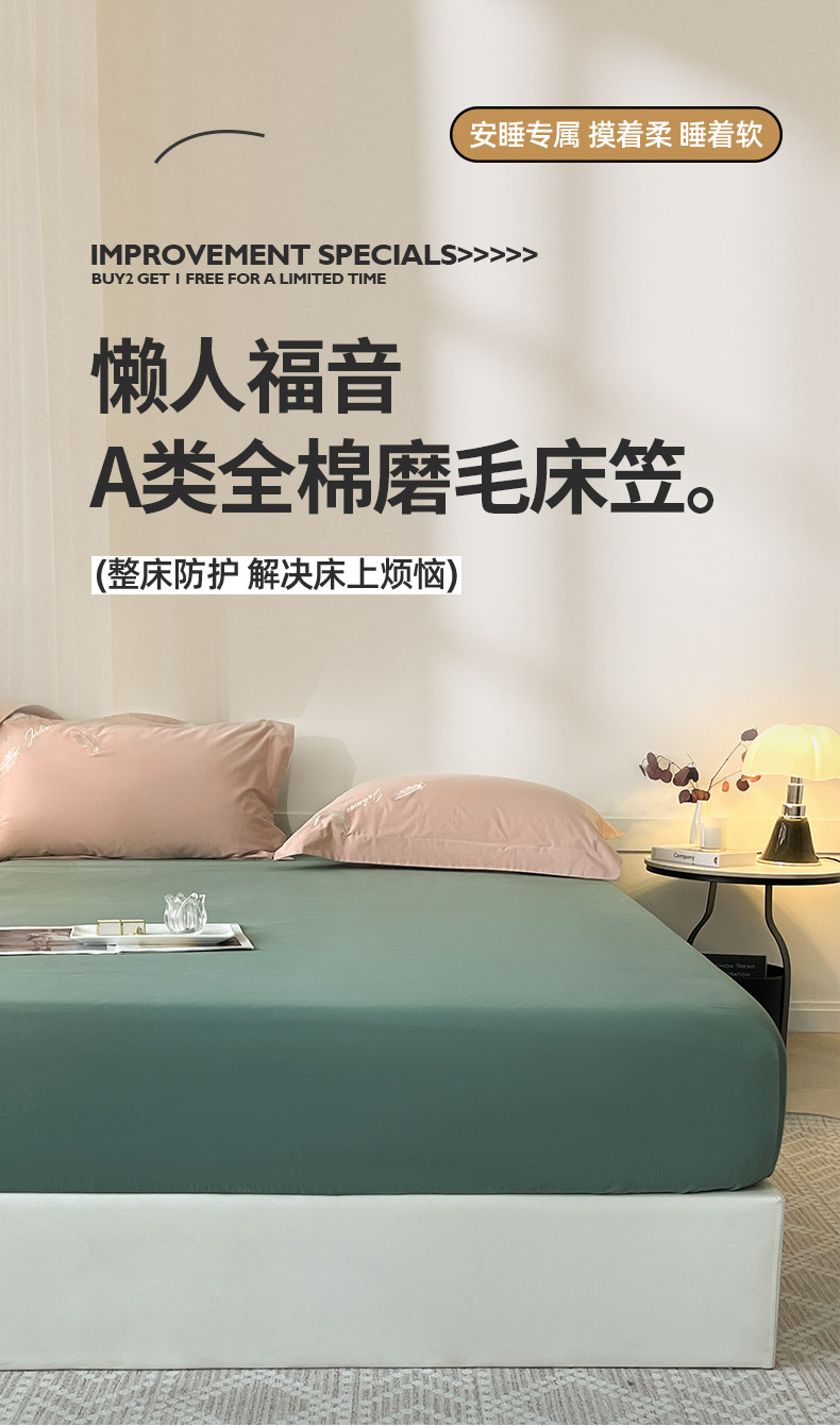 • 91家纺网 家纺一手货源 找家纺  2024新款【A类母婴级】加厚全棉磨毛四件套纯棉保暖床笠纯色床垫保护罩冬季单件床上用品 松石绿【A类加厚全棉品质】