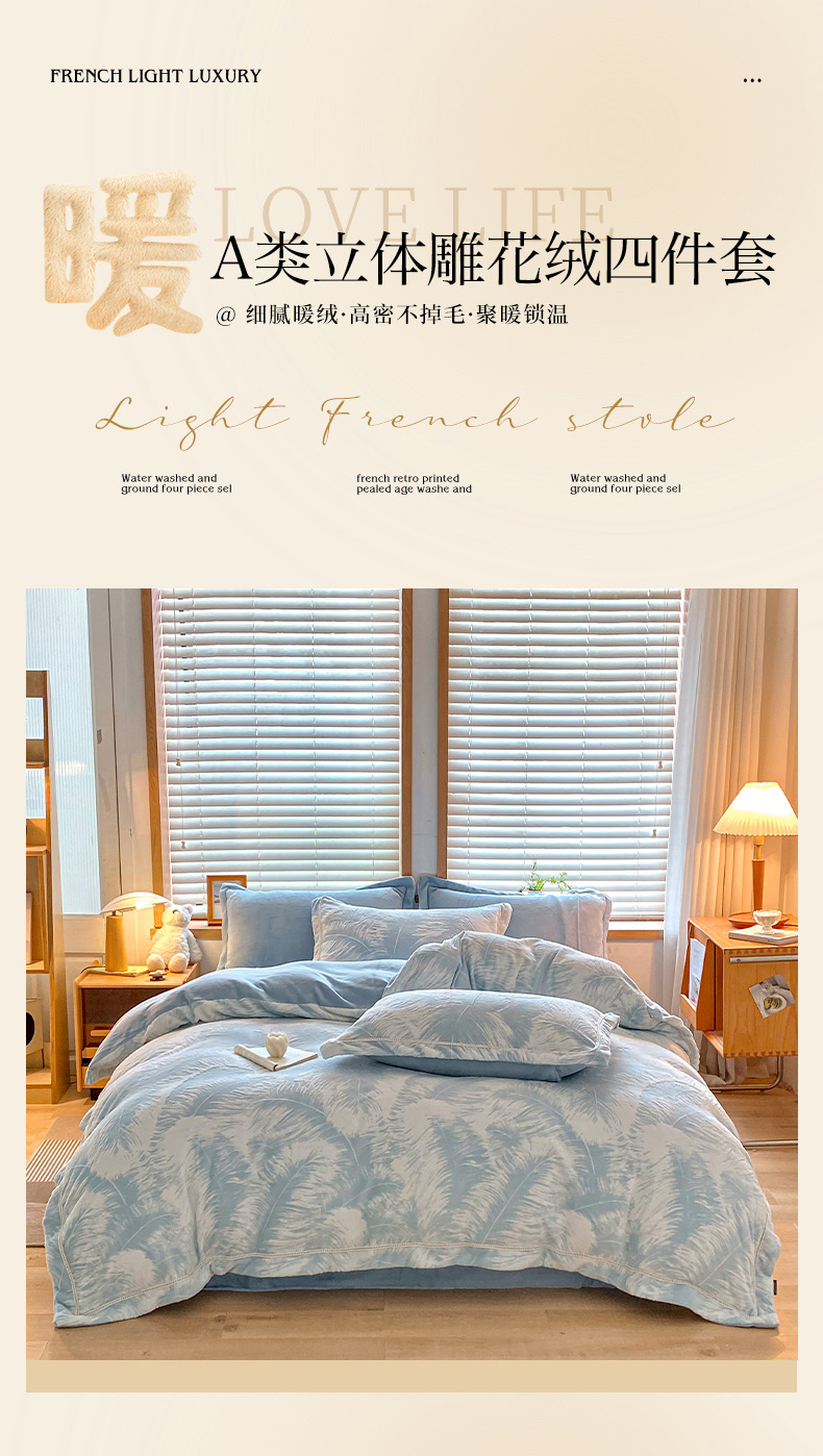 (总)简如 2025新款A类加厚冰岛立体雕花牛奶绒浮雕绒四件套(有买家秀),初遇-咖,春风里-粉,春风里-蓝,丛草集-卡其,丛草集-绿,告白-彩,告白-咖,花蔓-草绿,花蔓-海蓝色,花想容-粉,花颜-松柏绿,花悦-灰,洛莉-蓝,漫生活-驼,蔓朵-茶色,蔓朵-奈雪蓝,蔓朵-熏衣紫,蔓朵-羽茶色,浅汐-白桃粉,浅汐-琥珀蓝,浅汐-芥末黄,浅汐-温馨紫,夕岚-灰,夕岚-蓝-调,叶语-绿,叶语-紫,伊甸园,芭蕉叶语-蓝,大羽毛-灰,大羽毛-蓝,罗马风华-灰,罗马风华-桔,罗马风华-蓝灰,绿茵-粉,绿茵-晴蓝,香郁满园-灰,香郁满园-蓝,叶漫-咖,樱花草-粉,樱花草-灰,予你花香-灰,予你花香-玉,枝蔓-浅灰,绿森林