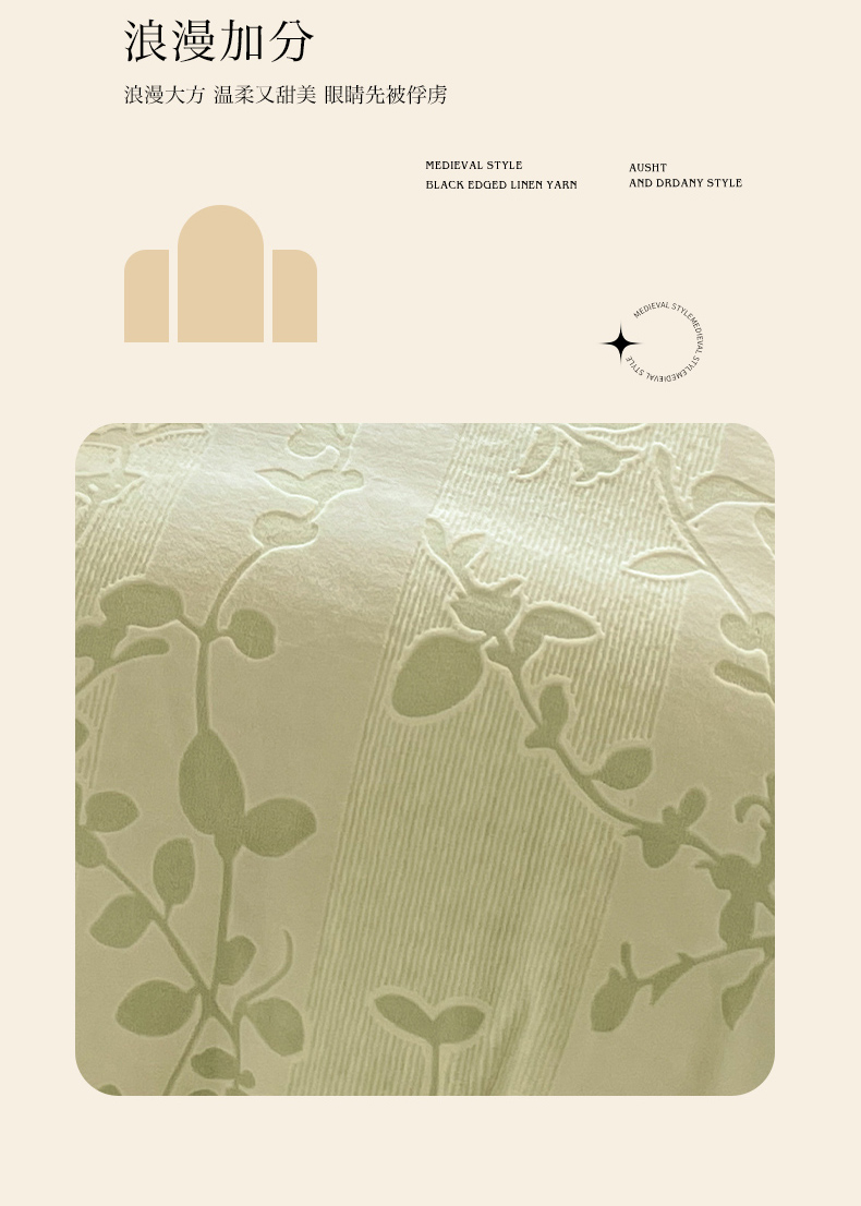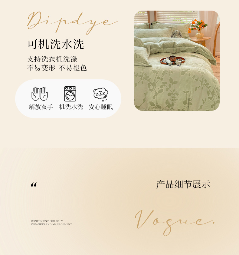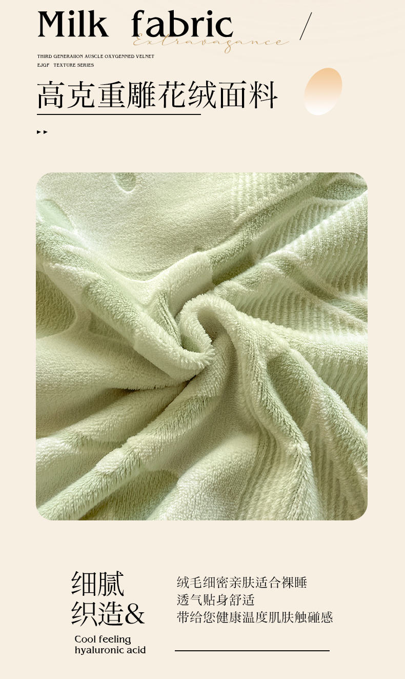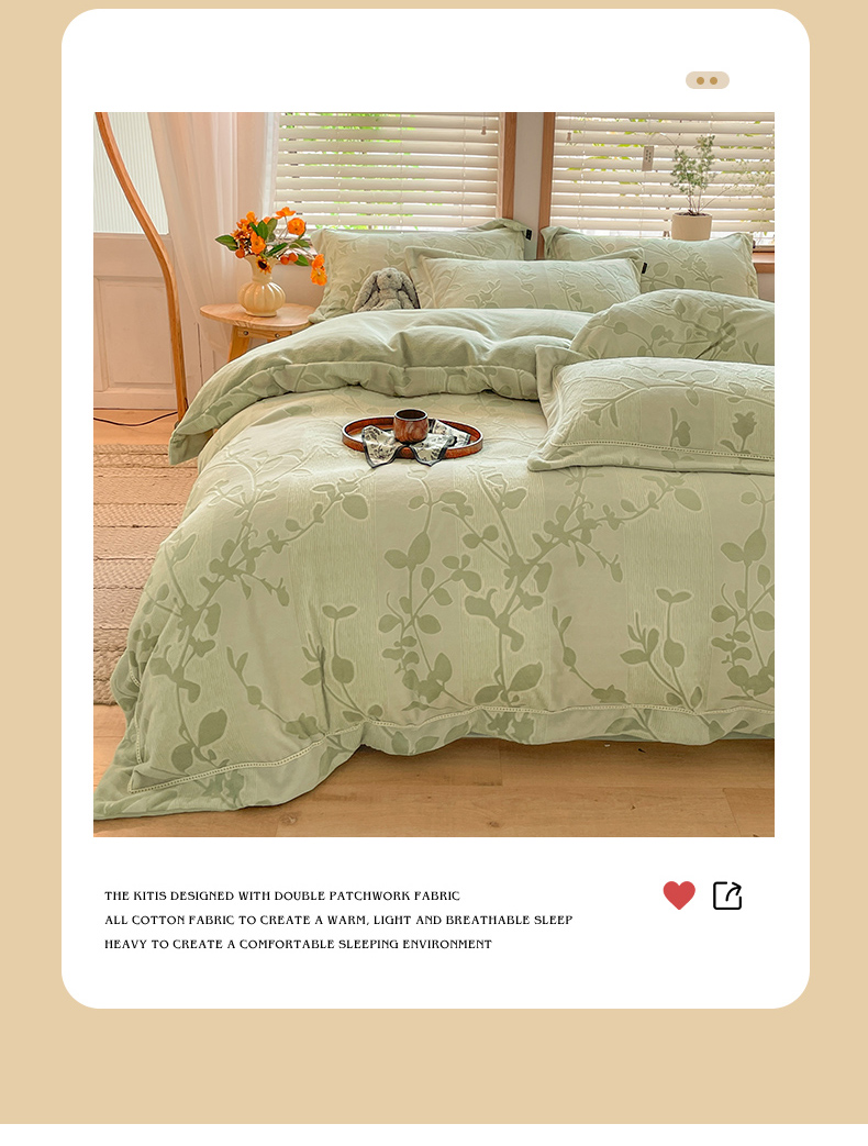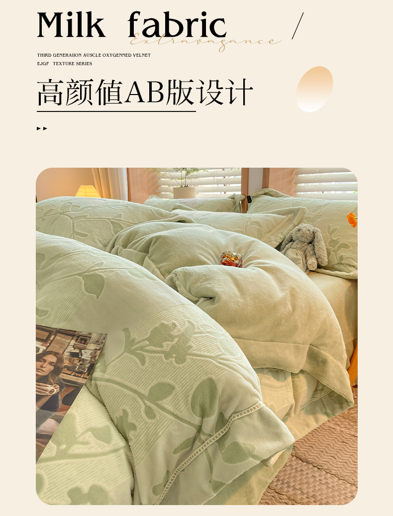 商品名称:简如 2025新款A类加厚冰岛立体雕花牛奶绒浮雕绒四件套(有买家秀) 花蔓-草绿