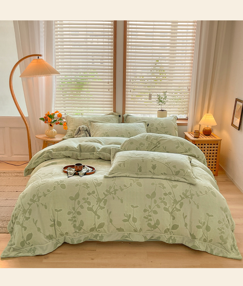 简如 2025新款A类加厚冰岛立体雕花牛奶绒浮雕绒四件套(有买家秀) 花蔓-草绿