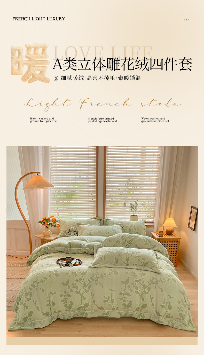 (总)简如 2025新款A类230克加厚立体雕花绒四件套,安吉拉-粉玉,安吉拉-海鸥灰,安吉拉-浅灰,安吉拉-浅绿,安吉拉-天空蓝,米兰-粉,米兰-米驼,米兰-玉,米兰-中灰