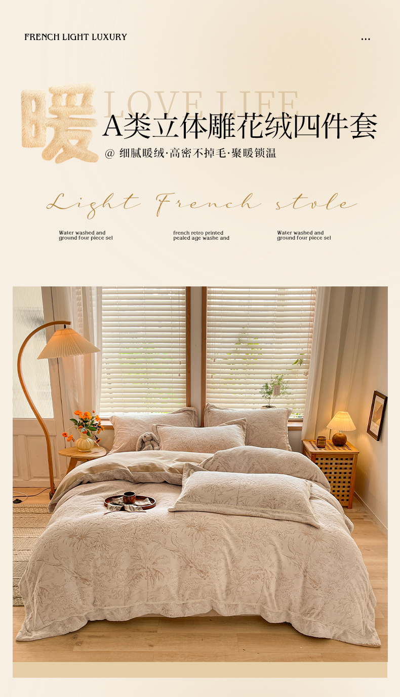 (总)简如 2025新款A类230克加厚立体雕花绒四件套,安吉拉-粉玉,安吉拉-海鸥灰,安吉拉-浅灰,安吉拉-浅绿,安吉拉-天空蓝,米兰-粉,米兰-米驼,米兰-玉,米兰-中灰
