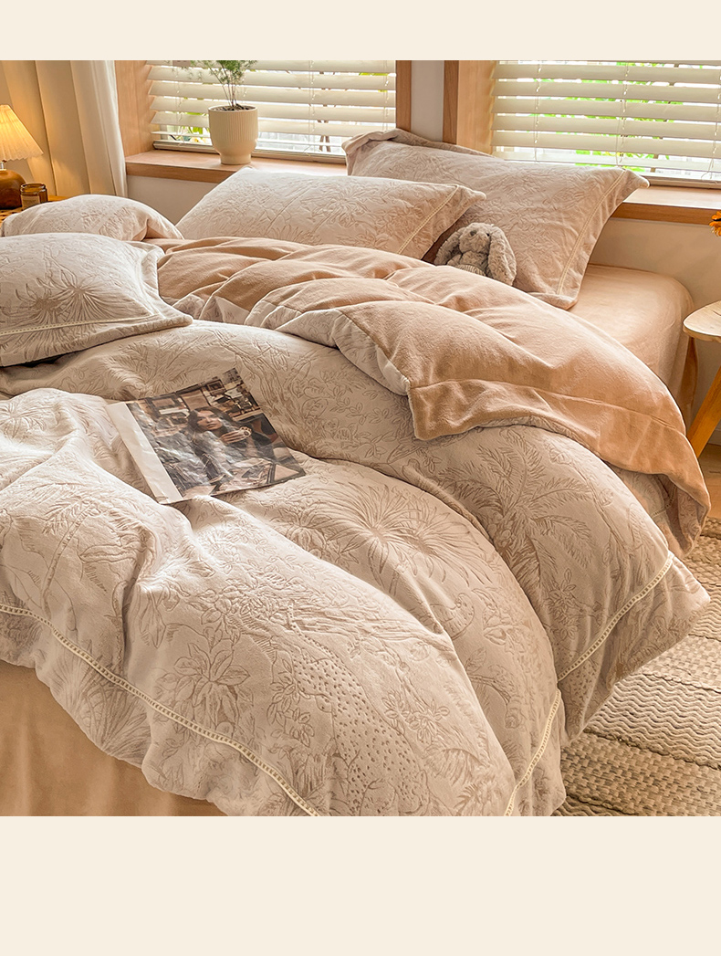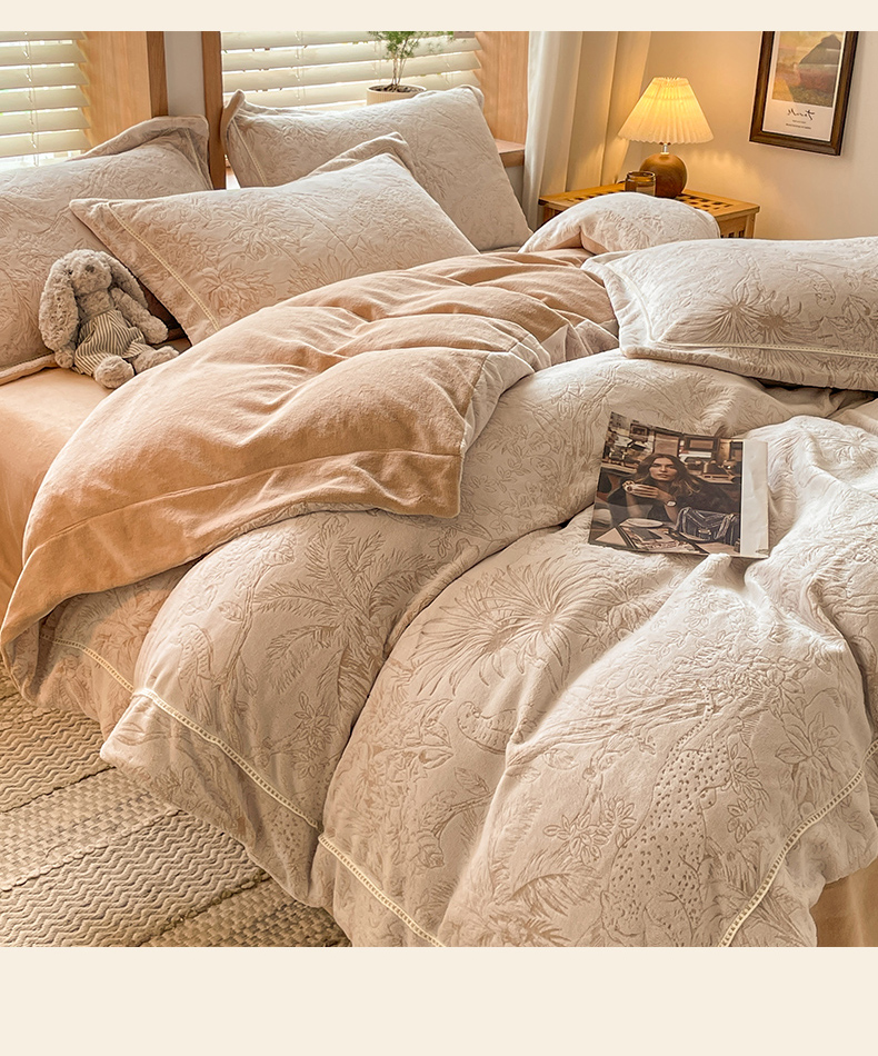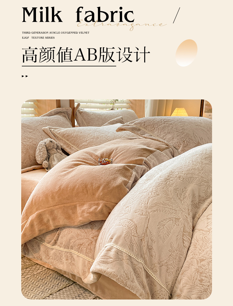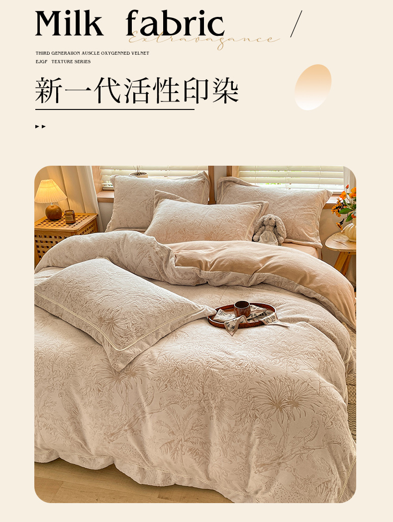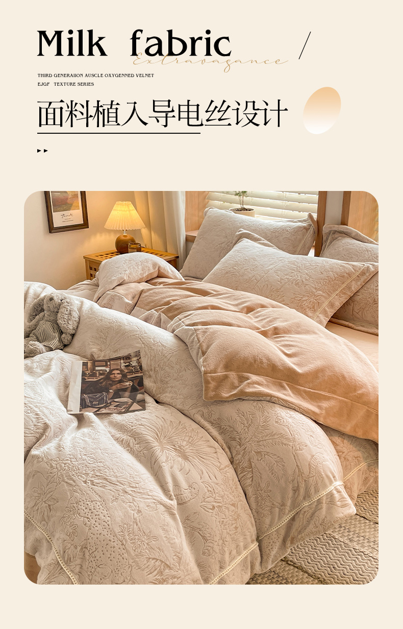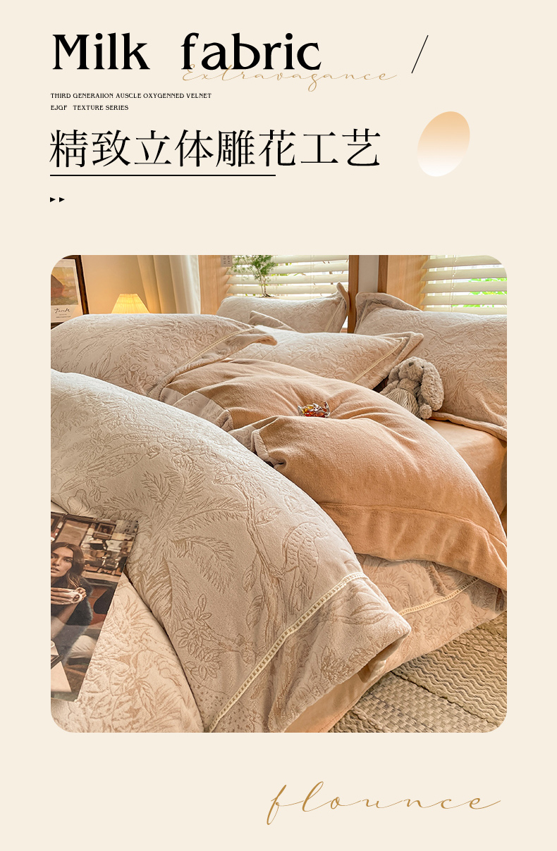 简如 2025新款A类加厚冰岛立体雕花牛奶绒浮雕绒四件套(有买家秀) 伊甸园