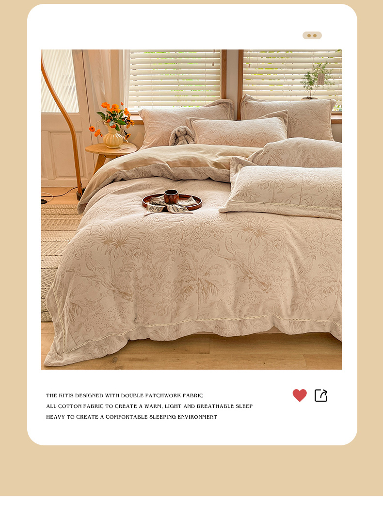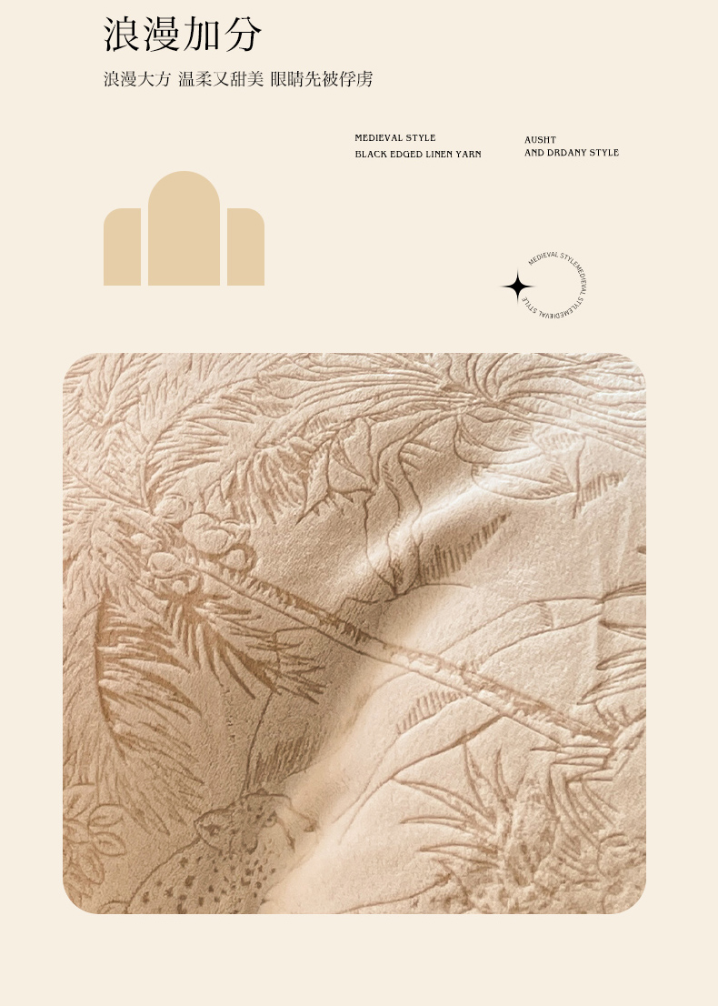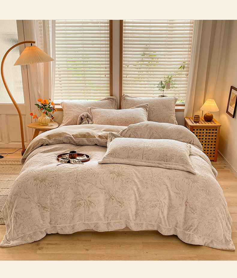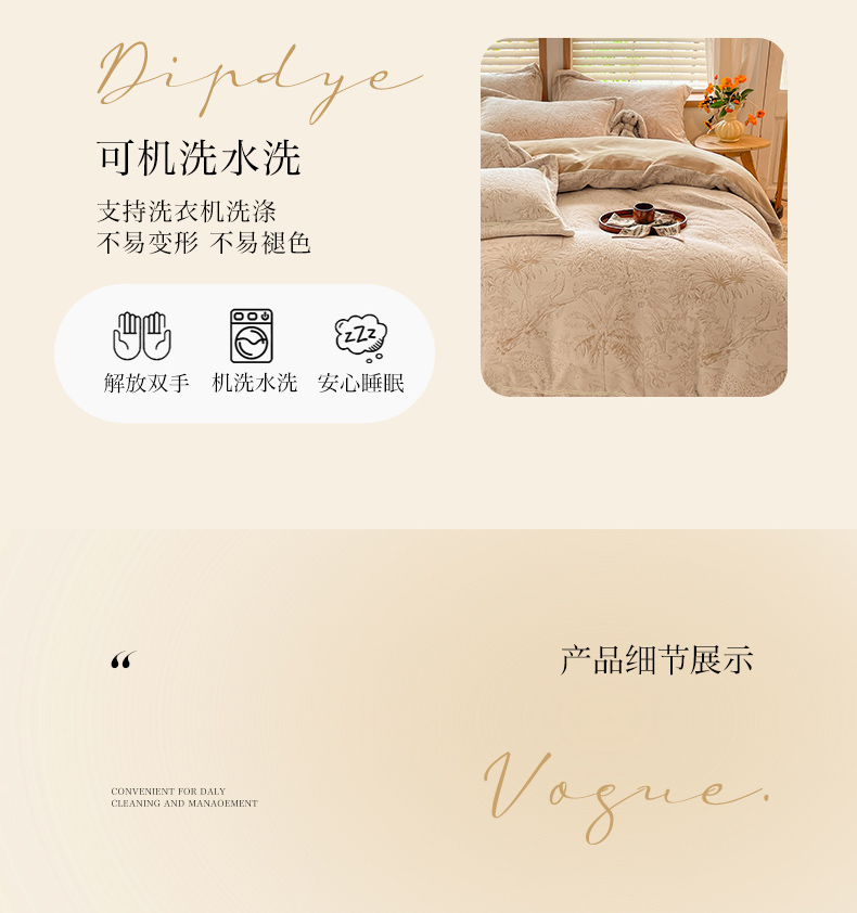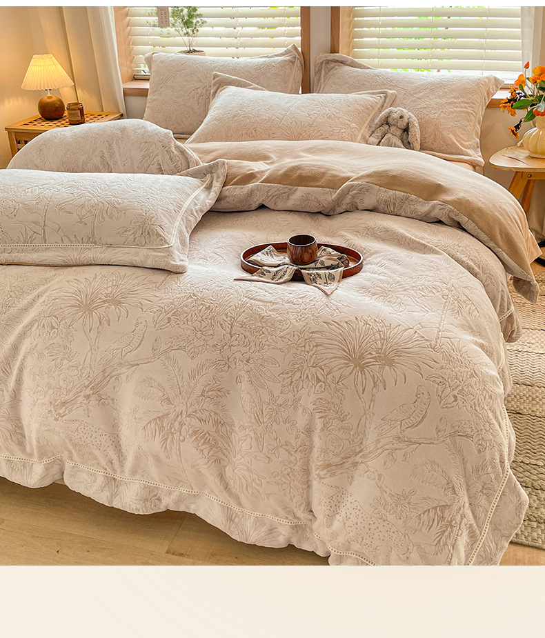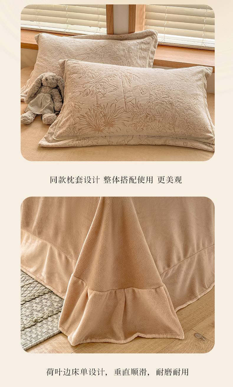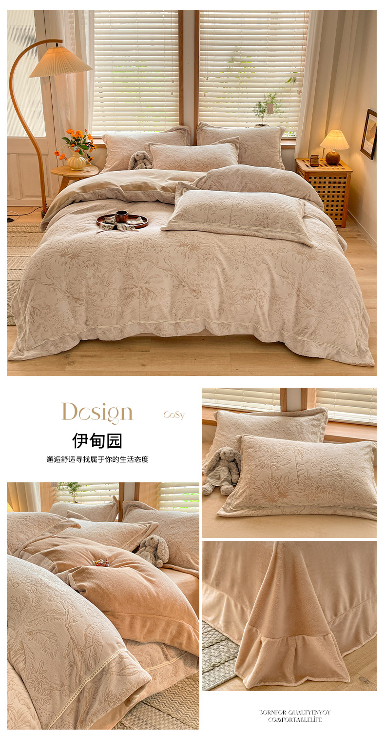 商品名称:简如 2025新款A类加厚冰岛立体雕花牛奶绒浮雕绒四件套(有买家秀) 伊甸园