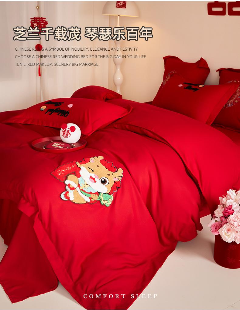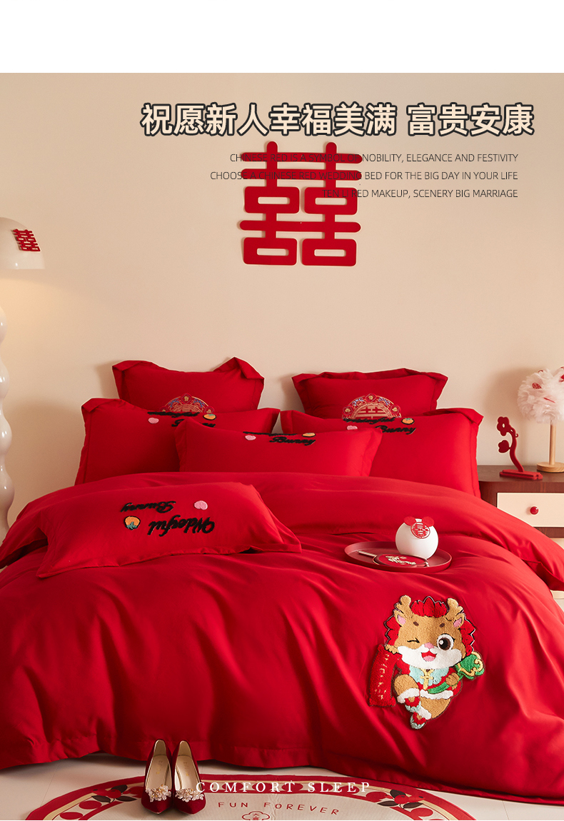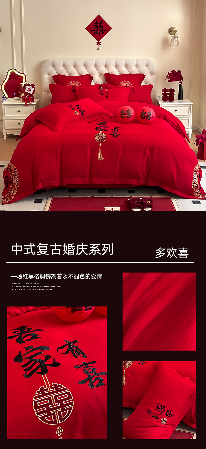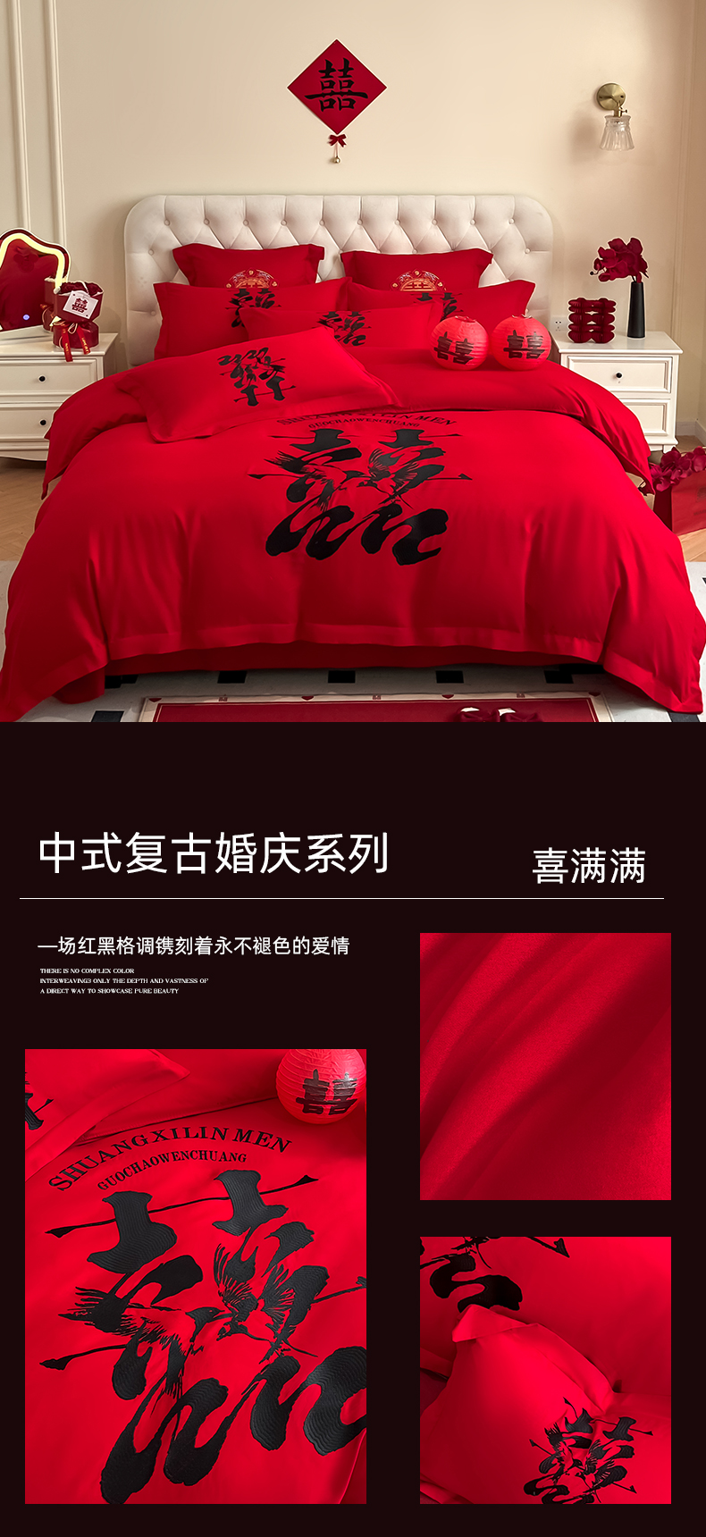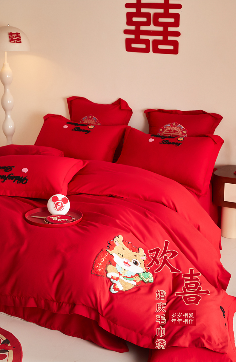 当前位置: 91家纺网 > 商品网购 > 床品套件 > 四件套 > 婚庆四件套 > 玉雅家纺 2025新款中式复古红黑格调刺绣婚庆四件套 婚庆毛巾绣-其乐龍龍