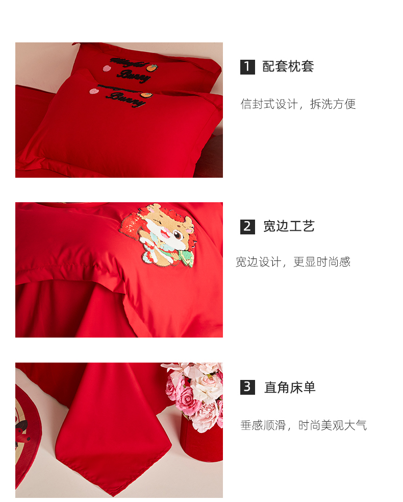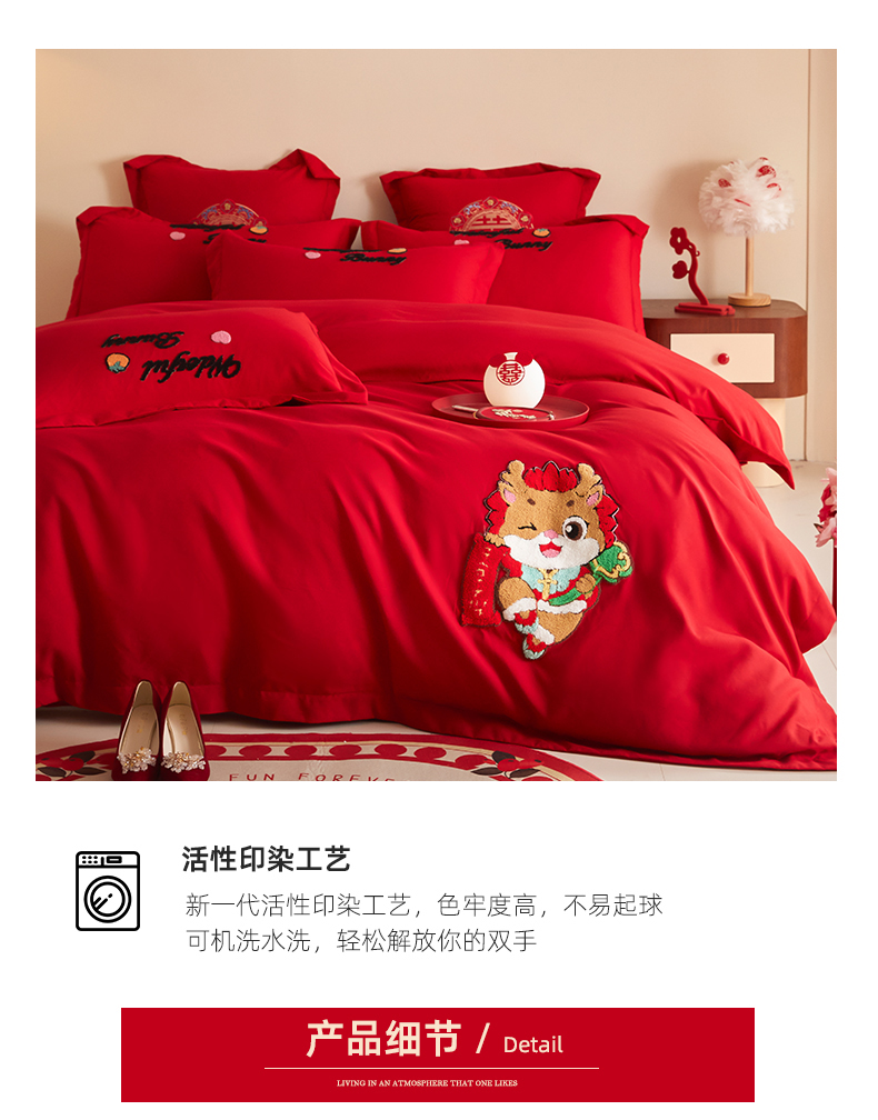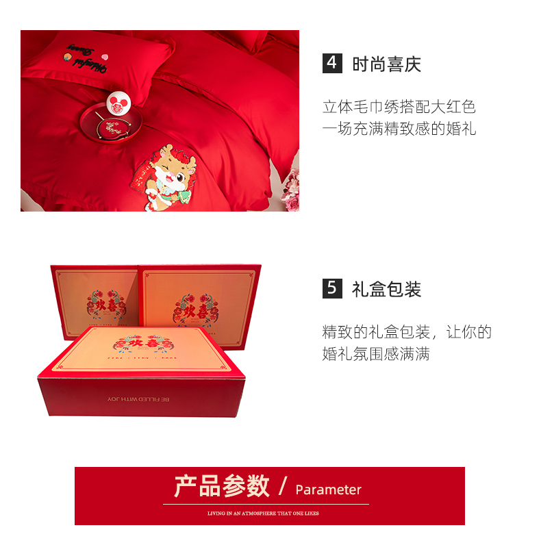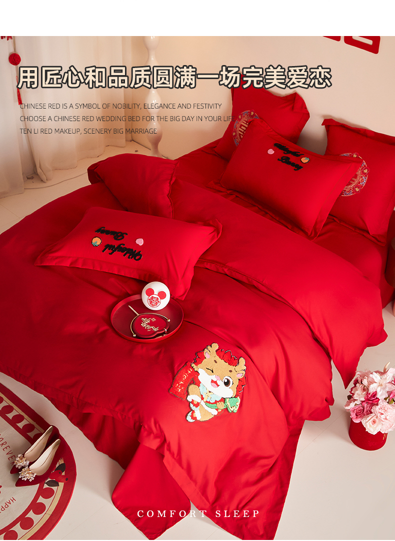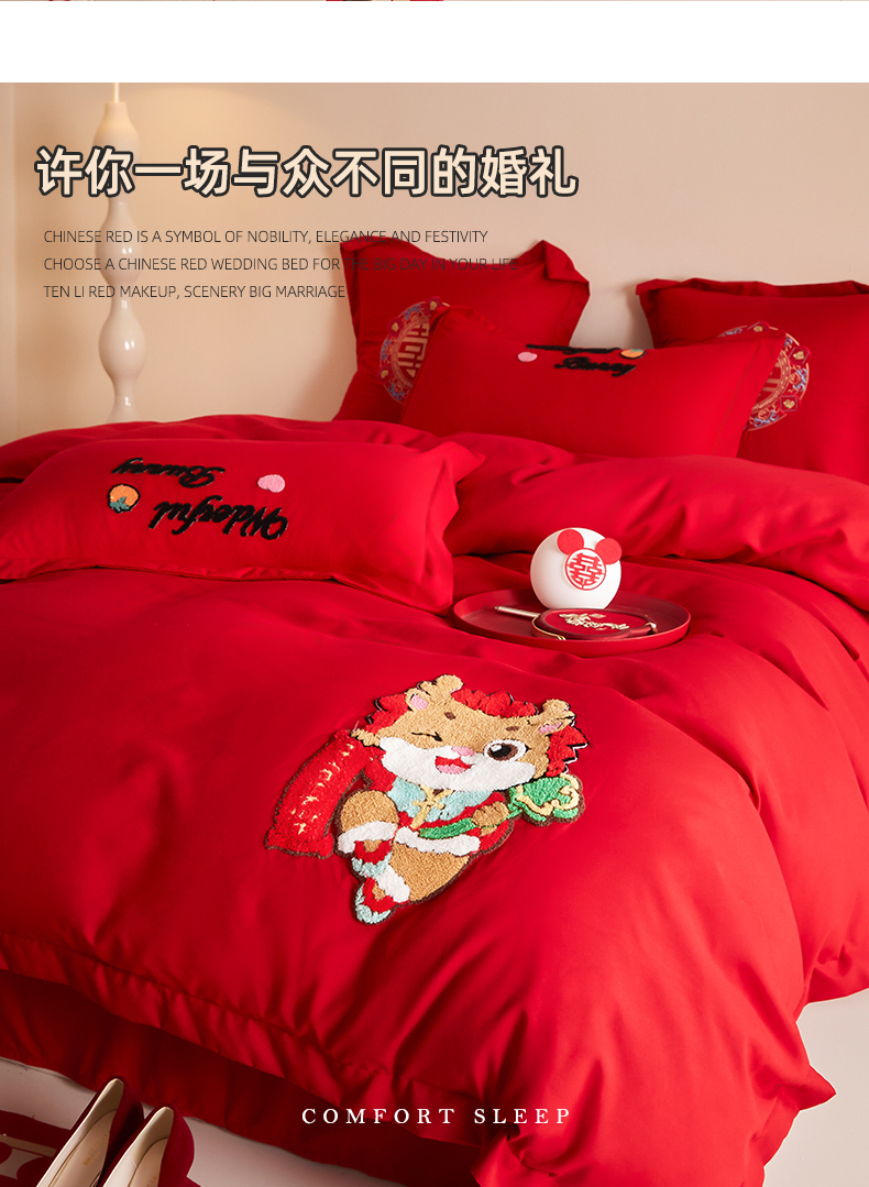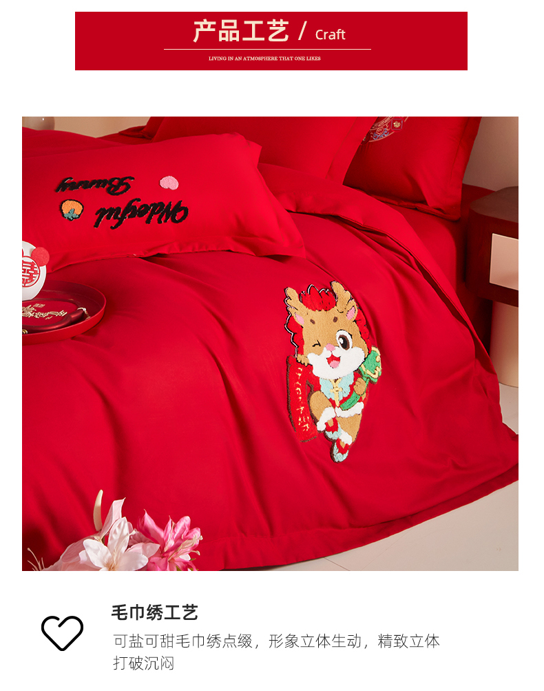 当前位置: 91家纺网 > 商品网购 > 床品套件 > 四件套 > 婚庆四件套 > 玉雅家纺 2025新款中式复古红黑格调刺绣婚庆四件套 婚庆毛巾绣-其乐龍龍