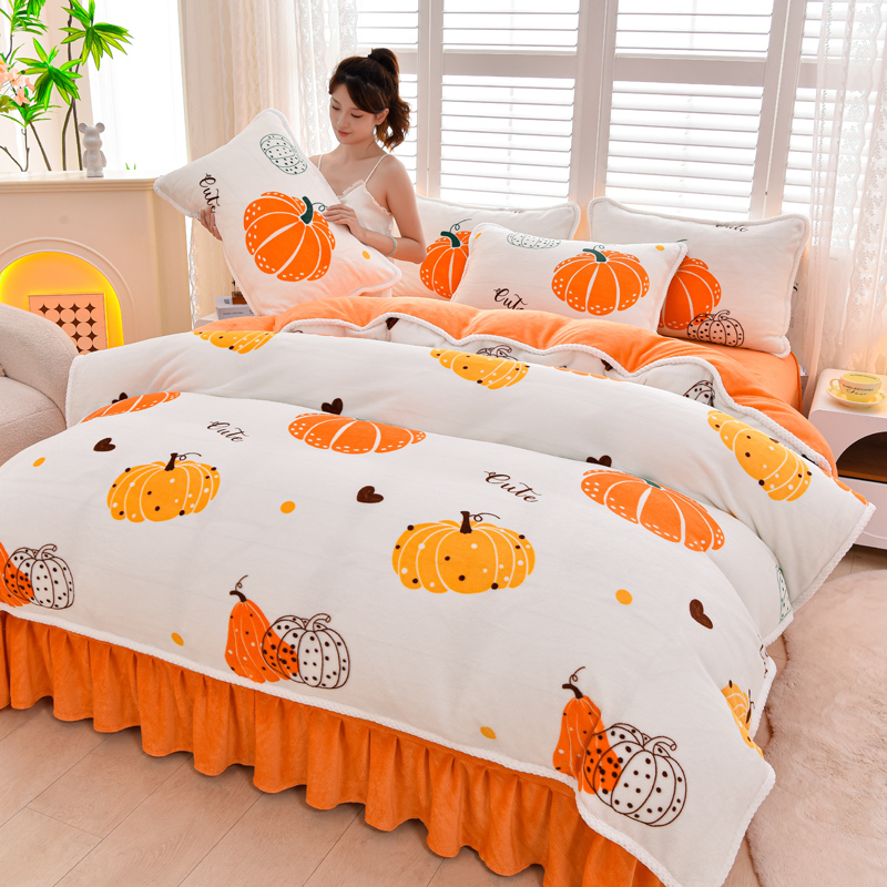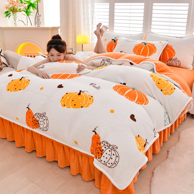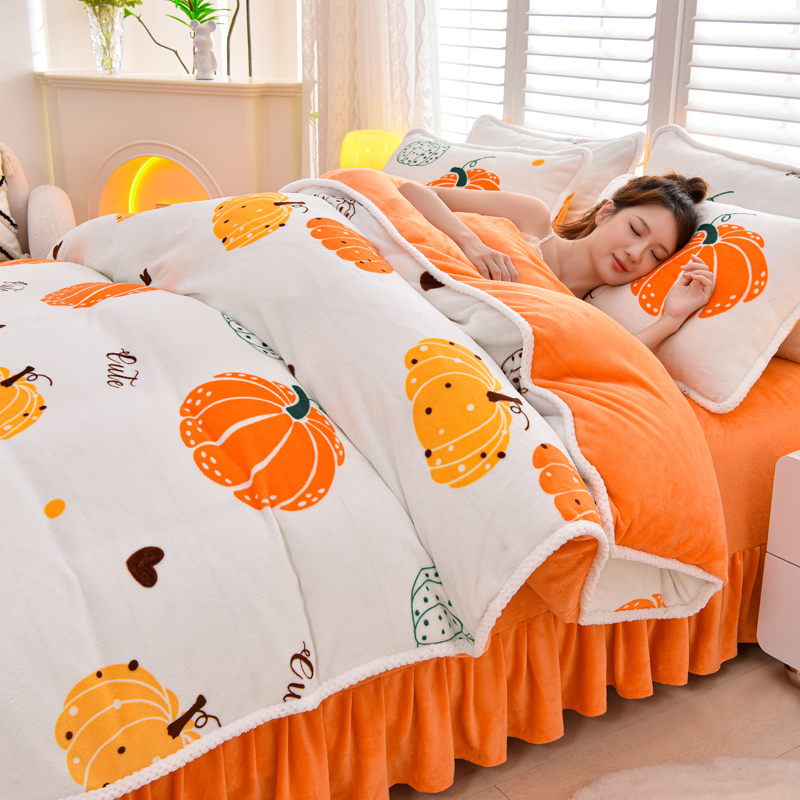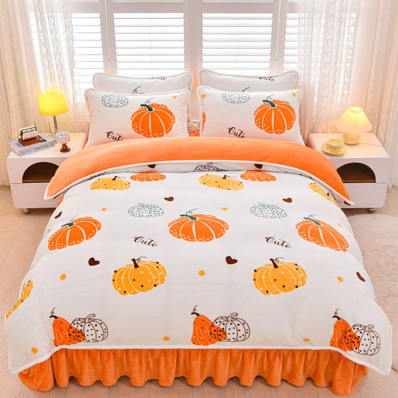 梦莱情 2024新款190克7斤半牛奶绒四件套爱心南瓜