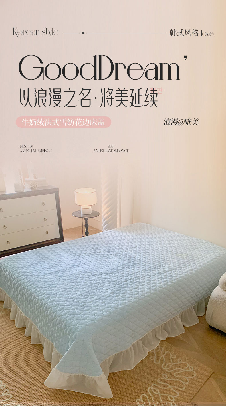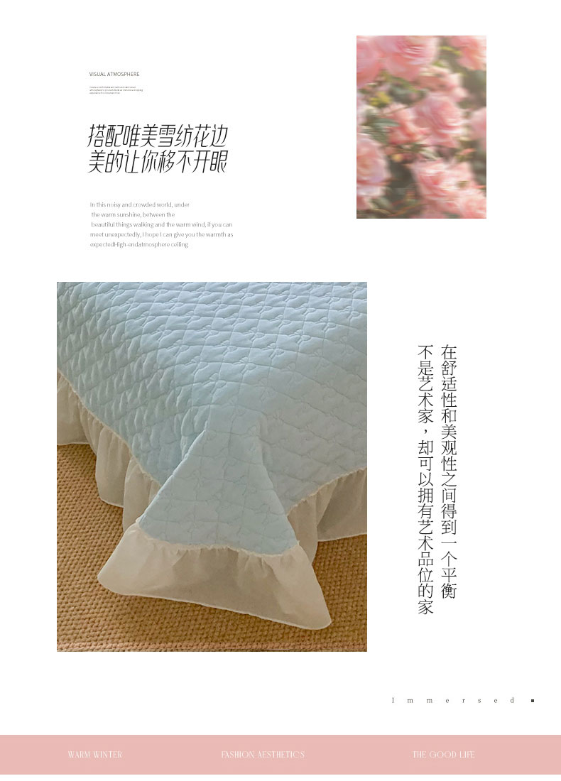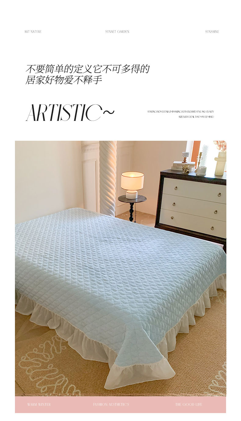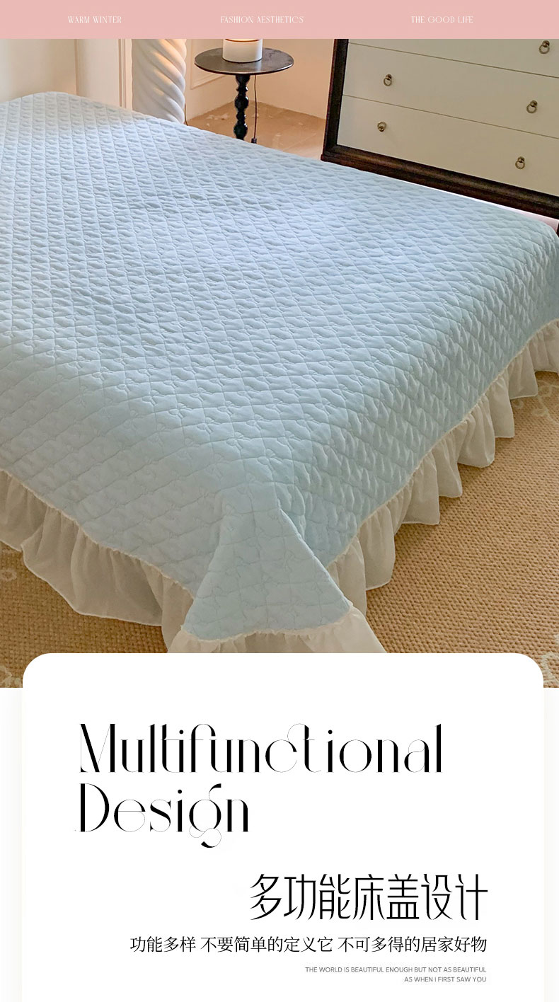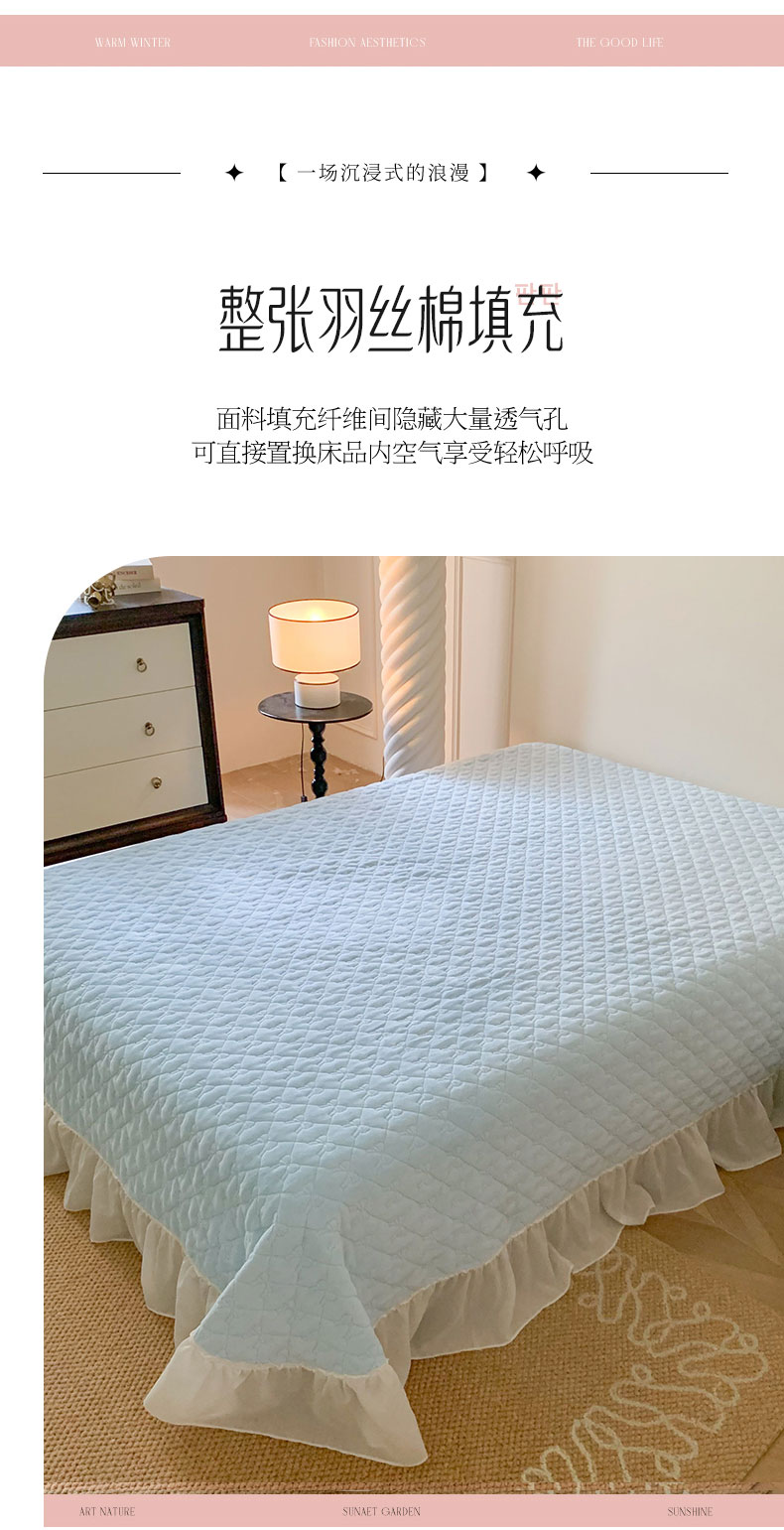 (总)吾欢心 2025新款公主风雪纺边四季通用夹棉床盖,床盖白,床盖粉,床盖黄,床盖咖,床盖绿,床盖抹茶绿,床盖紫
