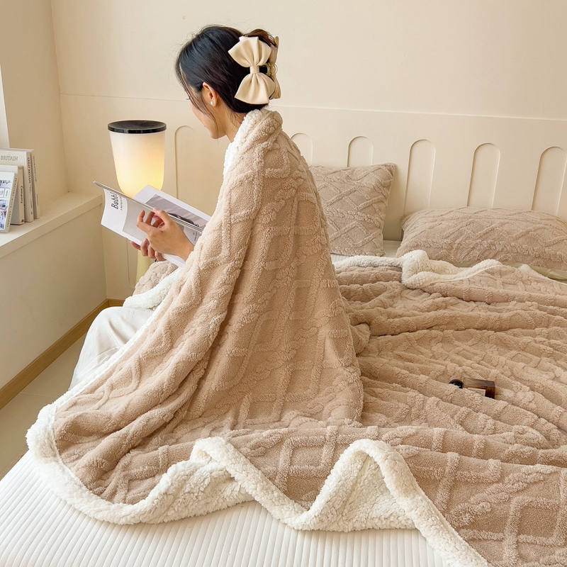 希廷顿 2024新款高克重双层加厚塔芙绒毛毯 麻花-奶咖色