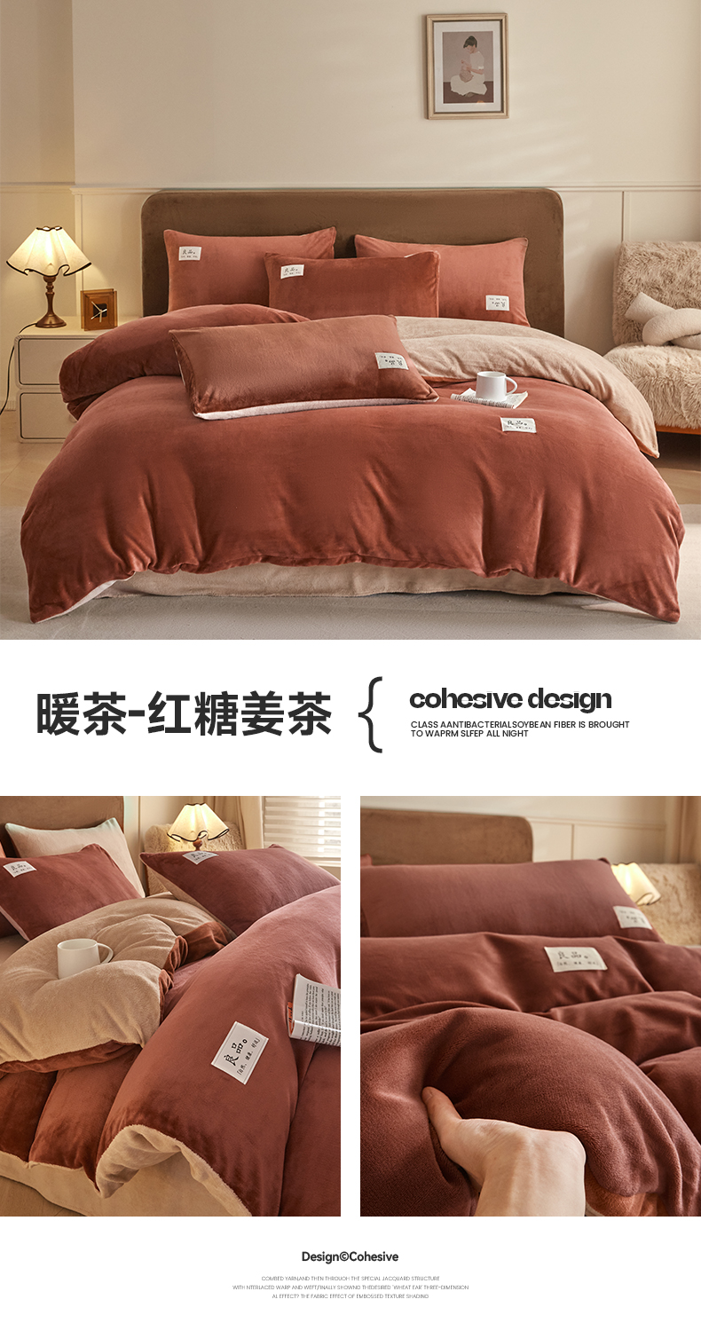 当前位置: 91家纺网 > 商品网购 > 床品套件 > 四件套 > 牛奶绒四件套 > 澳梵家居 2024新款牛奶绒素色双拼四件套--【暖茶系列】 暖茶-红糖姜茶