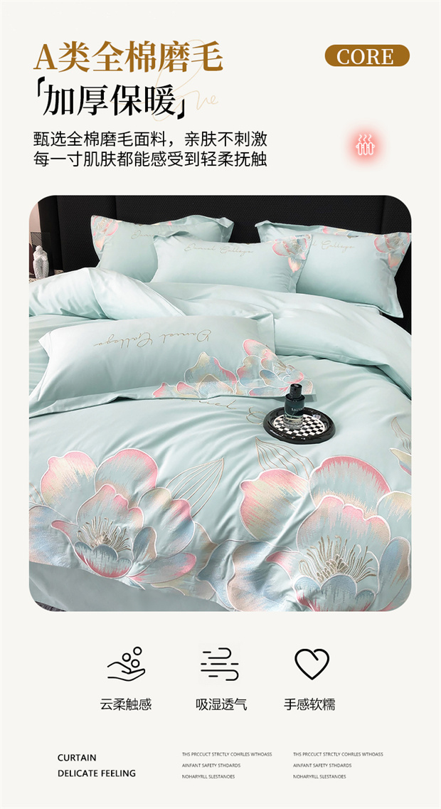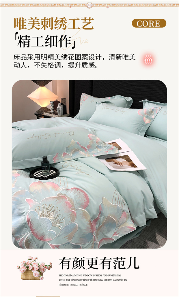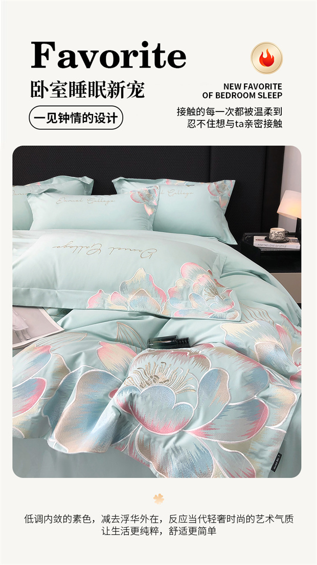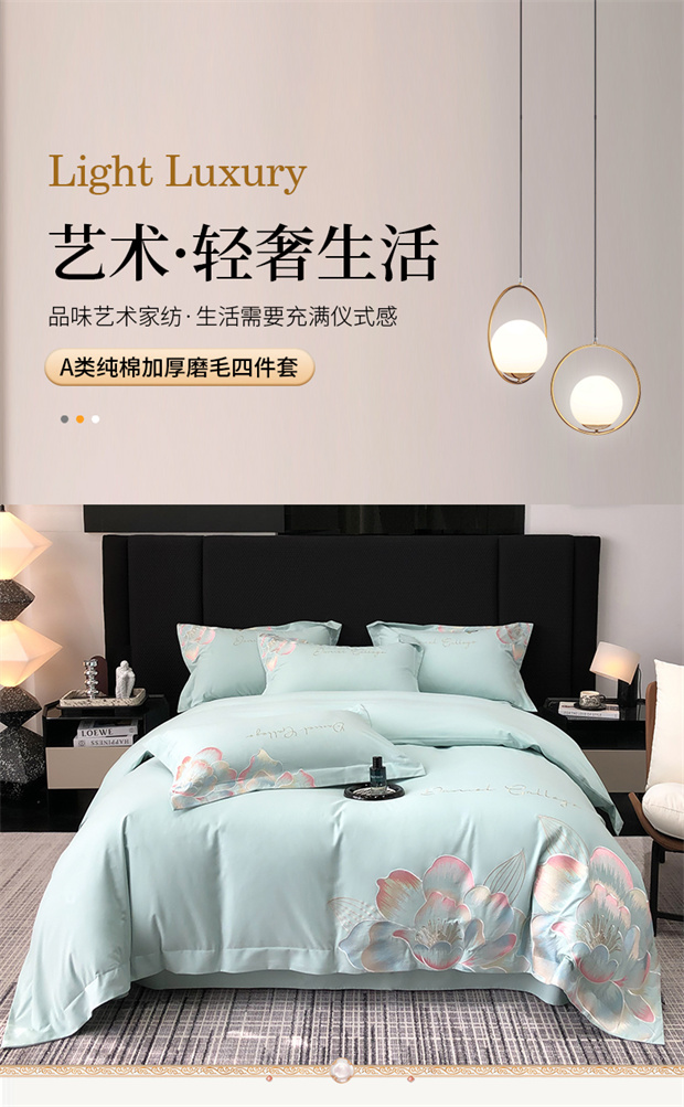 当前位置: 91家纺网 > 商品网购 > 床品套件 > 四件套 > 普通磨毛四件套 > 家居1号家纺 2024新款全棉磨毛刺绣四件套-爱洛 冰海蓝