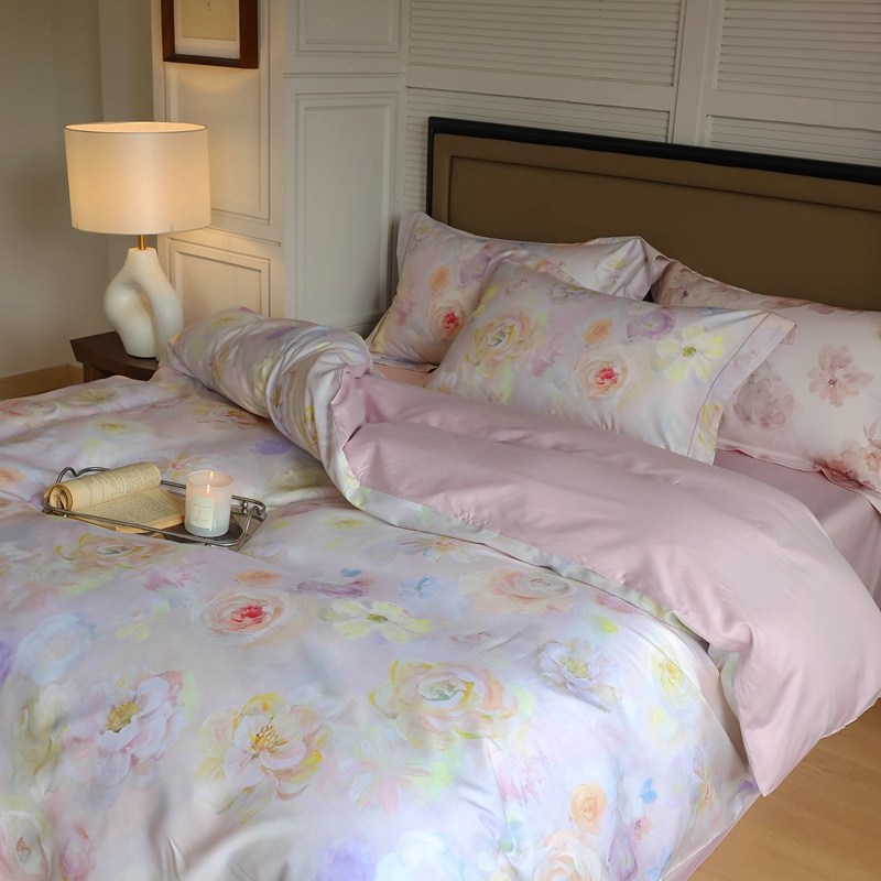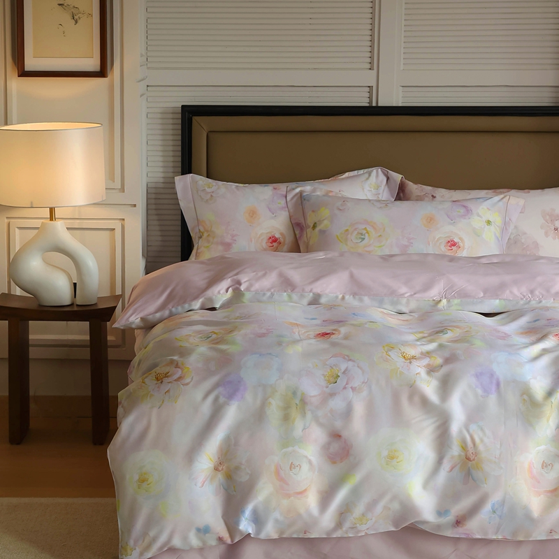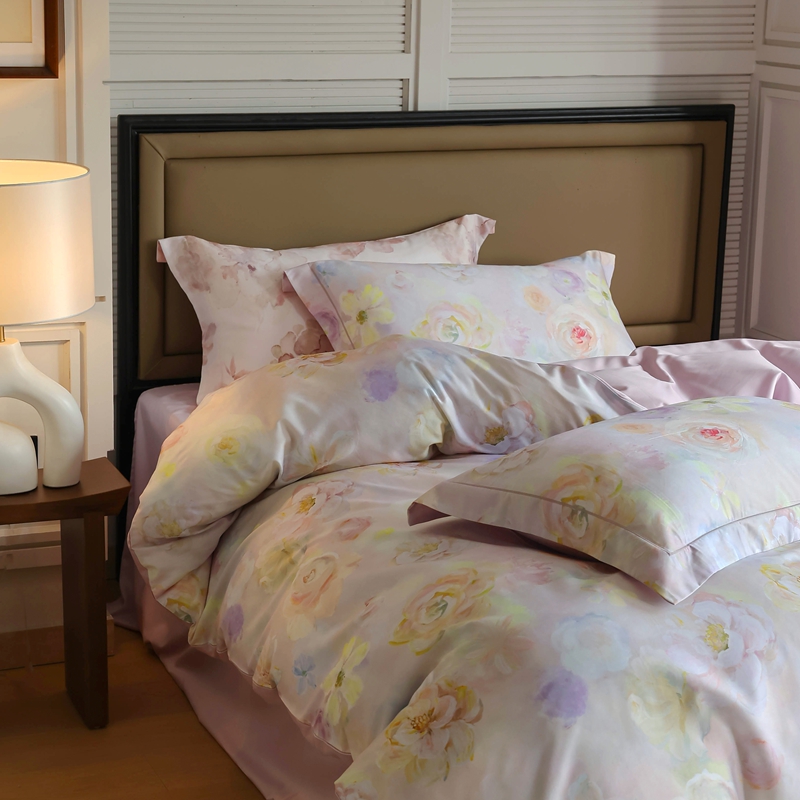 商品名称:久典家居 2024新款60S天丝棉数码磨毛四件套 苏羽-粉
