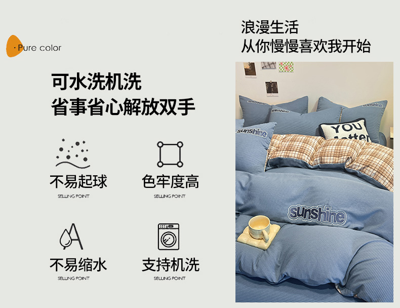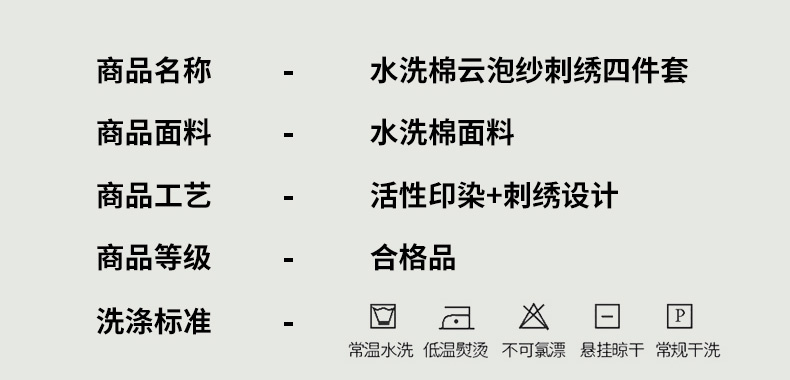 标准被套配1.8床笠:被套200*230 床笠180*200 枕套48*74*2 | ¥67.00 |
