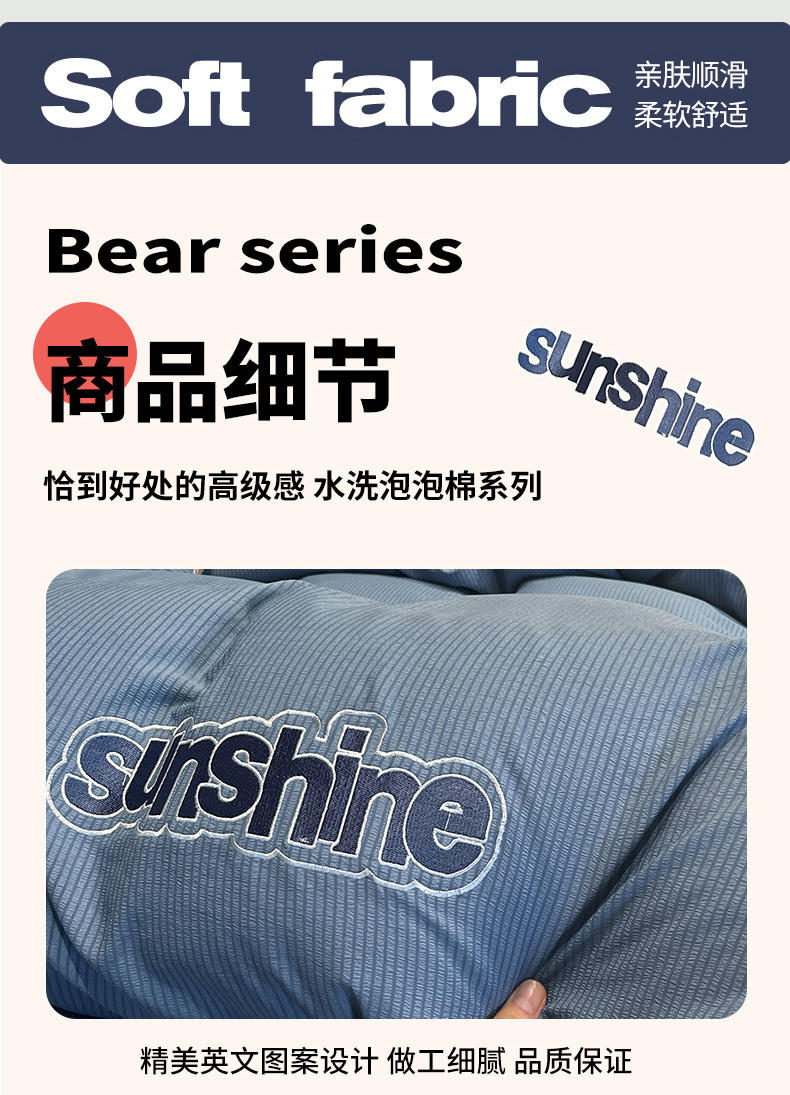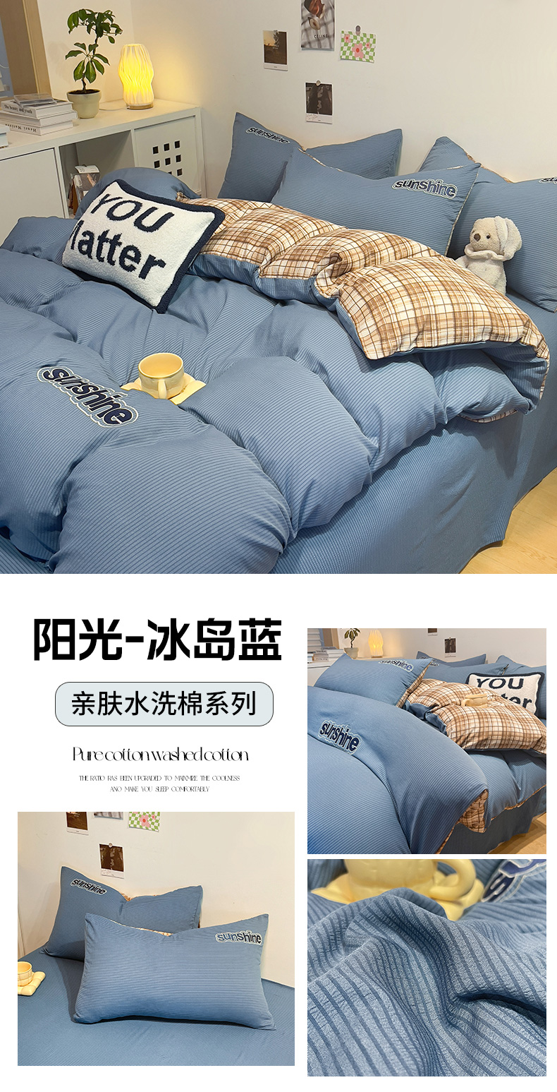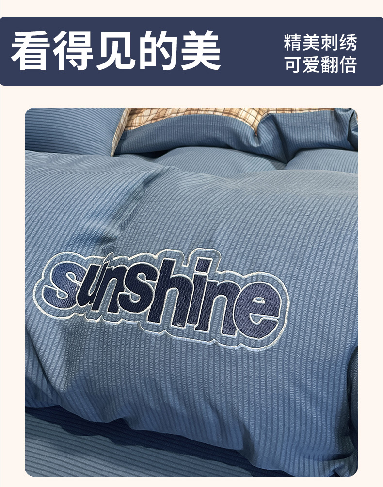 当前位置: 91家纺网 > 商品网购 > 床品套件 > 四件套 > 水洗棉四件套 > 眠帛家居 2024新款水洗棉磨毛提花刺绣四件套阳光系列 阳光-冰岛蓝