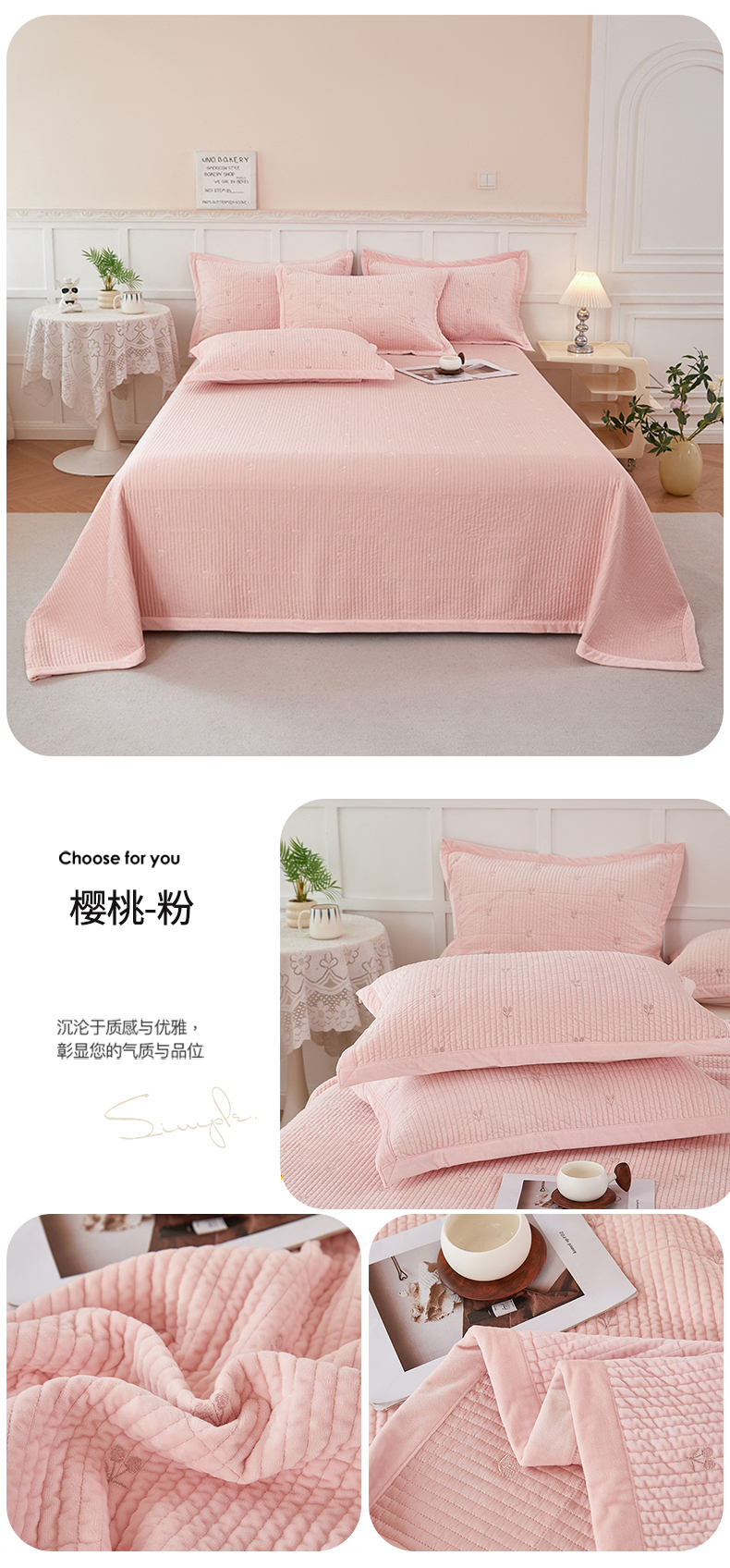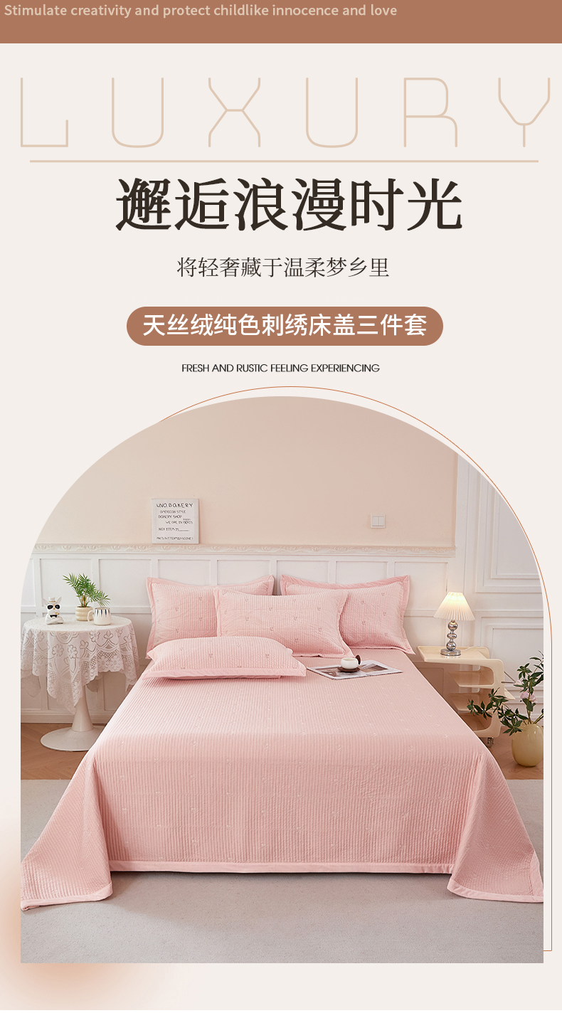 商品名称:莎果 2024新款天丝绒刺绣款床盖三件套 樱桃-粉