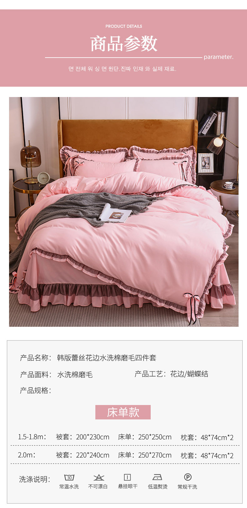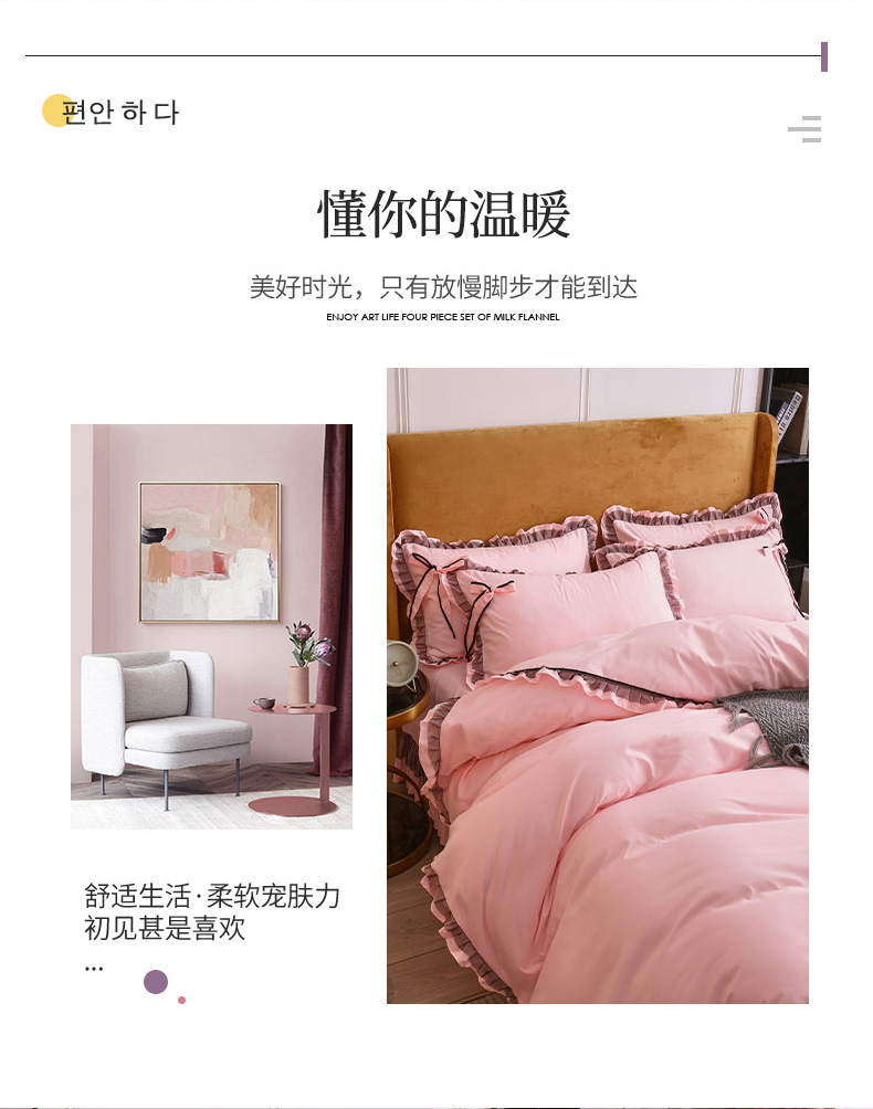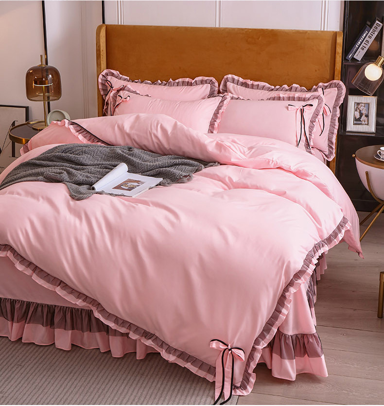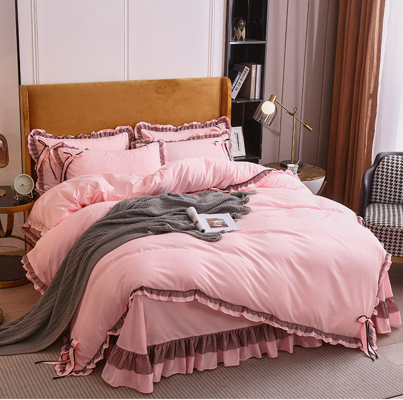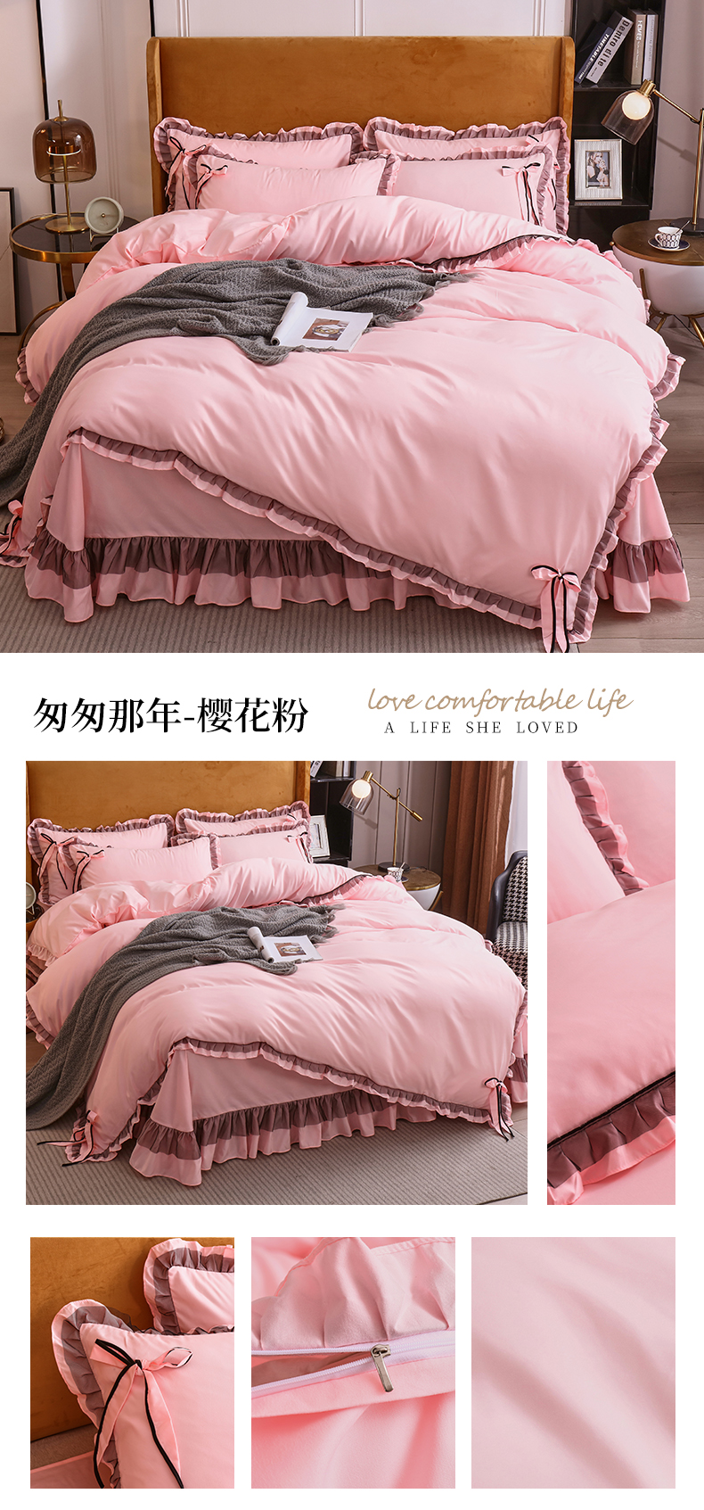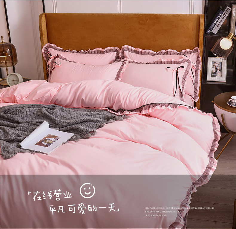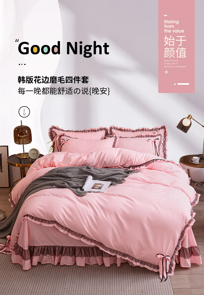 商品名称:兴美佳 2024新款韩版花边磨毛四件套-匆匆那年 匆匆那年樱花粉