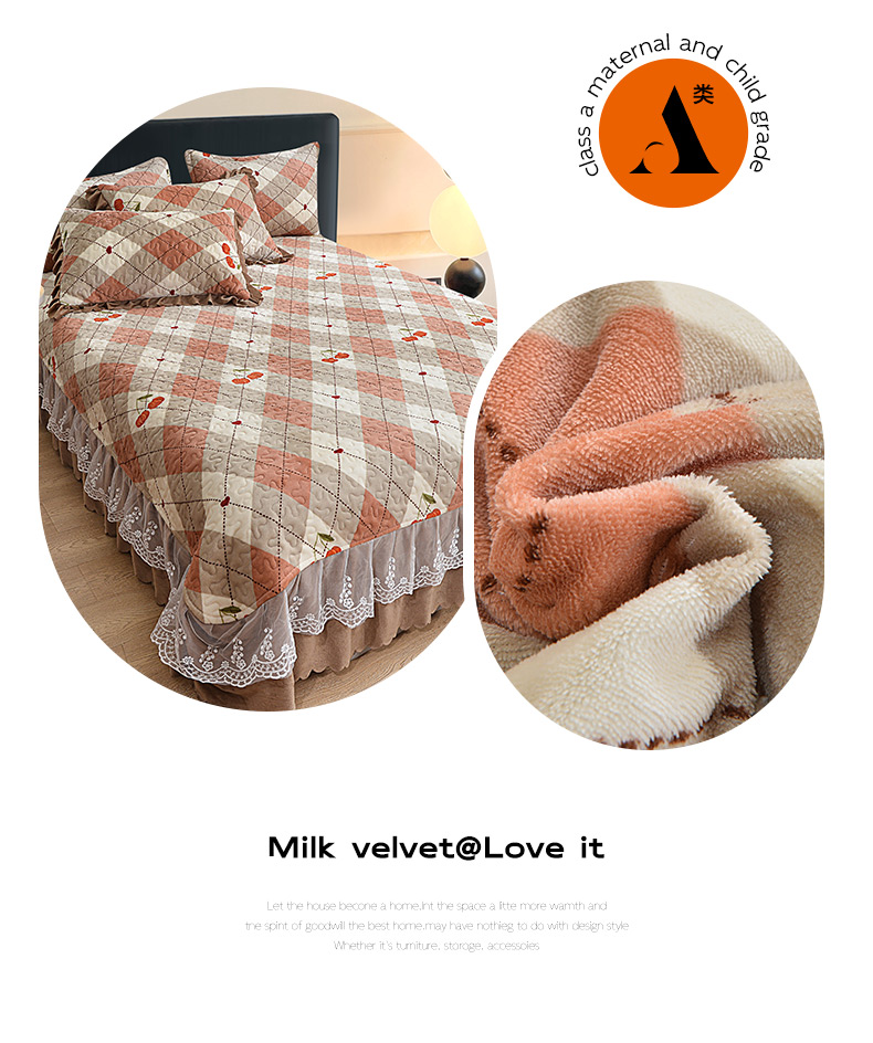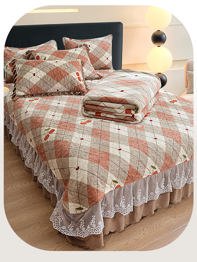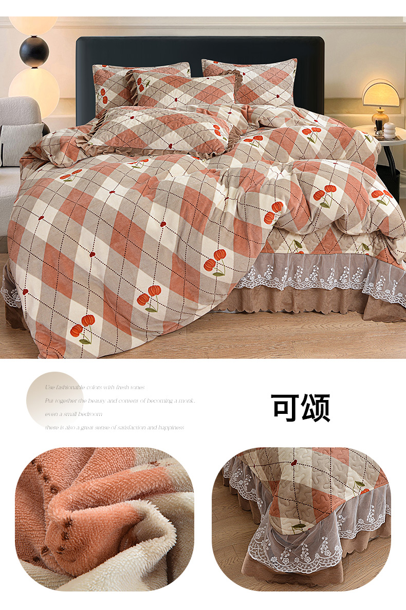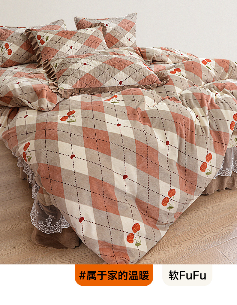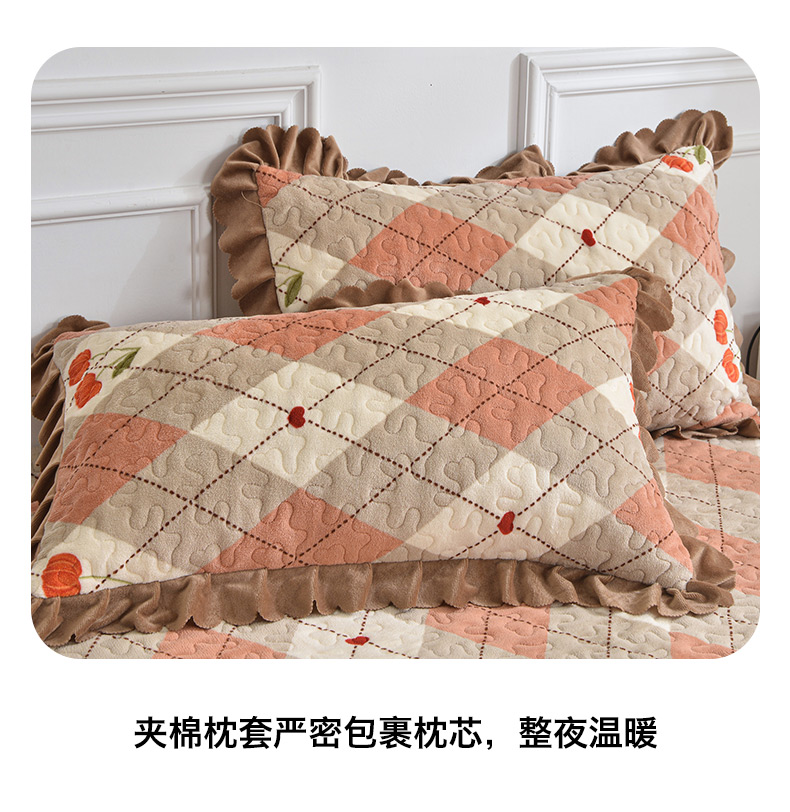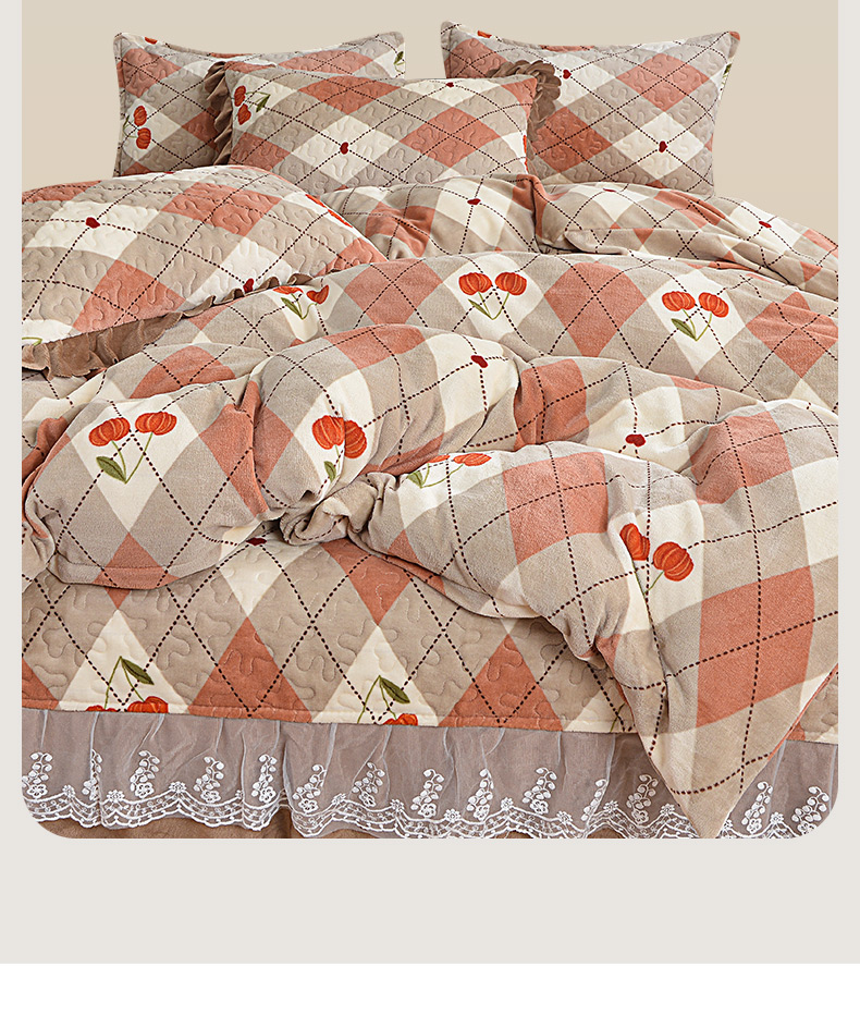 2024新款亲肤牛奶绒夹棉床盖四件套 可颂