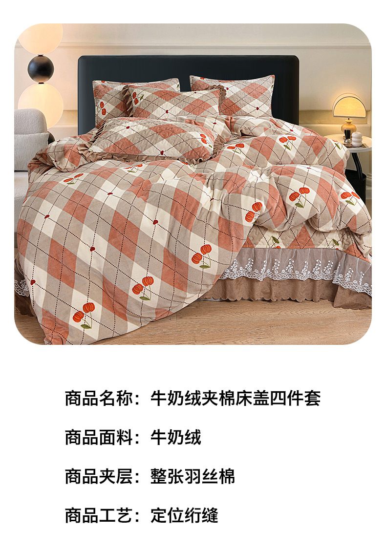 (总)梦柏家纺 2025新款牛奶绒夹棉床盖四件套,蓓思,波点,叠翠流金,蝶枝翘,繁花,粉色玫瑰,花团锦簇,花语,桔子,拉布布,恋爱山茶,绿荫,伦伯特,梦蝶,沐晨,秋意暖花,甜心,霞光,香甜,向日葵,小碎花,优朵,kt公主,花季物语,美丽花园