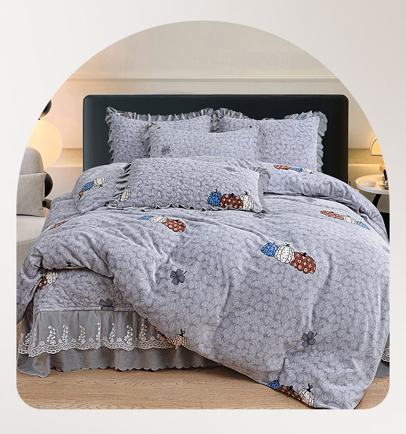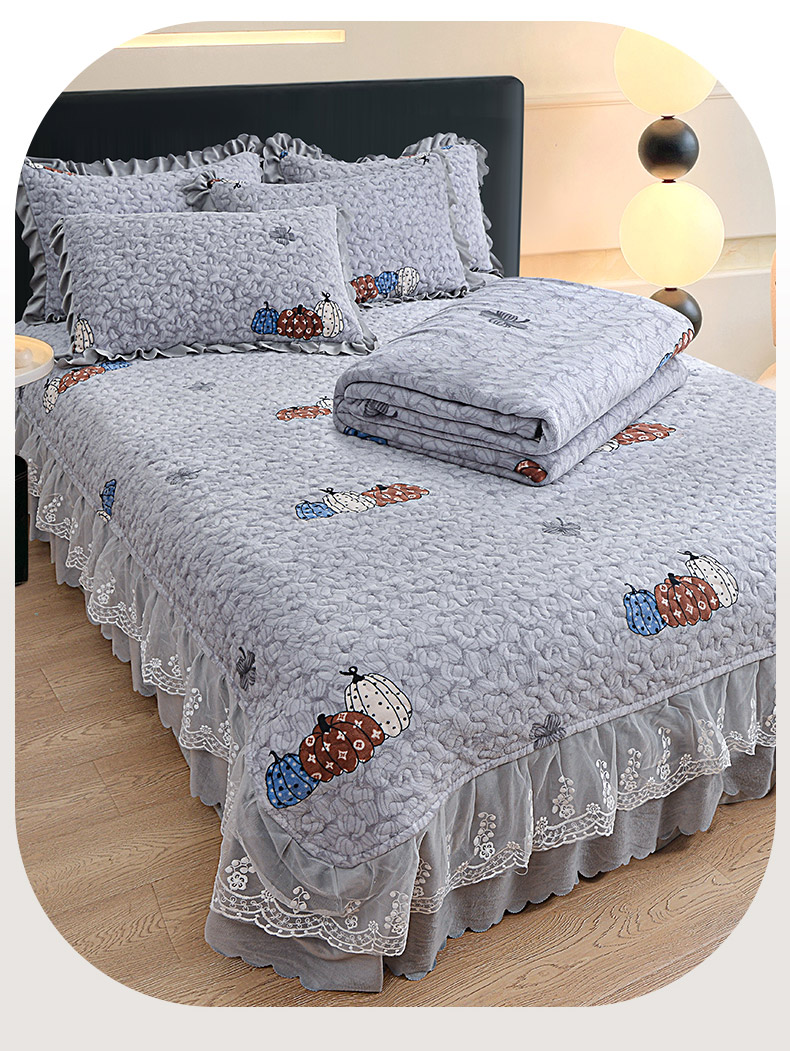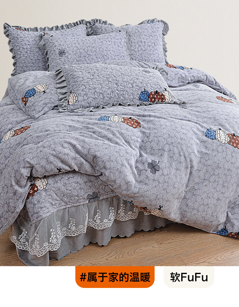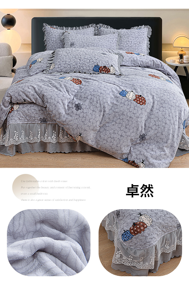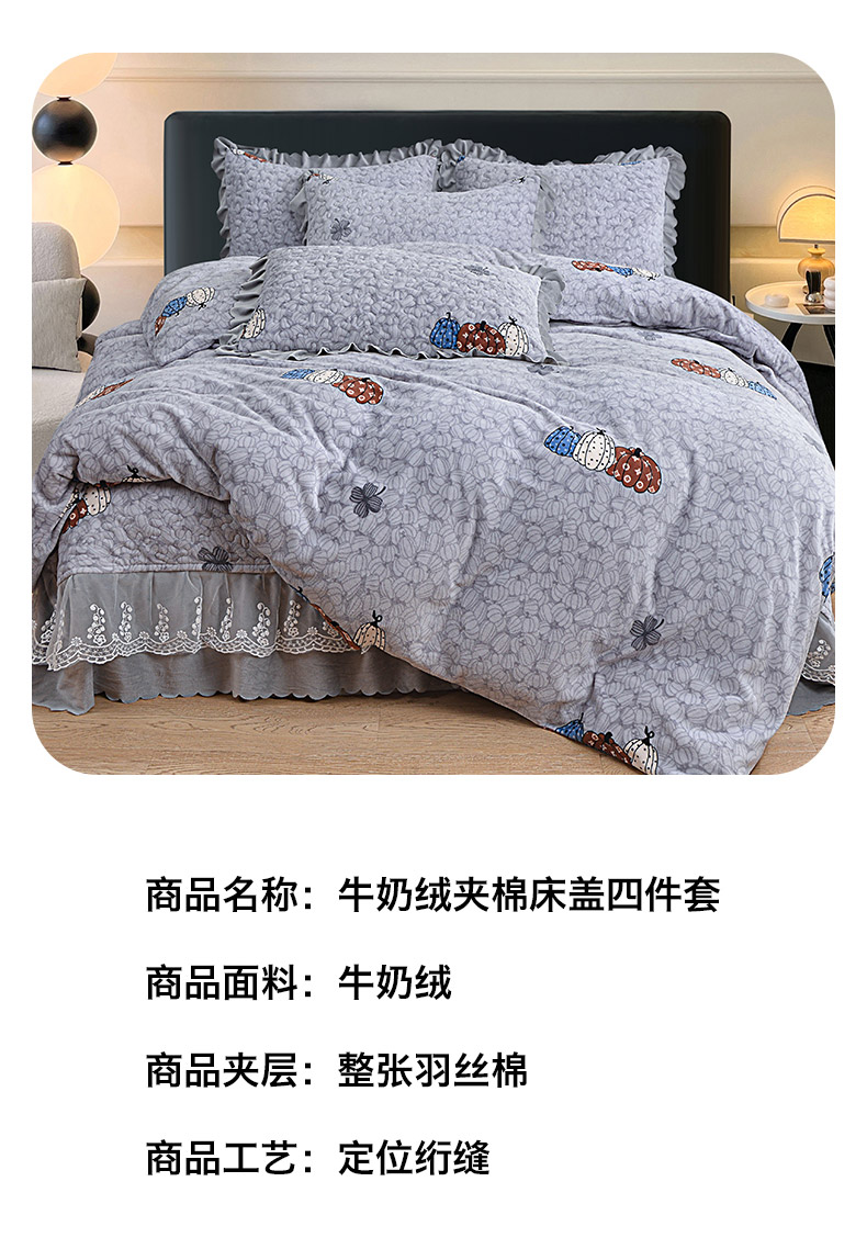 2024新款亲肤牛奶绒夹棉床盖四件套 卓然