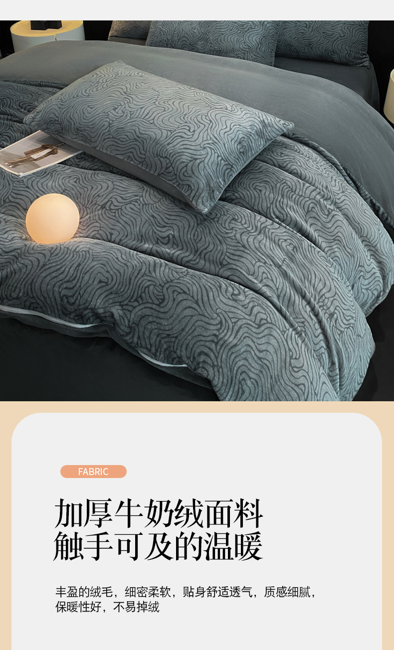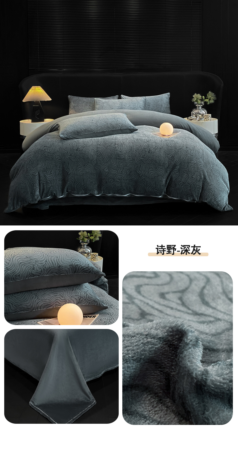 当前位置: 91家纺网 > 商品网购 > 床品套件 > 四件套 > 牛奶绒四件套 > 经年 2025新款牛奶绒四件套-诗野 诗野-深灰