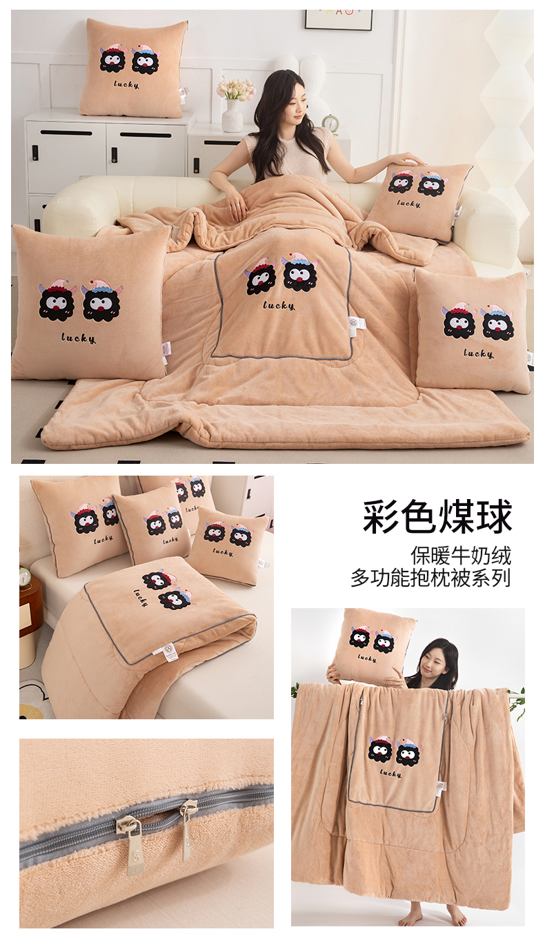 商品名称:2024新款牛奶绒动物乐园抱枕被 彩色煤球