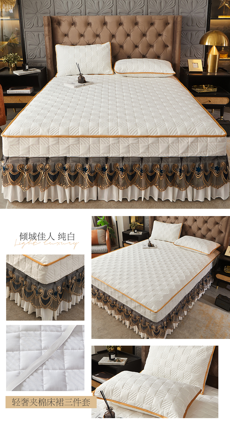 锦逸家居 2024新款加厚磨毛轻奢夹棉床裙床笠三件套系列 佳人-米白