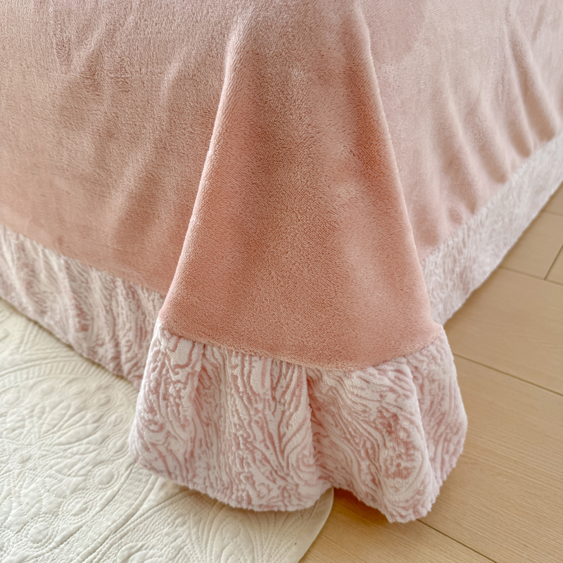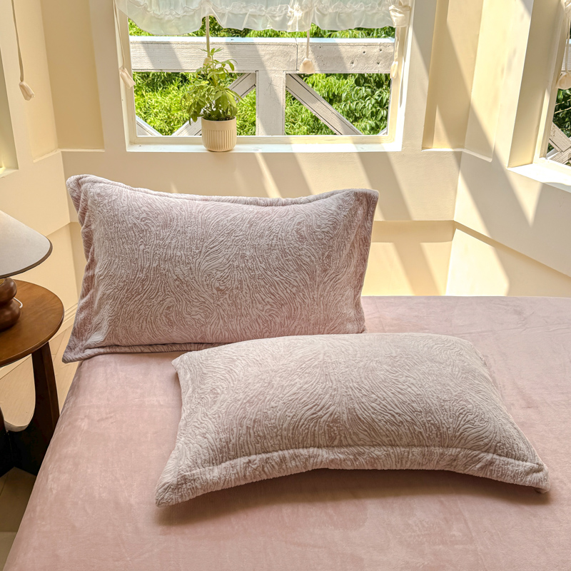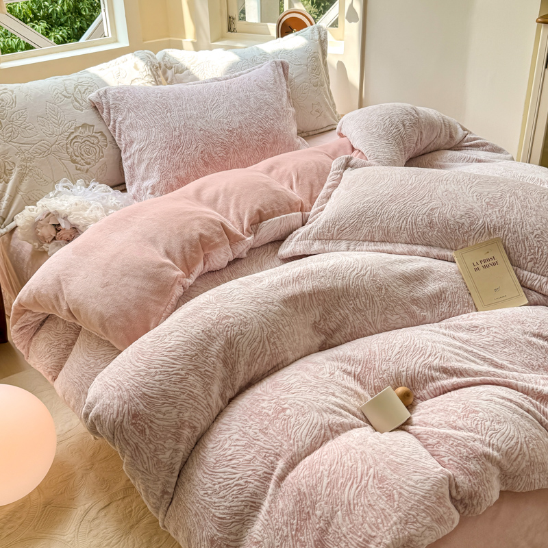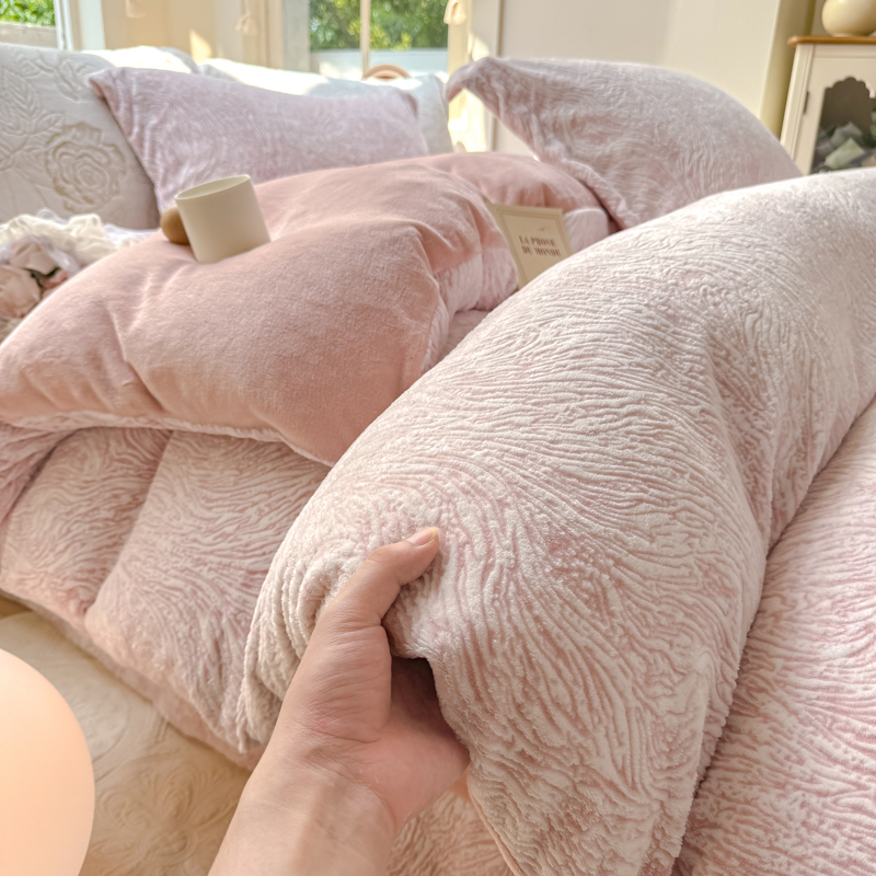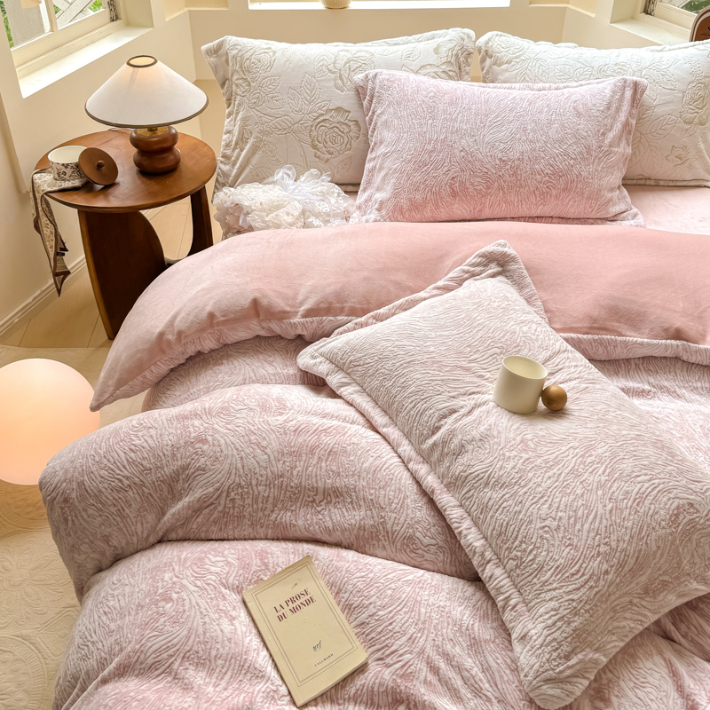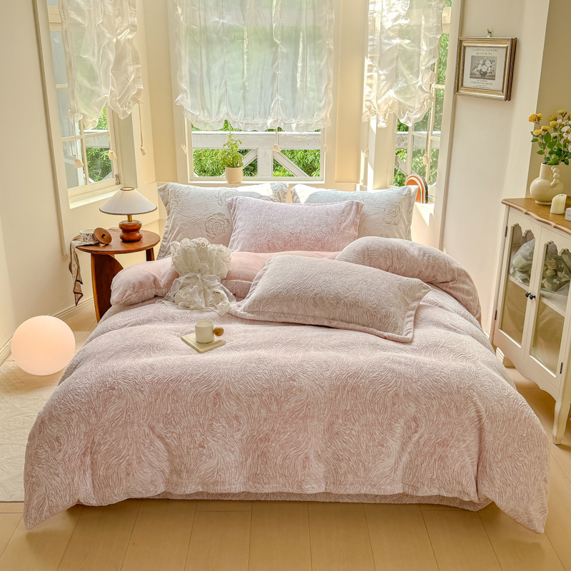 商品名称:梦莱斯 2024新款雕花牛奶绒四件套 肌理纹-奈雪粉