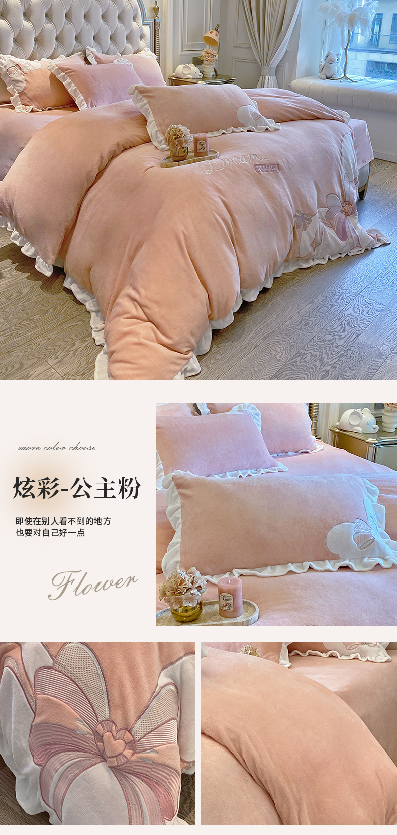 商品名称:(总)苏源家居 2024新款牛奶绒荷叶边贴布绣四件套