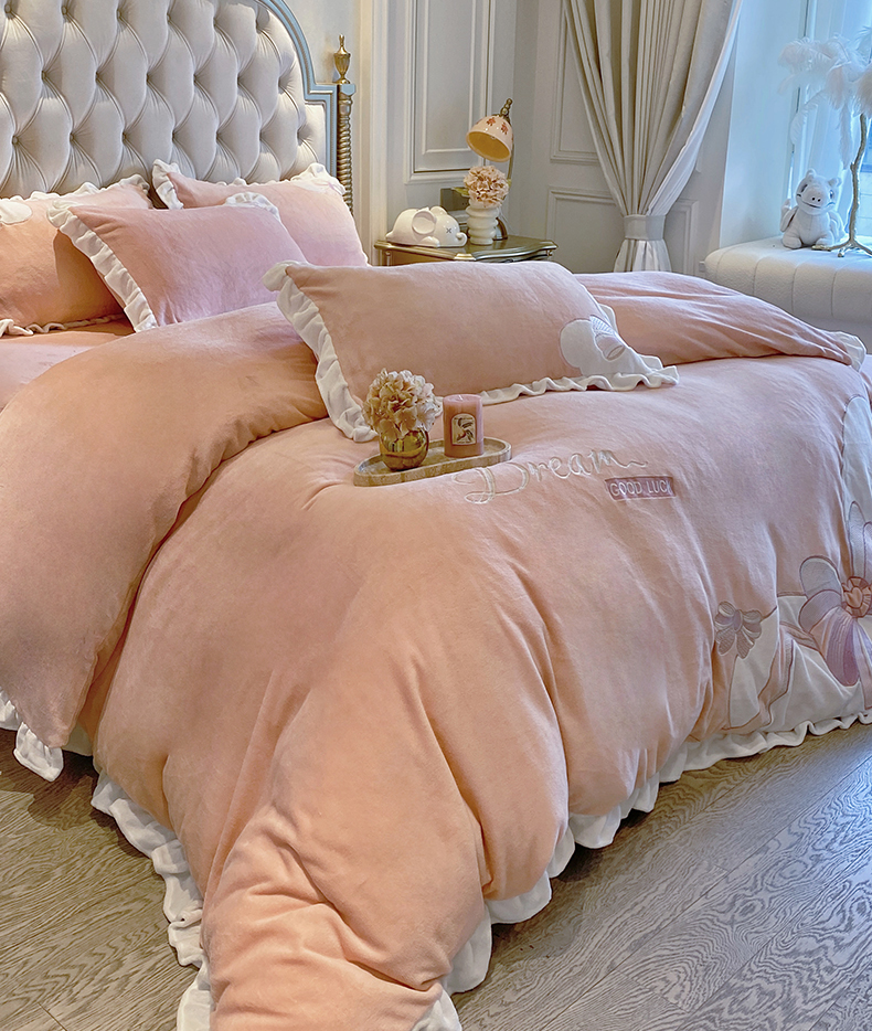(总)苏源家居 2024新款牛奶绒荷叶边贴布绣四件套