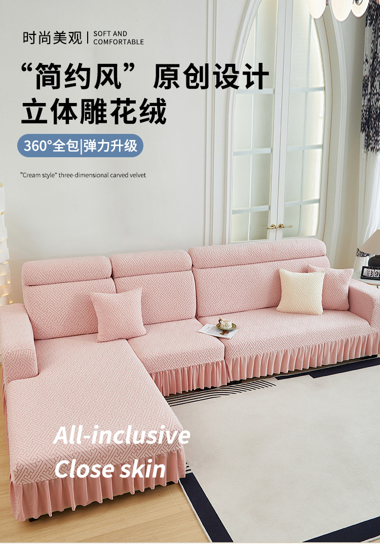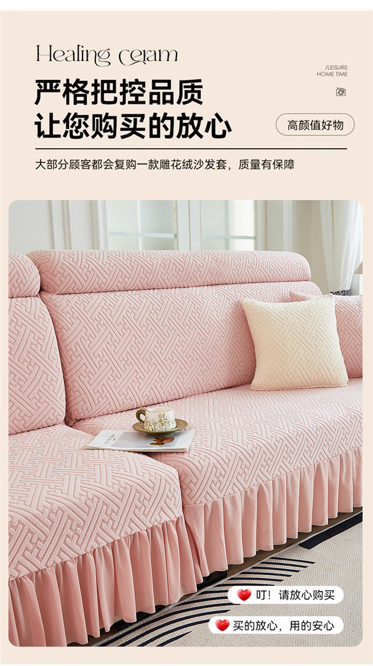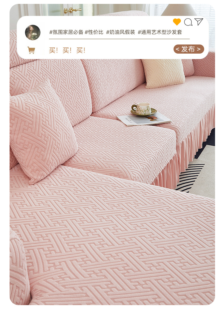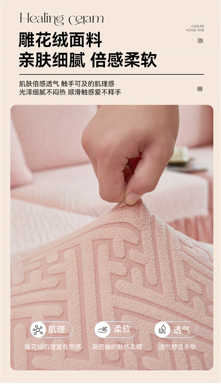 当前位置: 91家纺网 > 商品网购 > 居家布艺 > 坐垫/椅垫/沙发垫 > 沙发垫 > 2024新款加厚高弹拉花绒全包防尘沙发套罩-清韵系列 藕粉