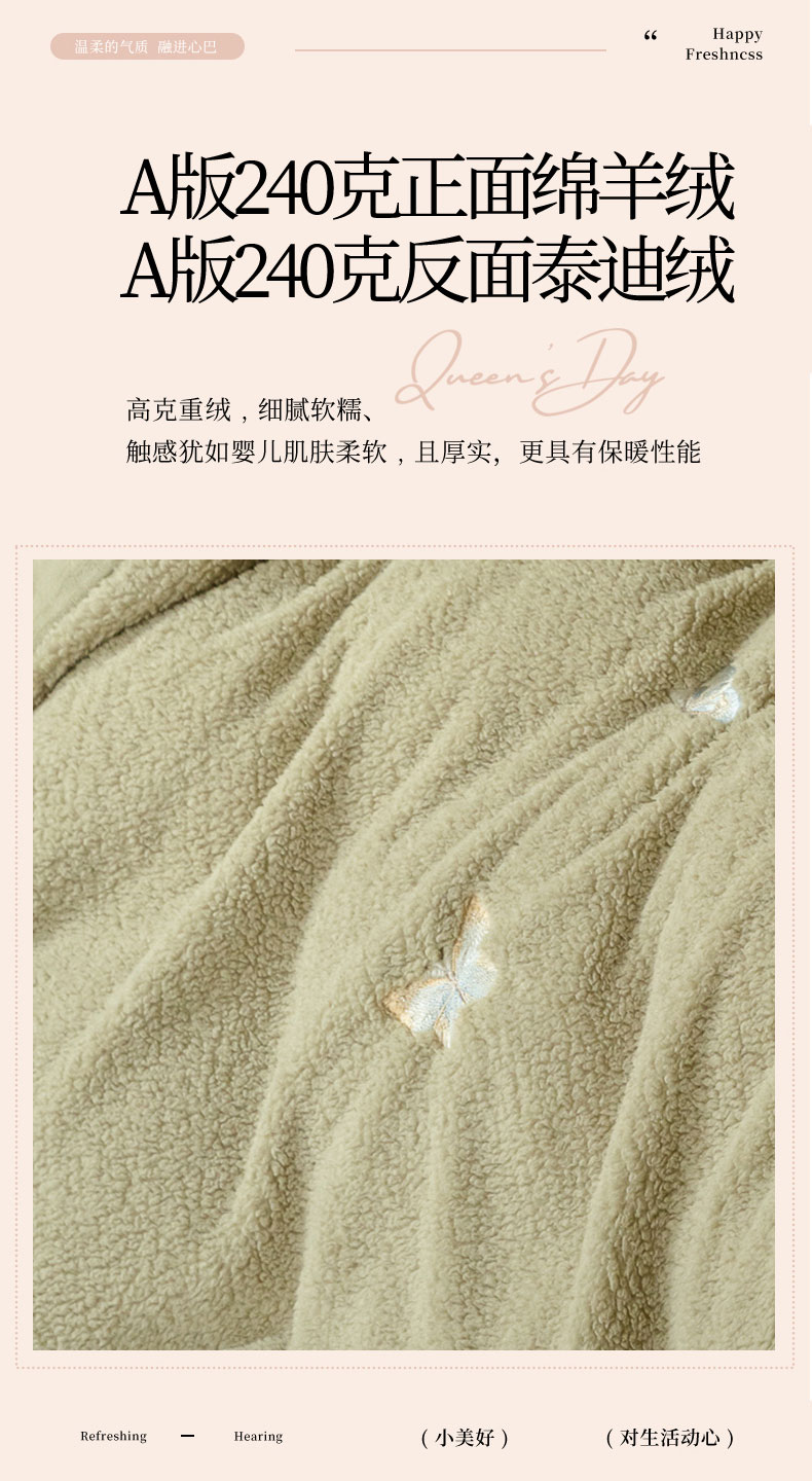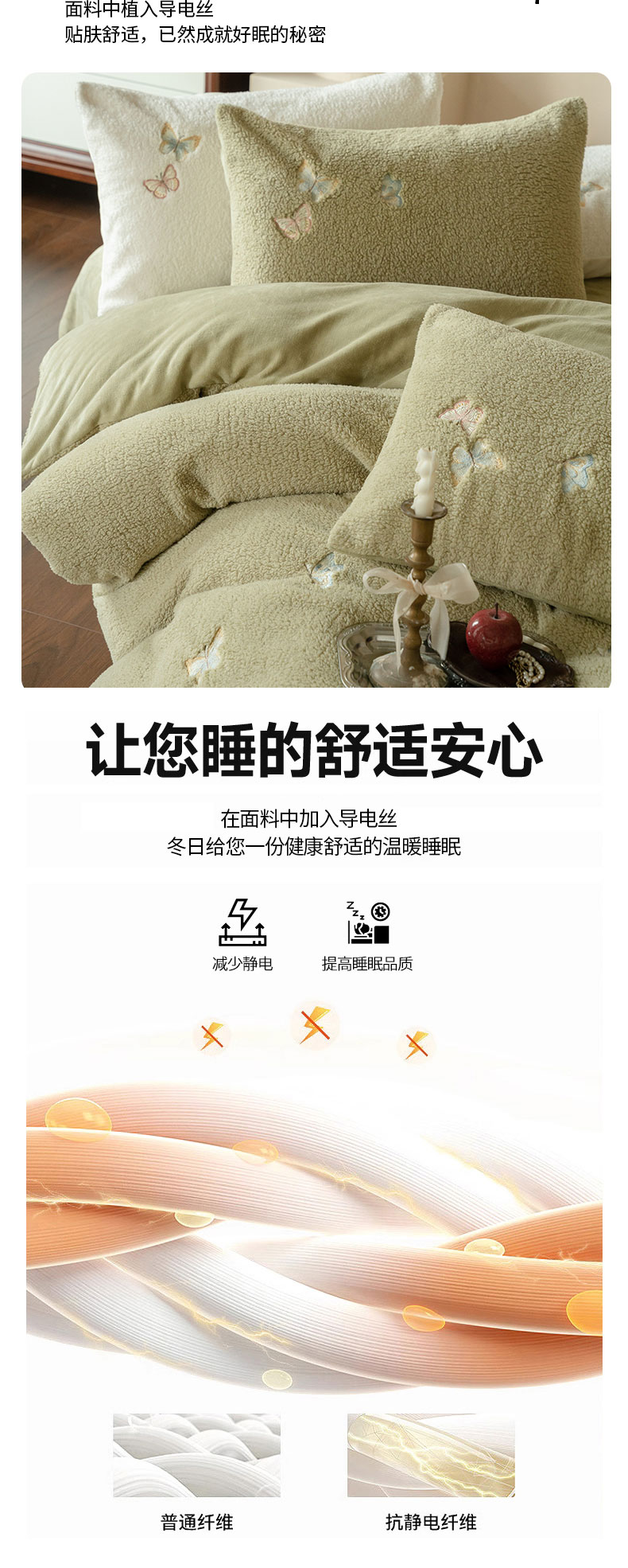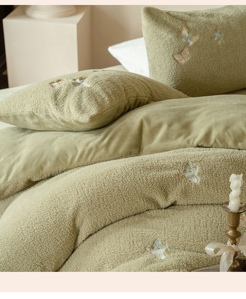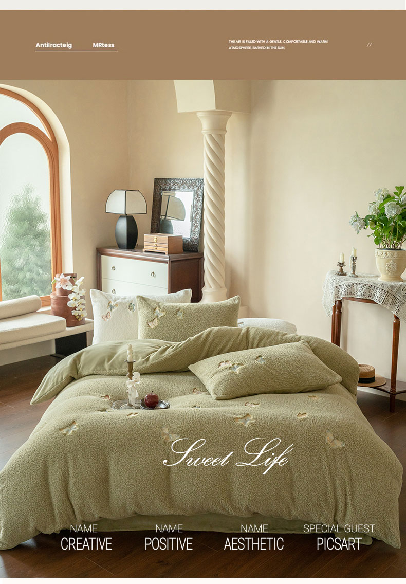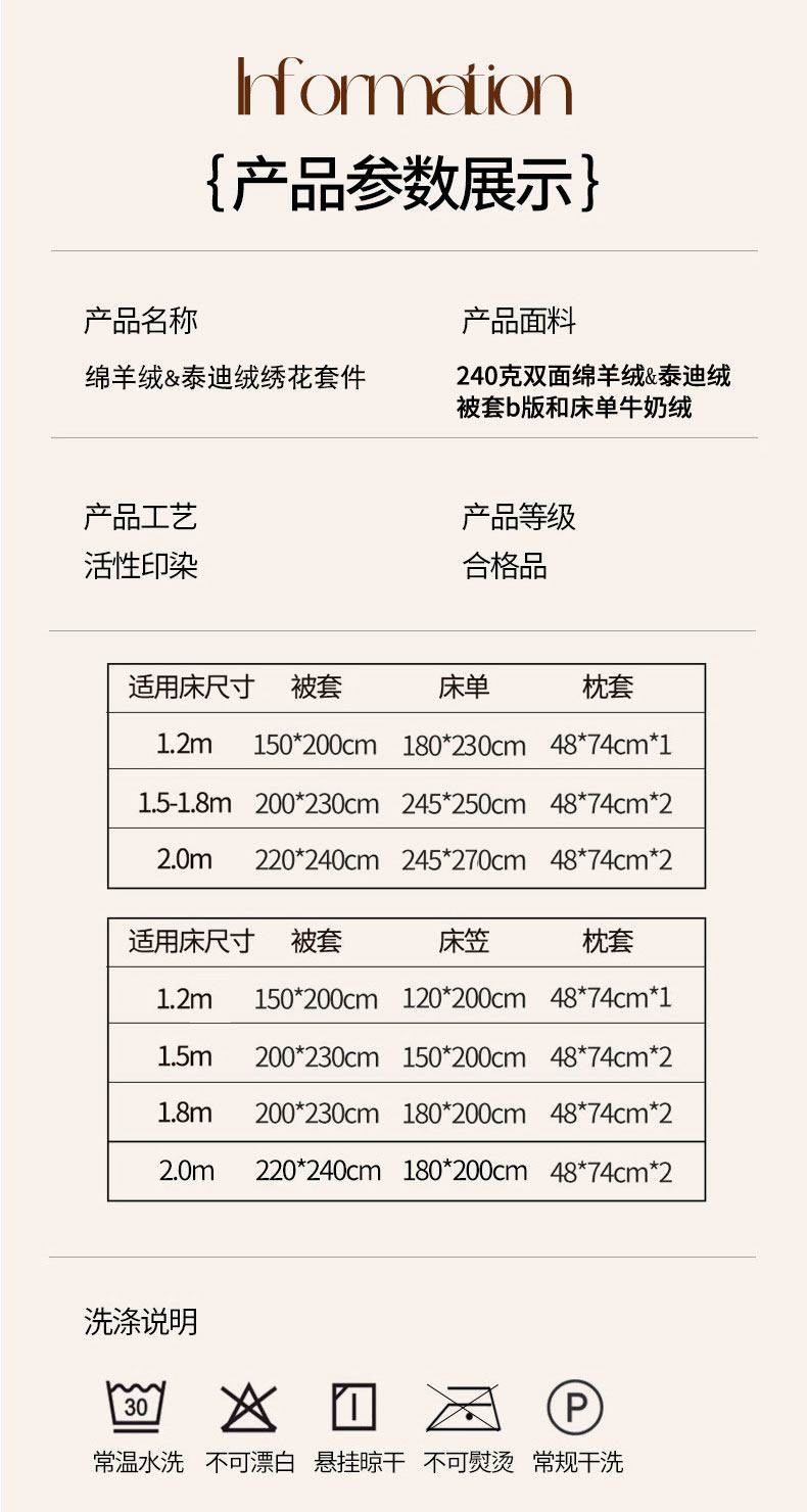 当前位置: 91家纺网 > 商品网购 > 床品套件 > 四件套 > 其它四件套 > FORTWO家纺 2024新款240g双面绵羊绒&泰迪绒绣花四件套 诺言绿
