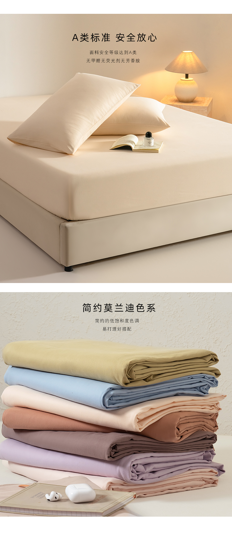 Mr.pig猪先生水洗棉 2024新款A类50全棉磨毛单品-单床笠 透玉粉