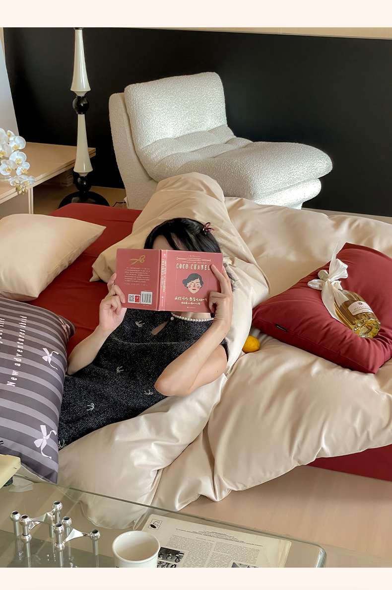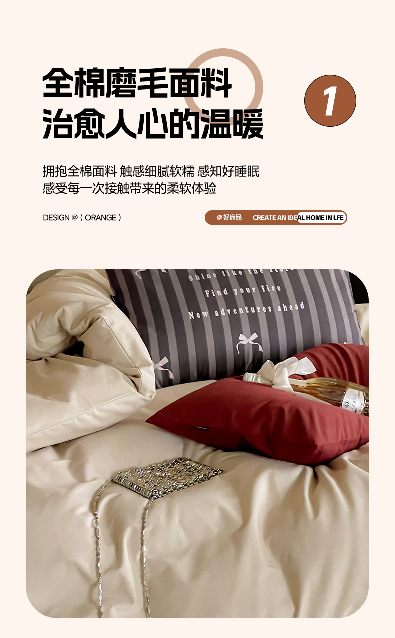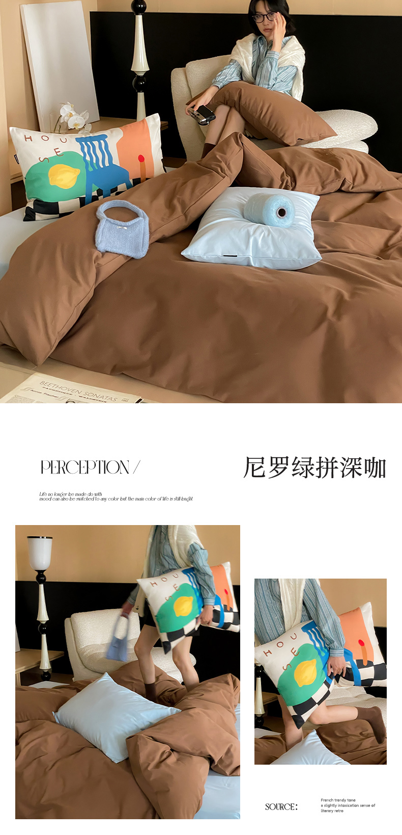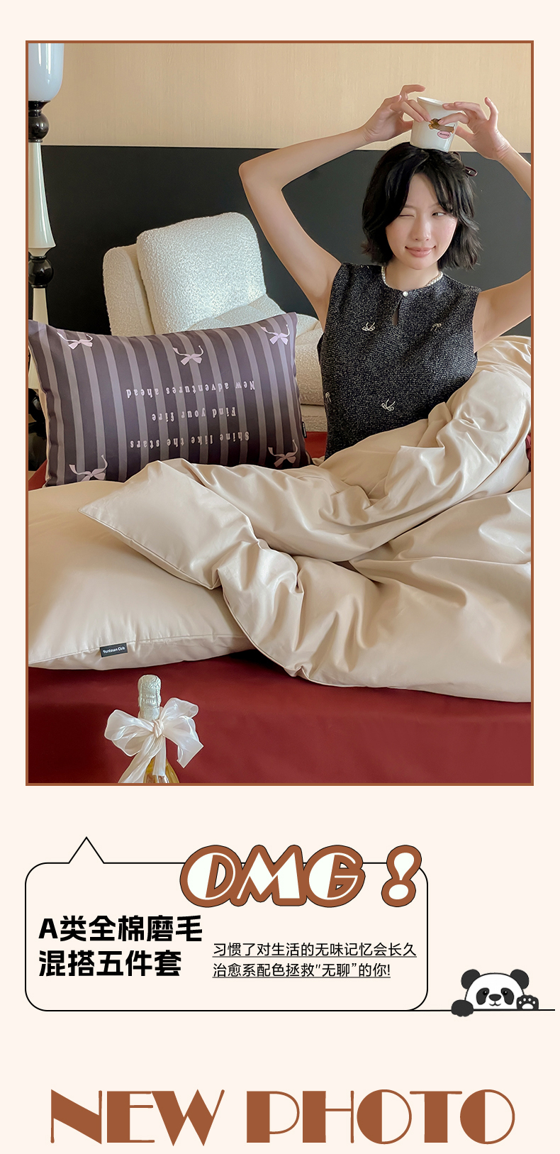 (总)圆岛家纺 2024秋冬新款纯色孟菲斯博主风时尚全棉磨毛五件套