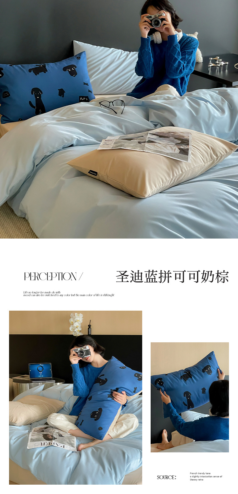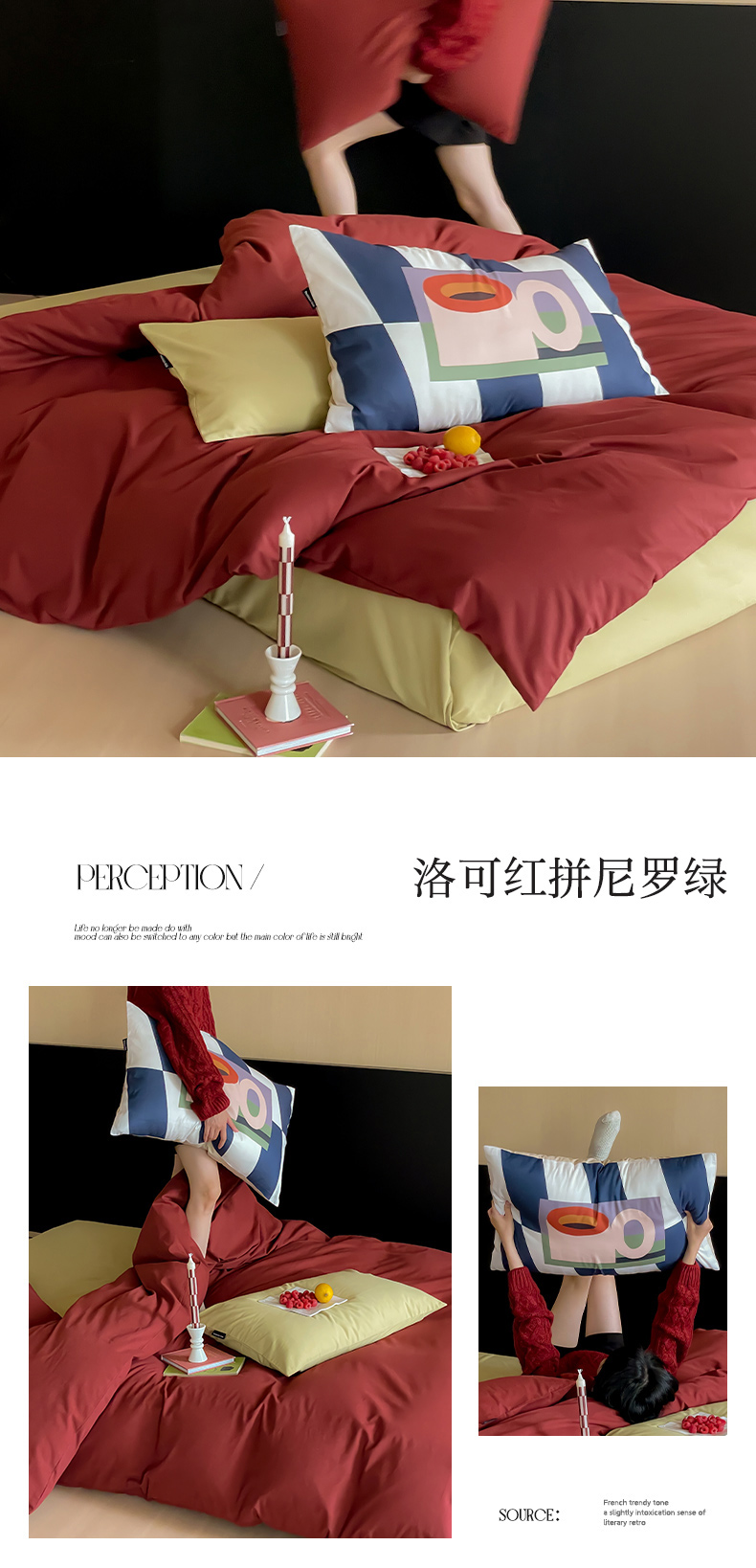 商品名称:(总)圆岛家纺 2024秋冬新款纯色孟菲斯博主风时尚全棉磨毛五件套