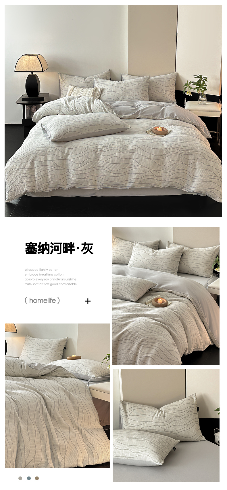 当前位置: 91家纺网 > 商品网购 > 床品套件 > 四件套 > 全棉普通四件套 > 典曼家纺 2024秋冬新款A类三层纱加厚磨毛大提花四件套 塞纳河畔-灰