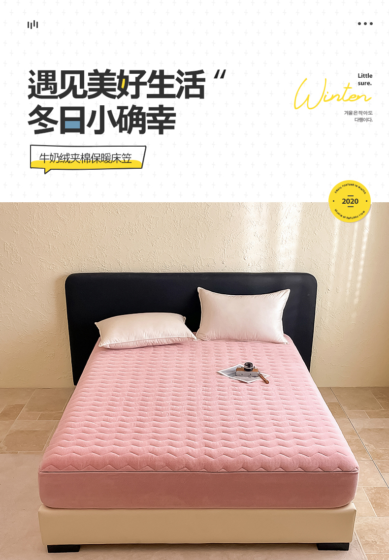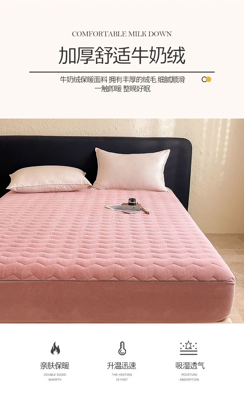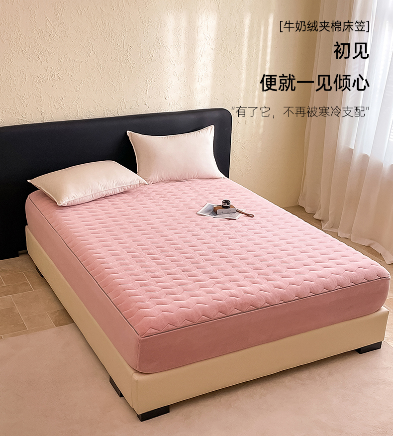 法芙娜家纺 2024新款波浪纹牛奶绒夹棉床笠(控价券后价不低于128/138/148) 粉
