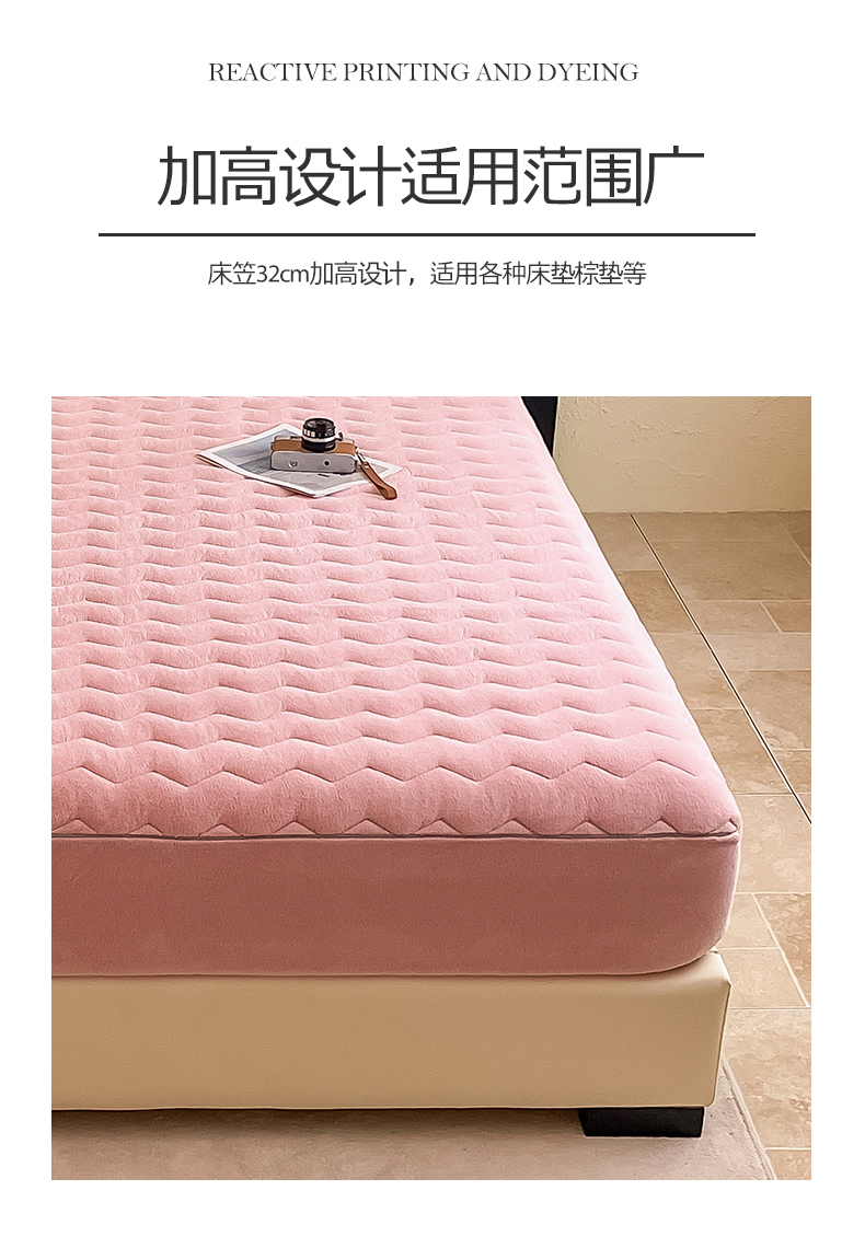 商品名称:法芙娜家纺 2024新款波浪纹牛奶绒夹棉床笠(控价券后价不低于128/138/148) 粉