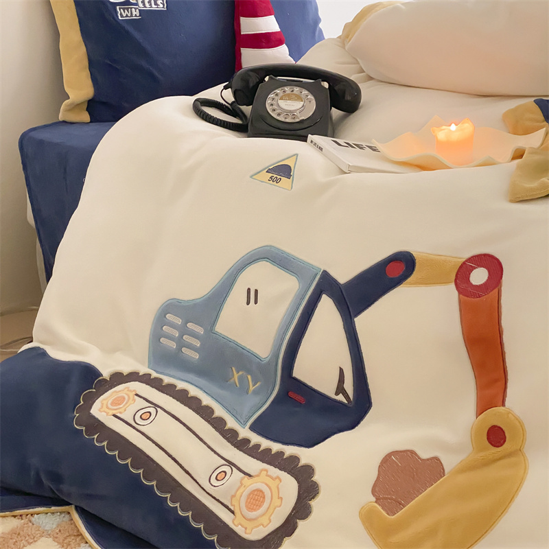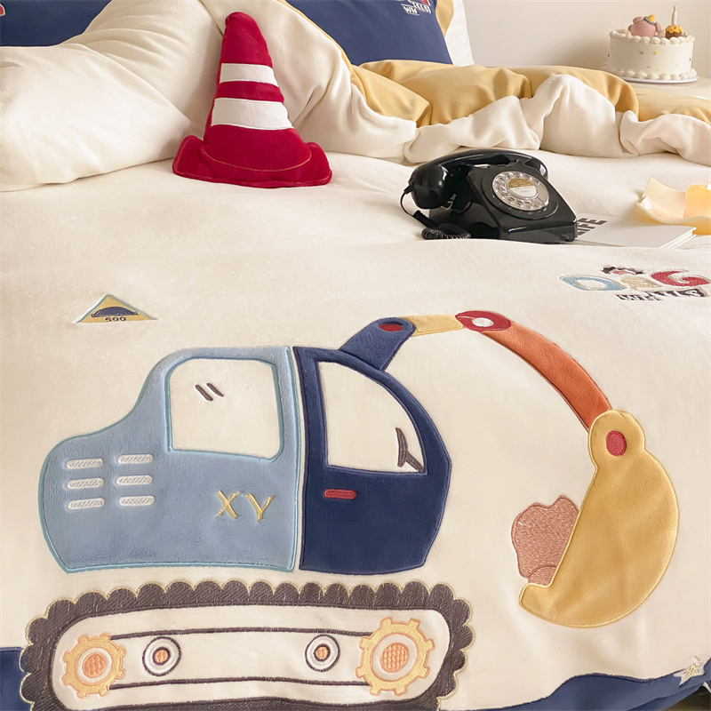 (总)星野 2025新款高克重牛奶绒贴布绣四件套-摇摇乐,摇摇乐