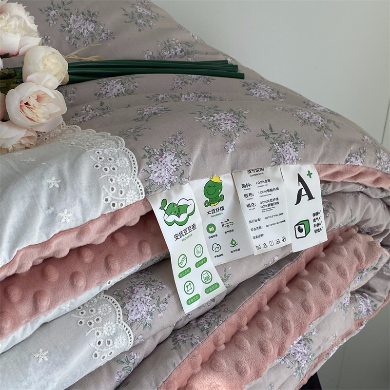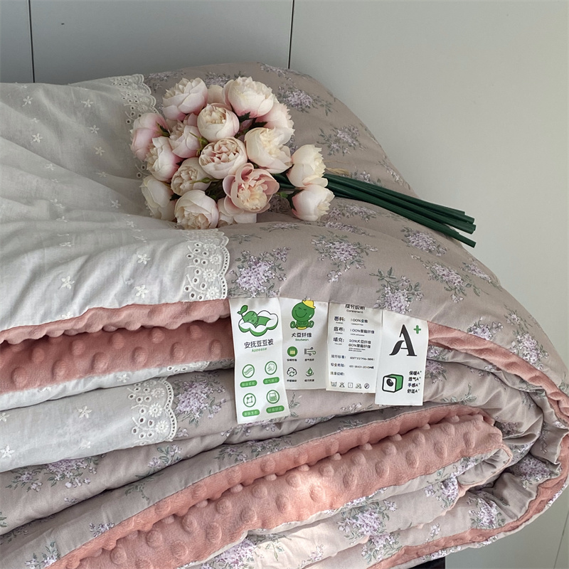 商品名称:2025新款秋冬季棉加豆豆绒法式花边款豆豆被被芯紫薇花