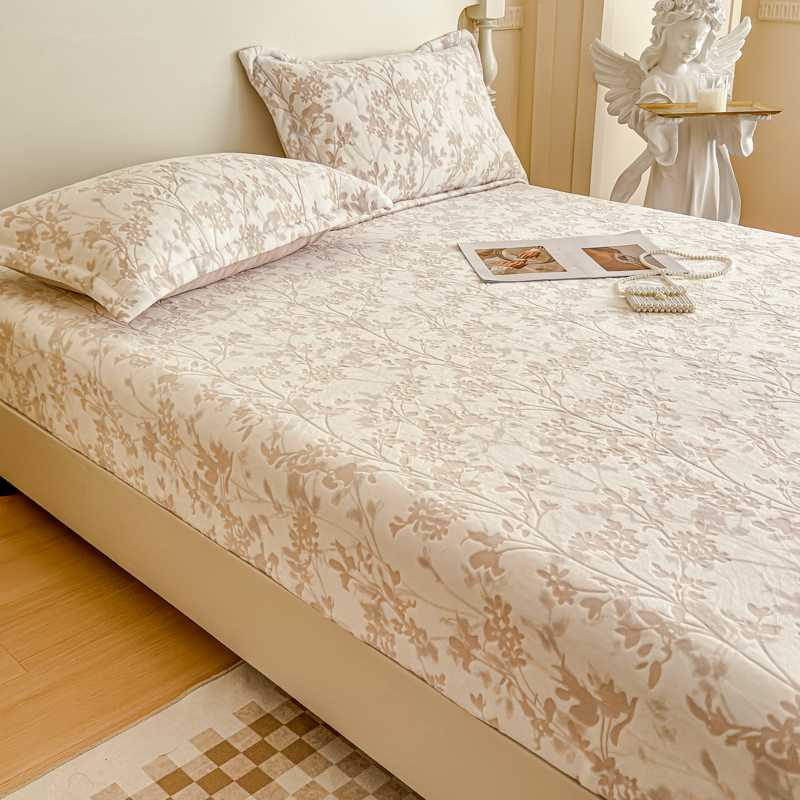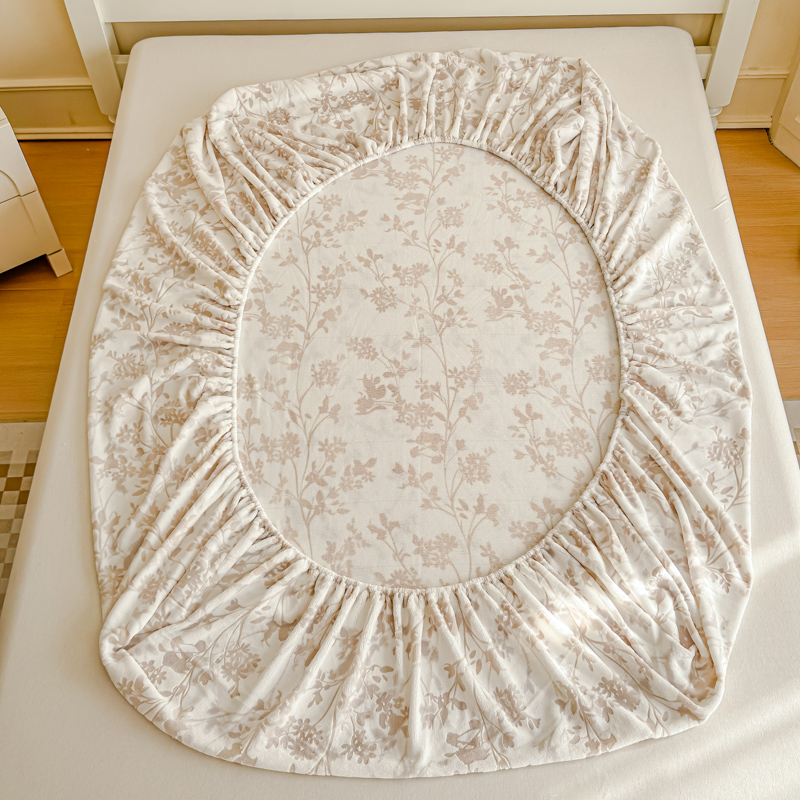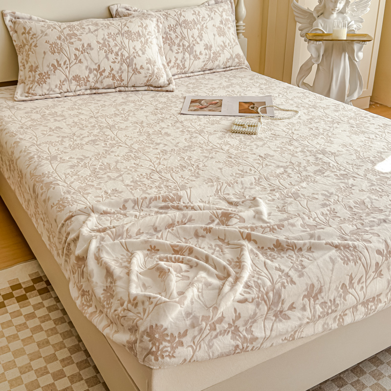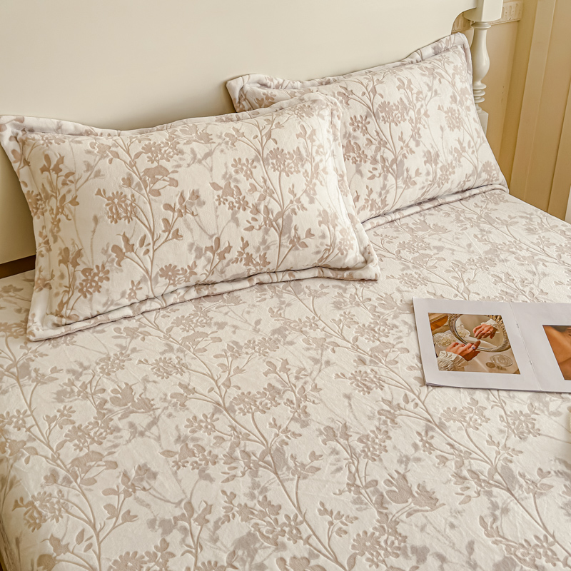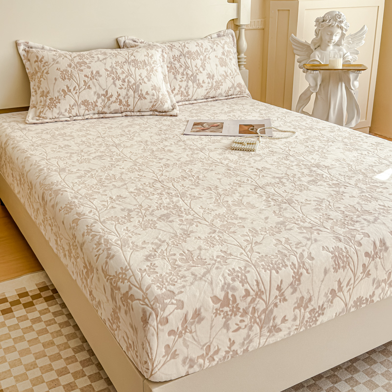 金丝鸟家纺 2024新款加厚240g立体雕花牛奶绒床笠 繁花 咖