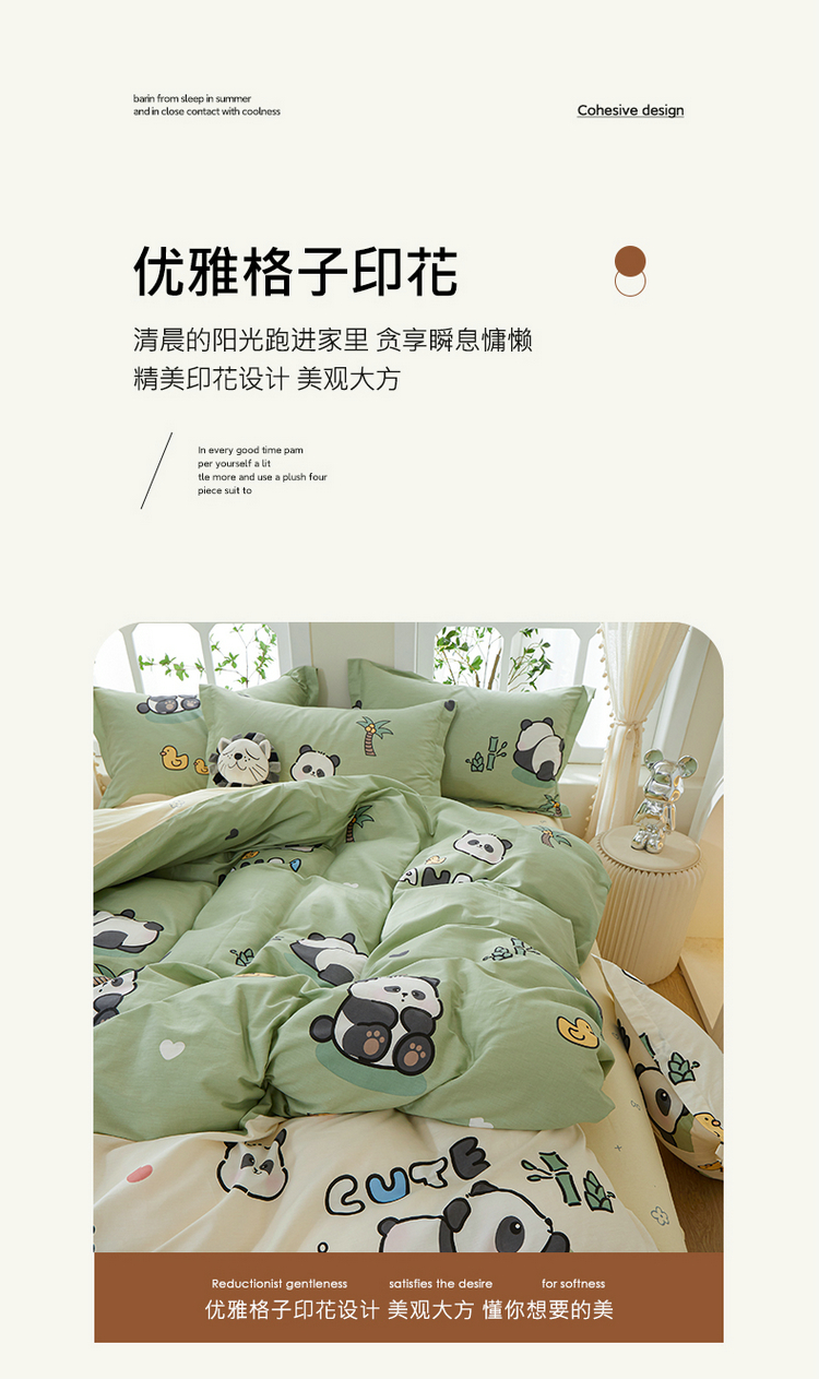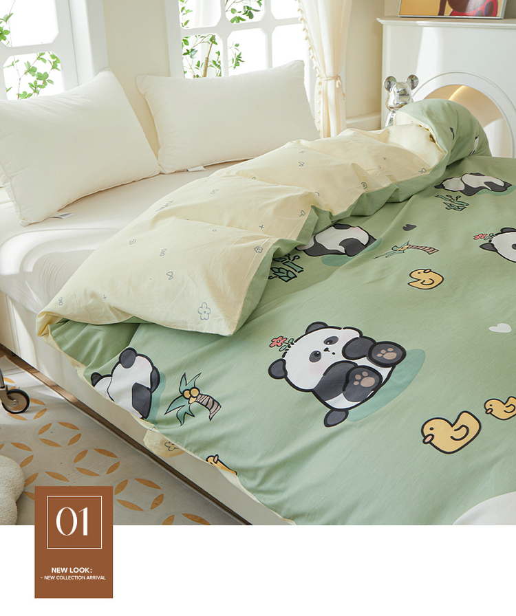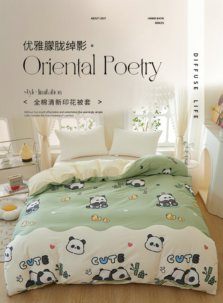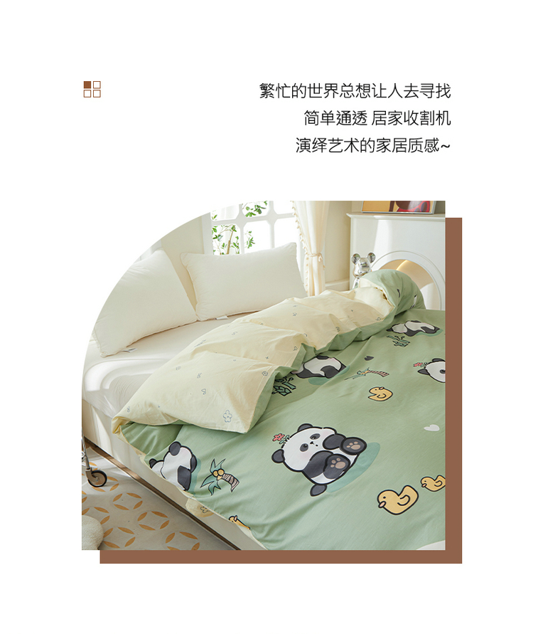 钰伶 简约全棉12868印花纯棉单被套(预留6厘米缩水)熊猫戏水